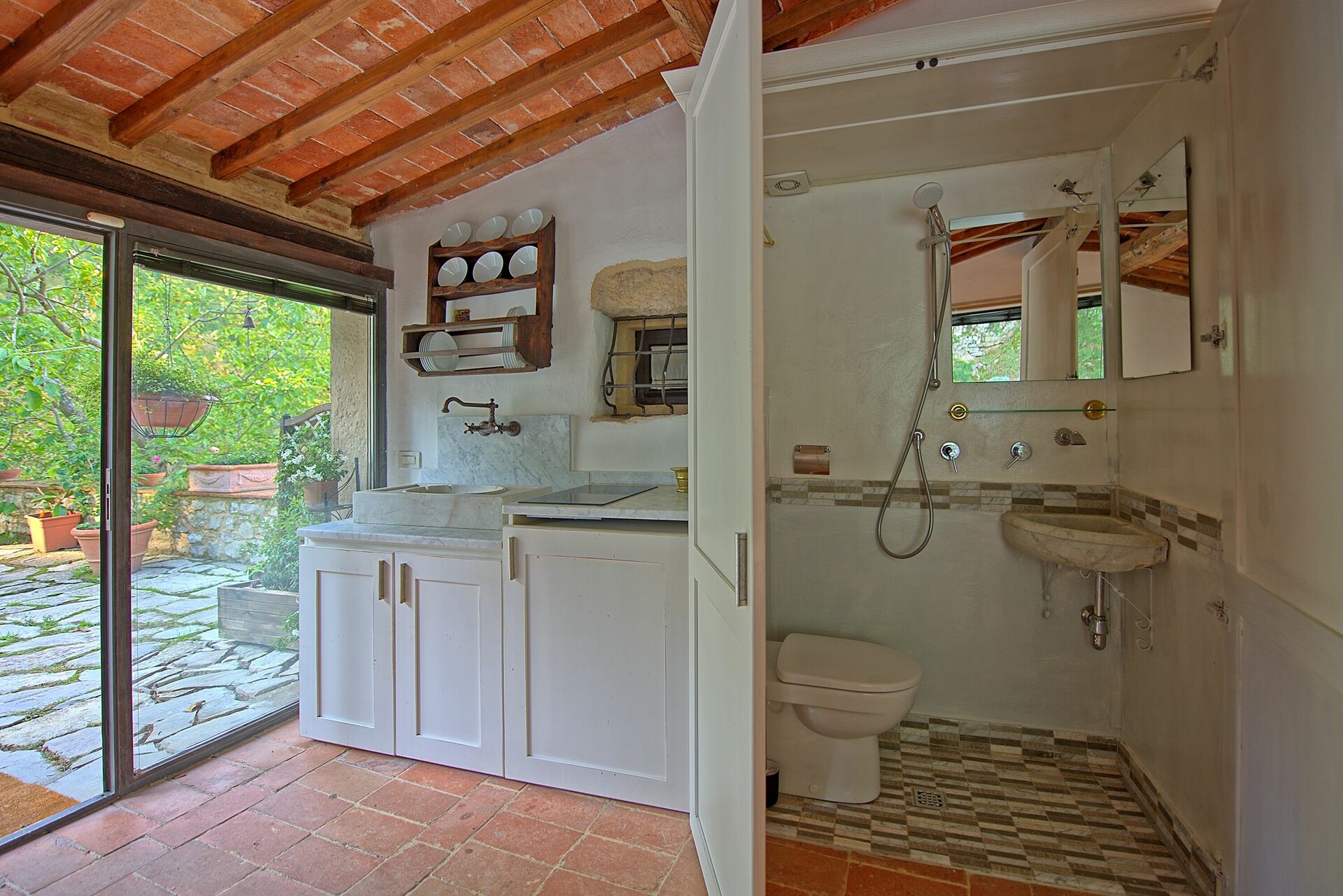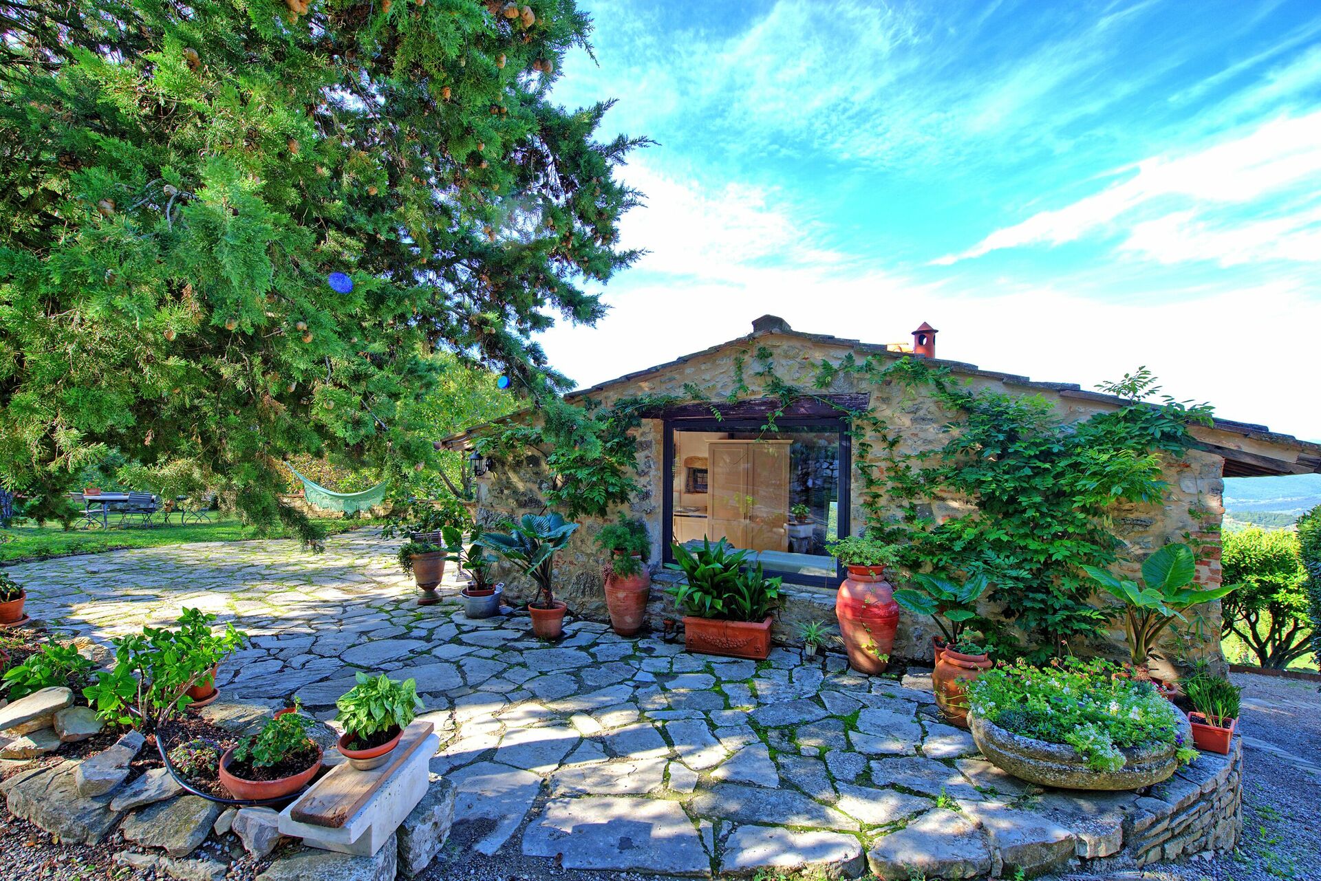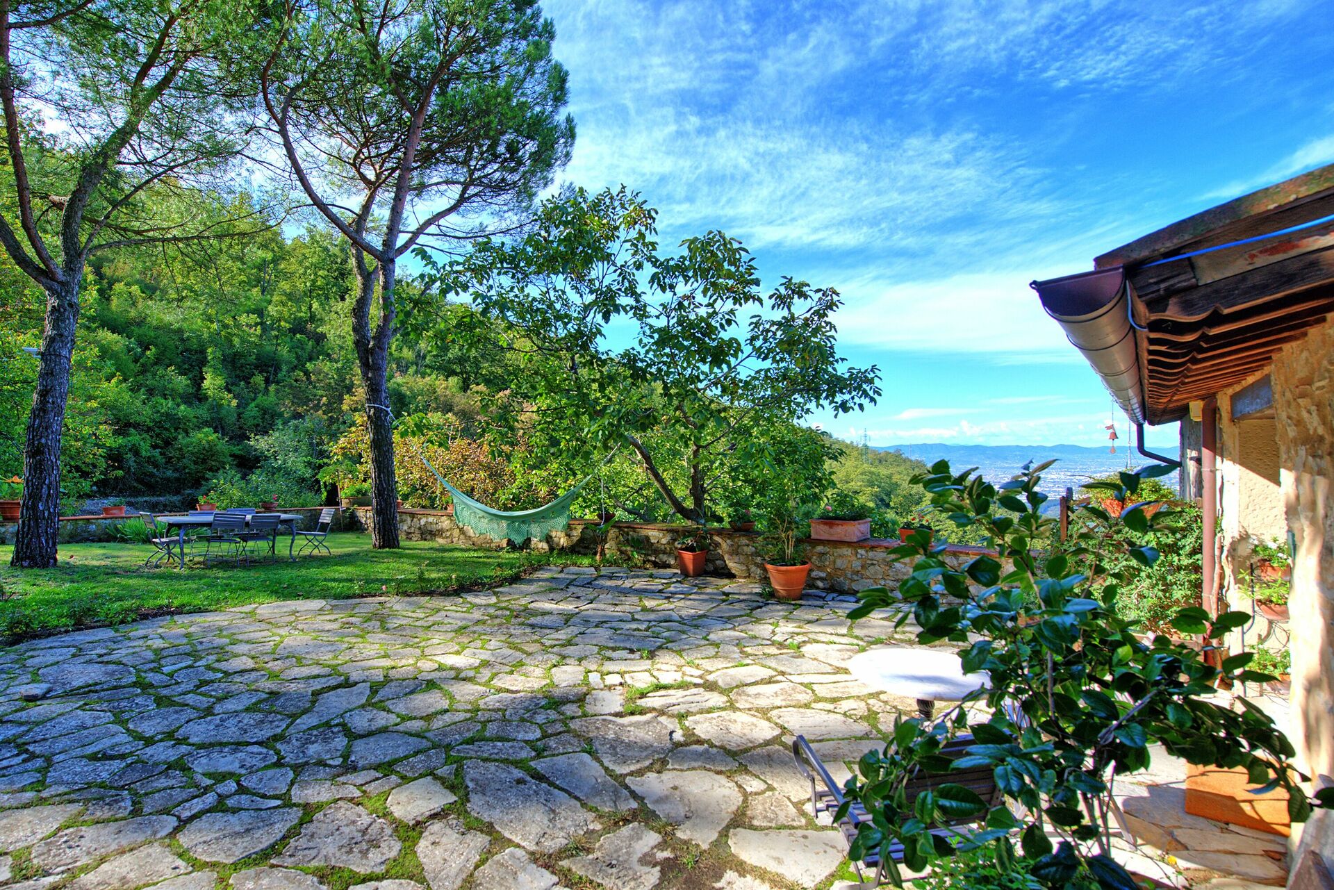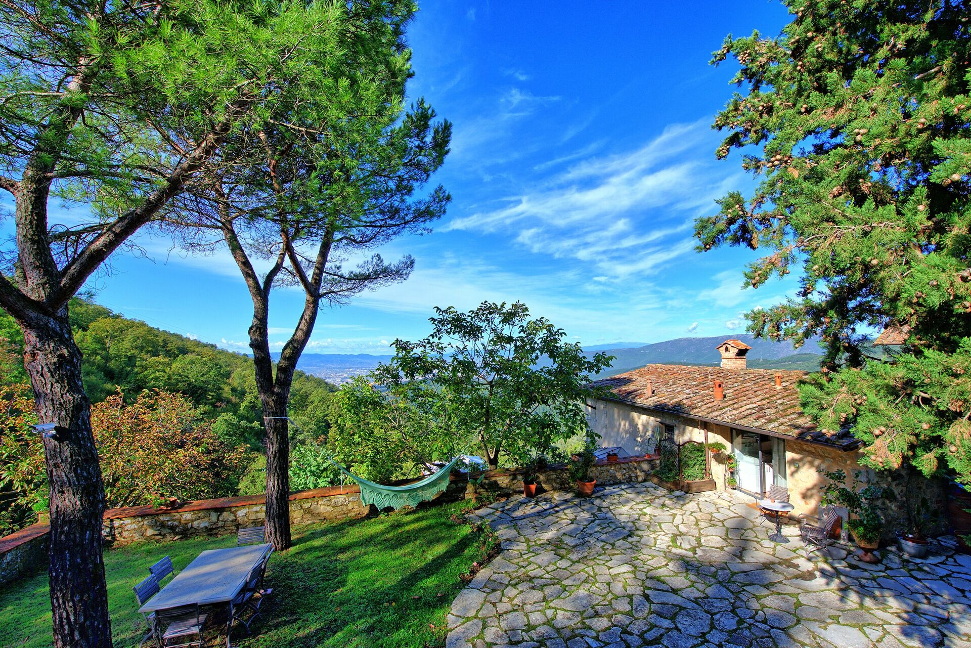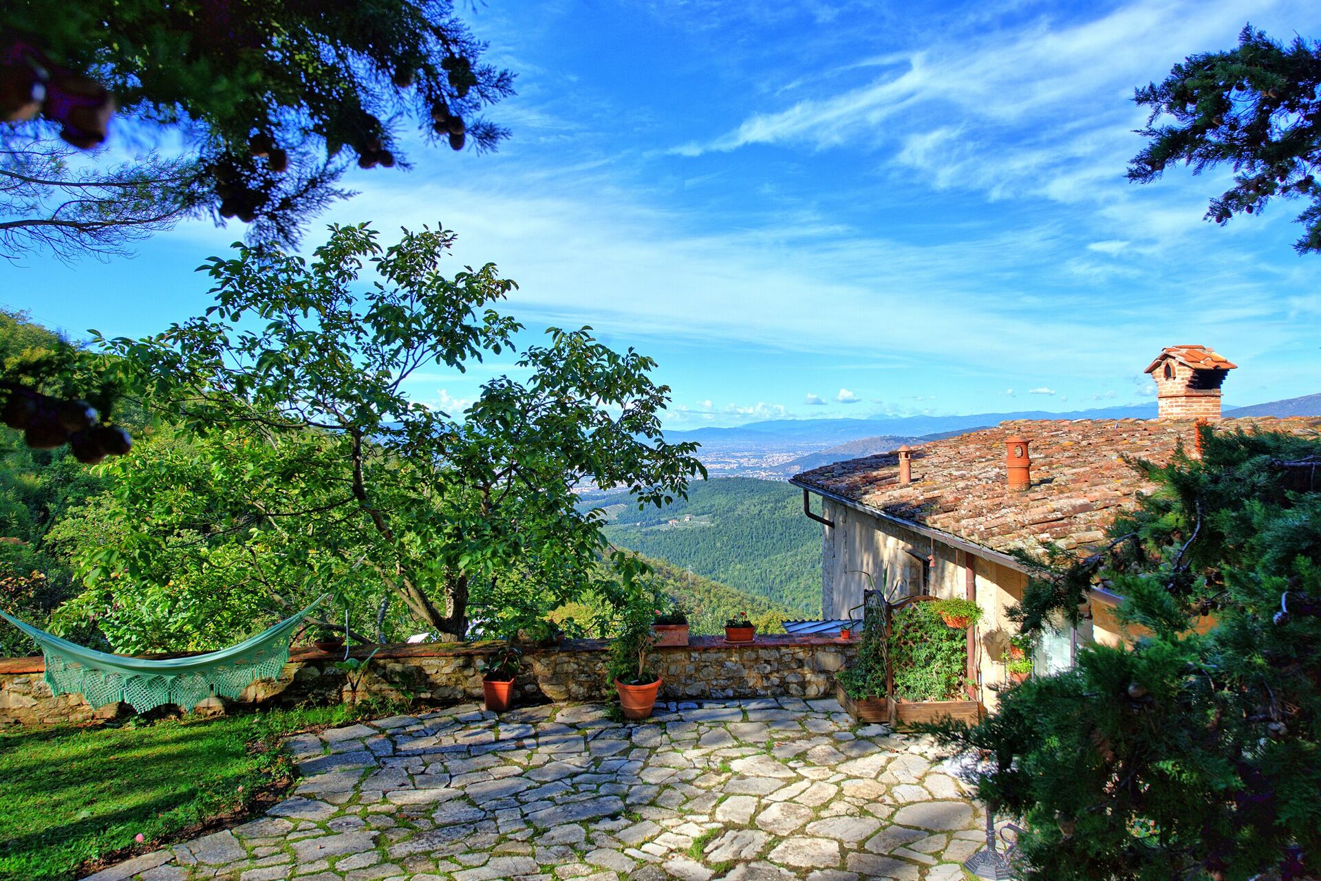 Vacker sten ladugård från 1200-talet på bergen runt Monte Morello, och med fantastisk utsikt över Florens (cirka 10 km bort). Fastigheten är helt inhägnad och omgiven av 82 000 kvadratmeter mark bestående av fruktträd, aromatiska växter, betesmarker och skogar av ek, gran, cypress och olivträd.