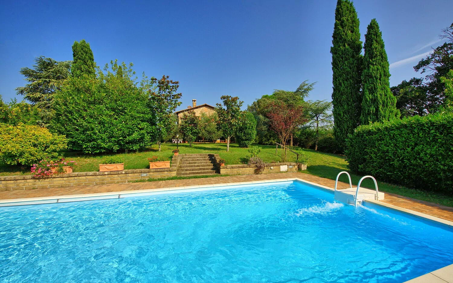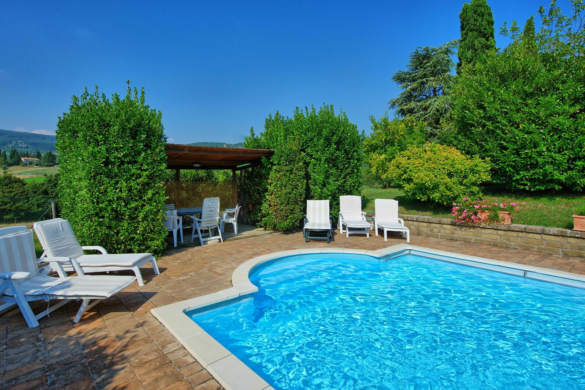 House is in great location, very peaceful with lovely gardens. Good facilities in house, but as it is an old farmhouse, the kitchen could do with refurbishment to bring it up to modern standards. Pool was always kept very clear and clean. Local town, Cetano, has plenty to offer in the way of cafes and restaurants. Nearest big supermarket is 15 minutes away in Chiusi.