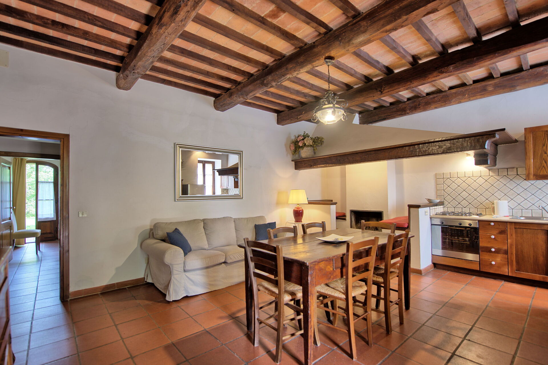 Gästerna kan njuta av den förtrollande utsikten över de toskanska kullarna: området är mycket tyst och avskilt. Stora åkrar och skogar omger huset och en fantastisk pool är perfekt för att svalka sig under varma sommardagar. Avkoppling och lugn garanteras!