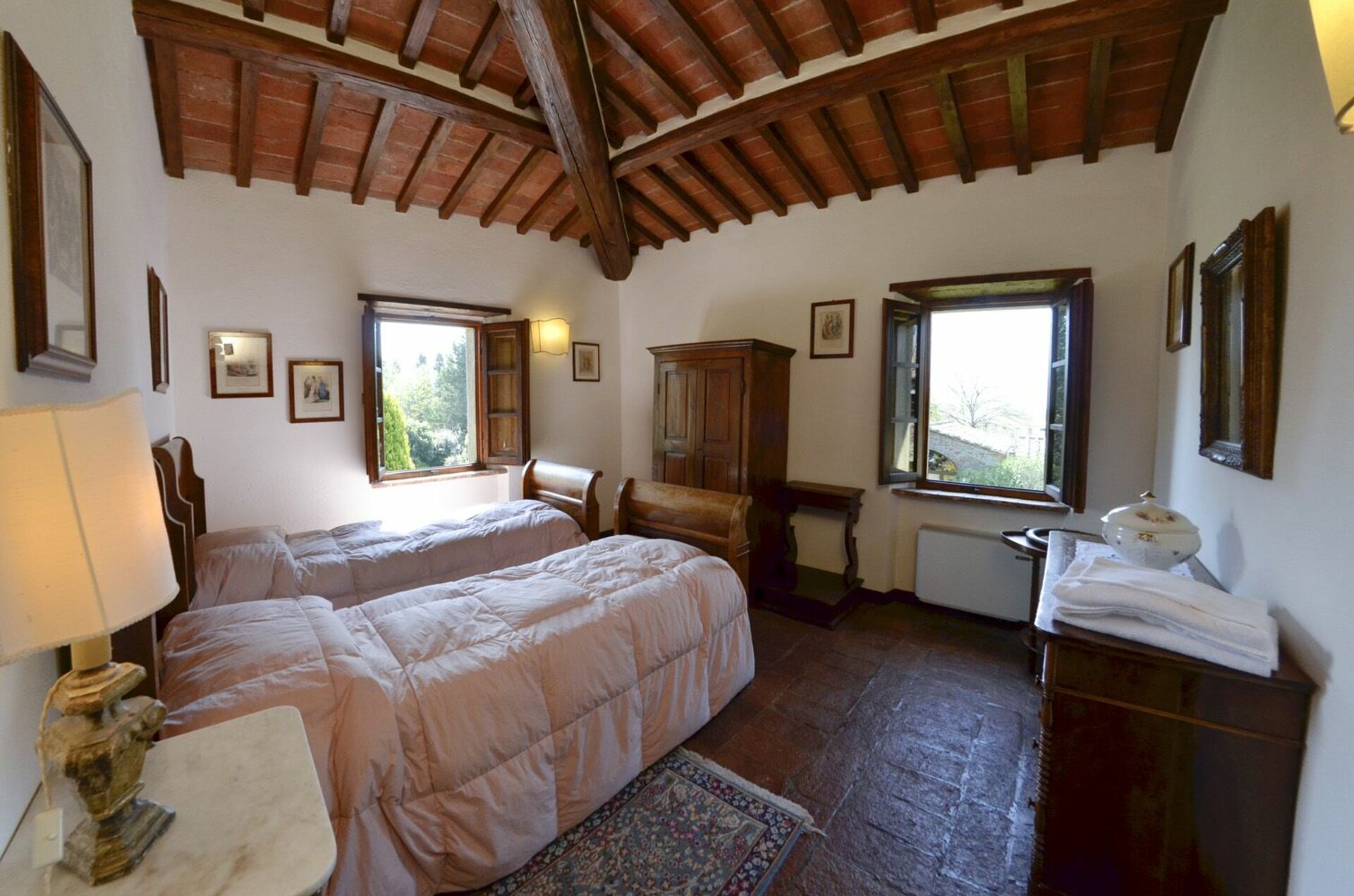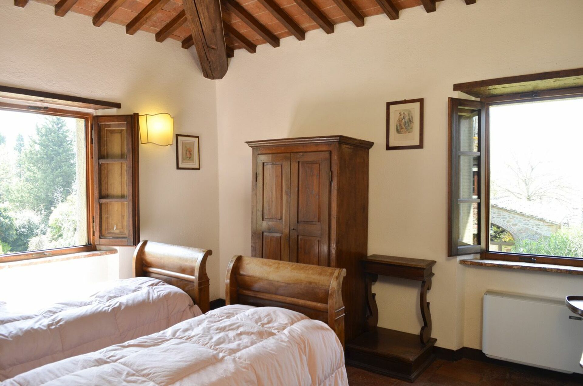 Övervåning: dubbelrum, sovrum med 2 enkelsängar, badrum med dusch.