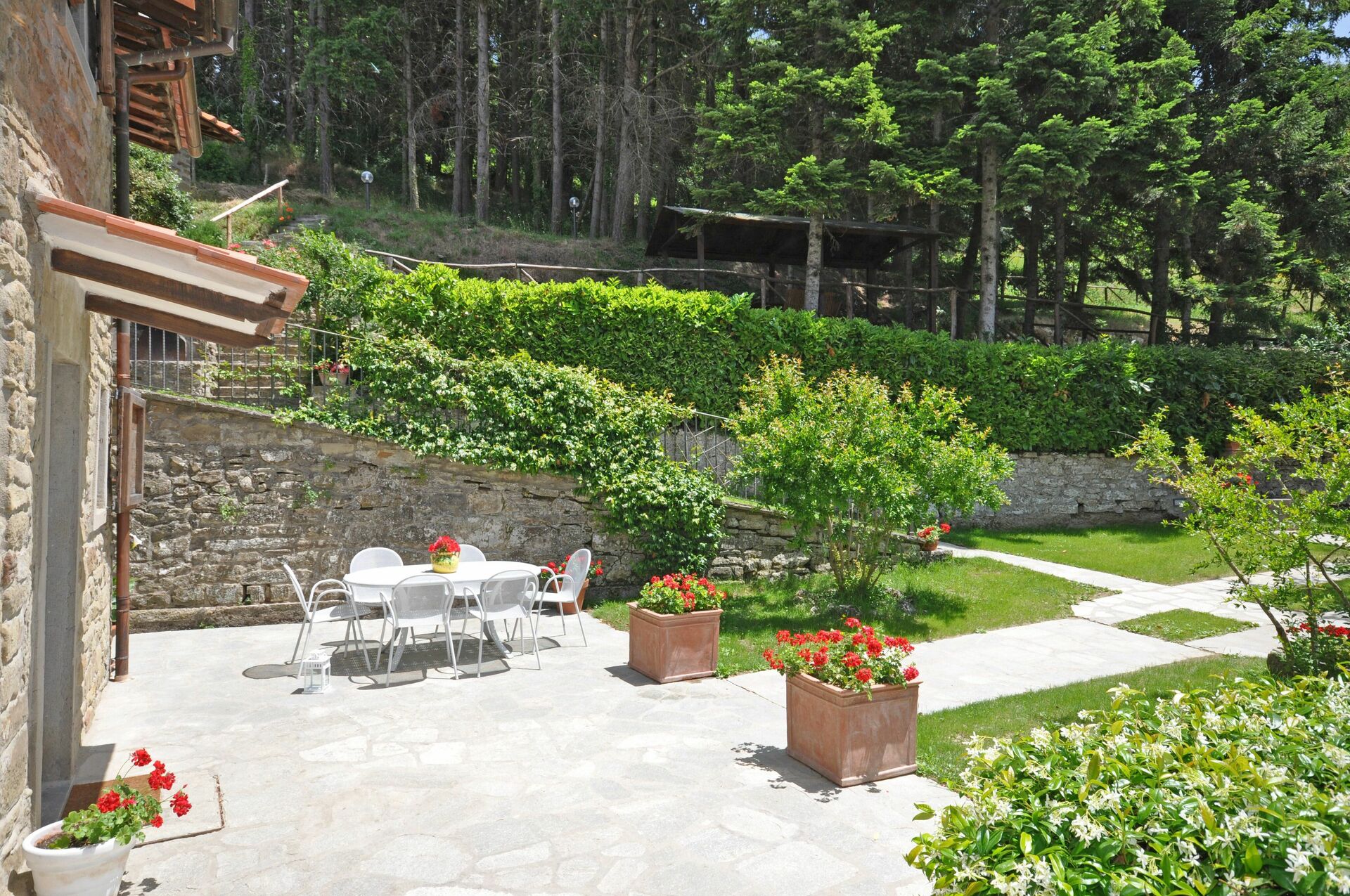 På utomhusområdet kan gästerna njuta av en välskött trädgård med ett trevligt lusthus i skogen i närheten (cirka 20 meter från villan) och en vacker privat pool.