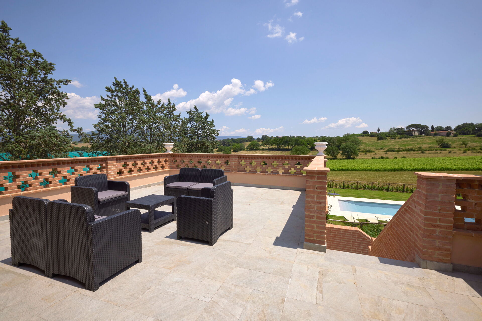 Utomhusområdena är pricken över i: den välskötta trädgården med terrasser och en privat pool erbjuder möjlighet till total avkoppling. Villa Vigneto är perfekt för soliga toskanska sommardagar.