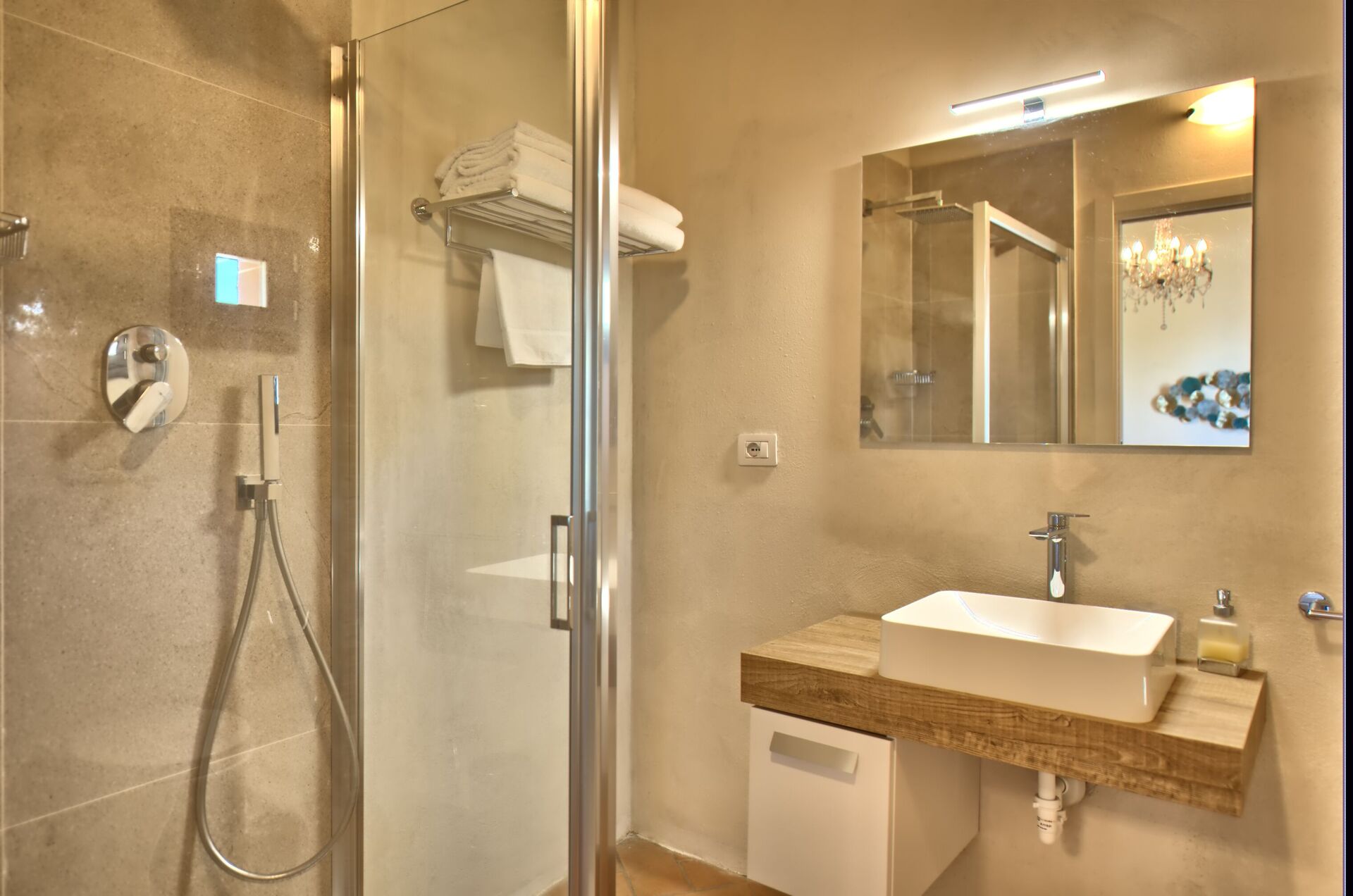 The bedrooms are quite simple, with very little furniture, but the beds are of good quality. The only storage was a faux rustic wardrobe, with shelves but no hanging space at all. Indeed, there was not a single coat hanger in the property, which is odd. The bathrooms appeared to have been recently renovated. They all have large showers, where the water pressure is OK but these are not power showers, and the bathroom of the best bedroom also has a bath.
