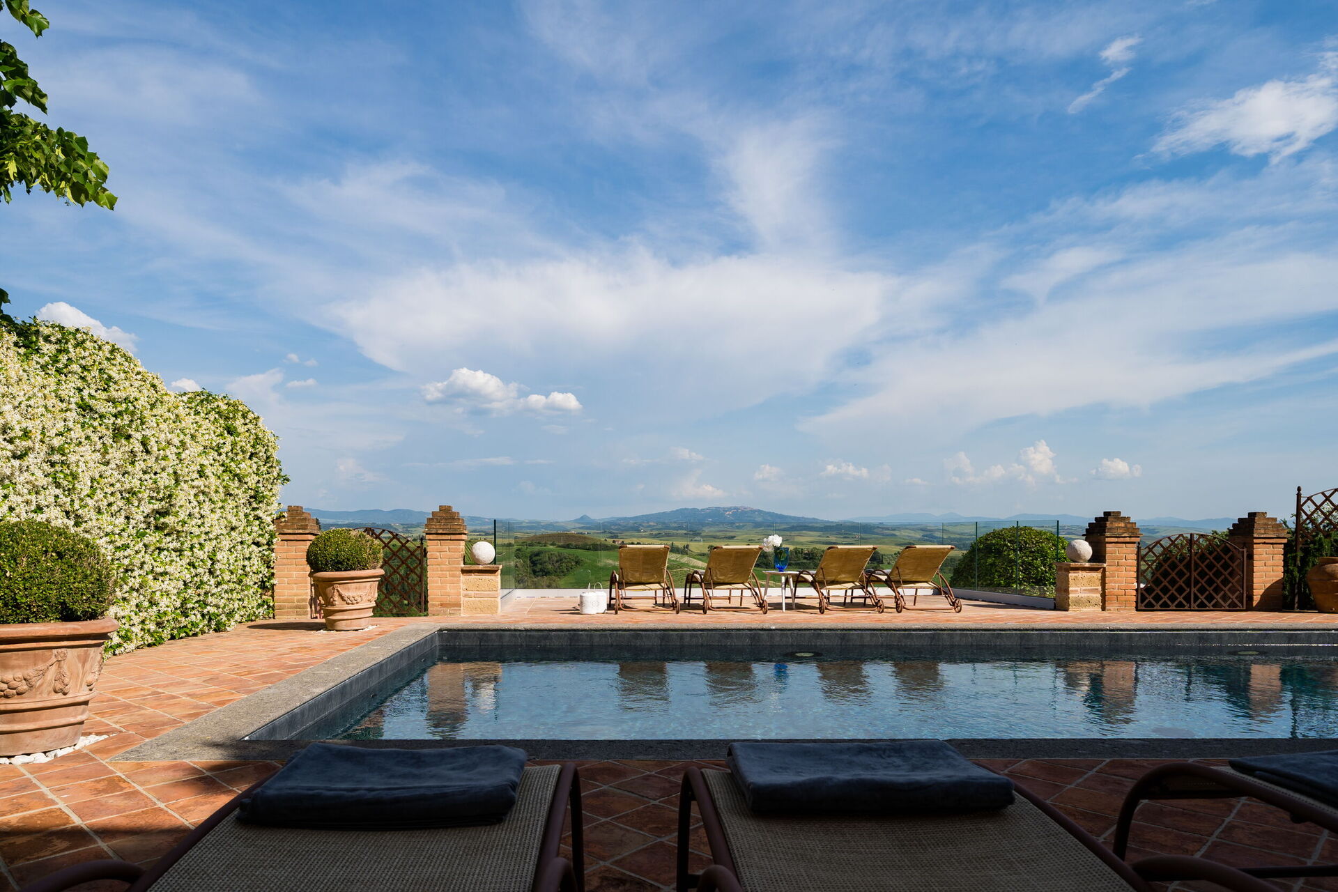 The photos represent the villa perfectly. It was very clean and beautifully decorated. We were a party of 12 and this Villa was fantastic!! It exceeded our expectations. We loved sitting out by the pool in the evening. The owners were very welcoming and made sure that we had everything that we needed. They were very helpful and arranged a wonderful dinner for us. It was situated very well for day trips to the most important cities of Tuscany. Thank you very much.