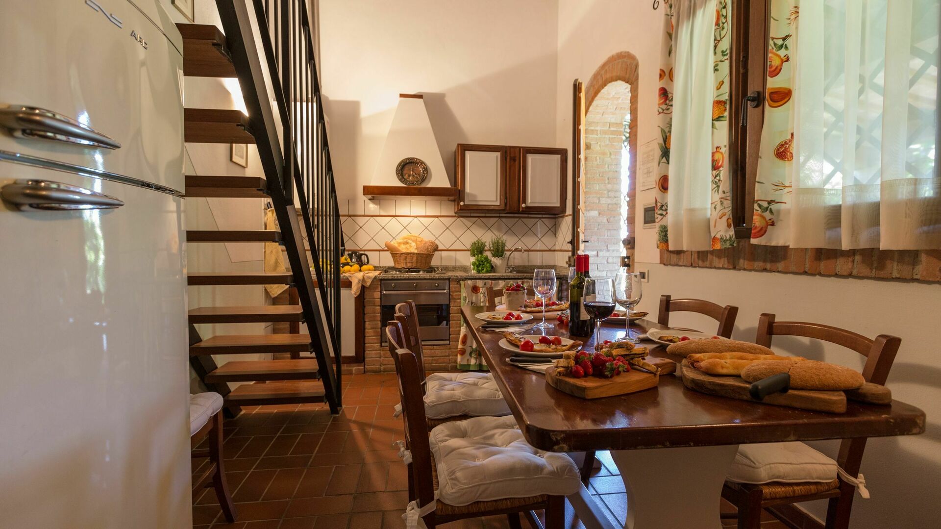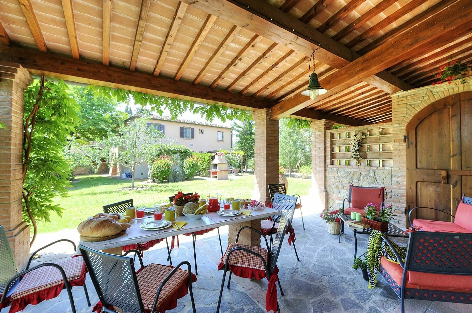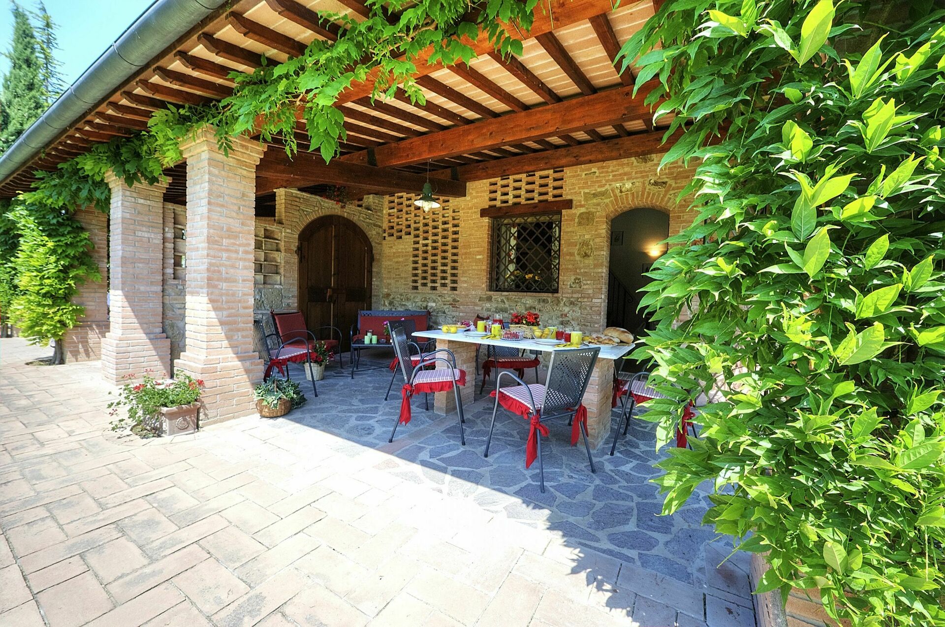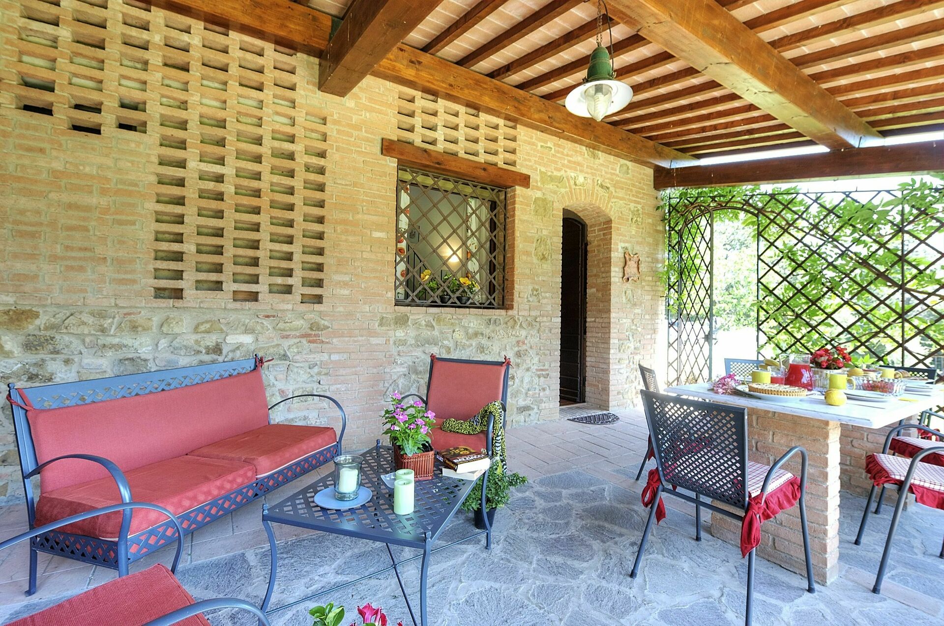 Bottenvåning (ingång via täckt terrass möblerad med bord och stolar):
