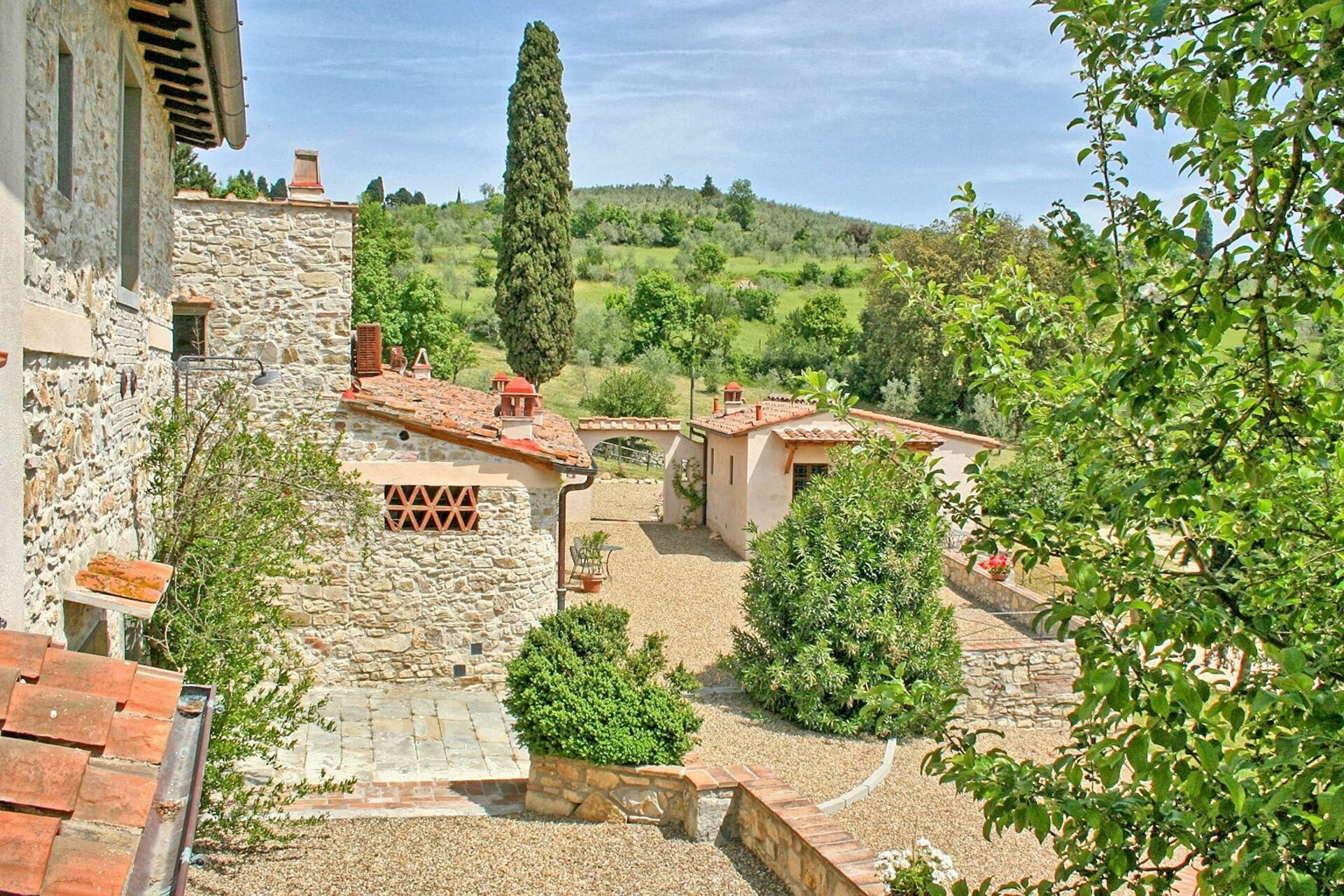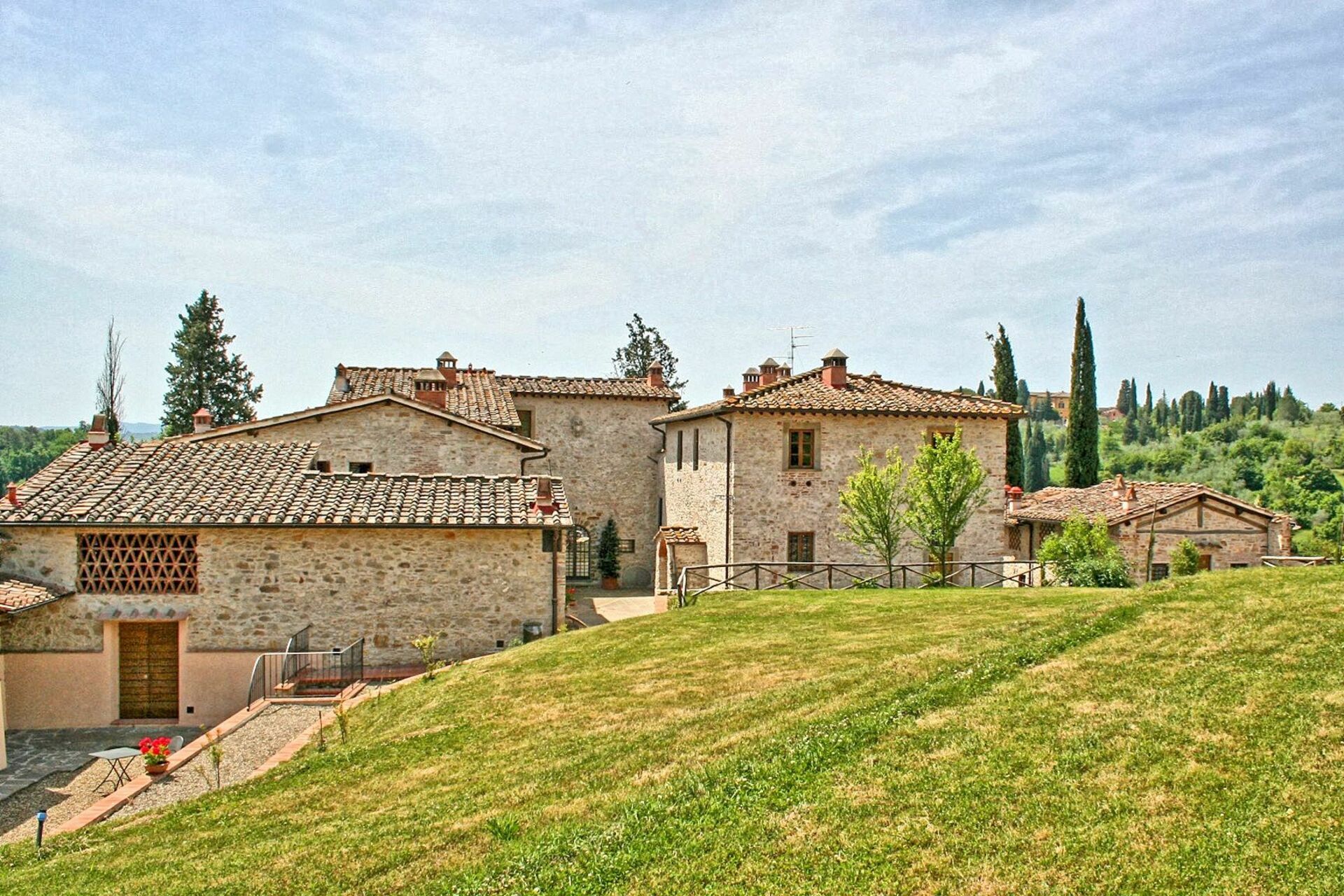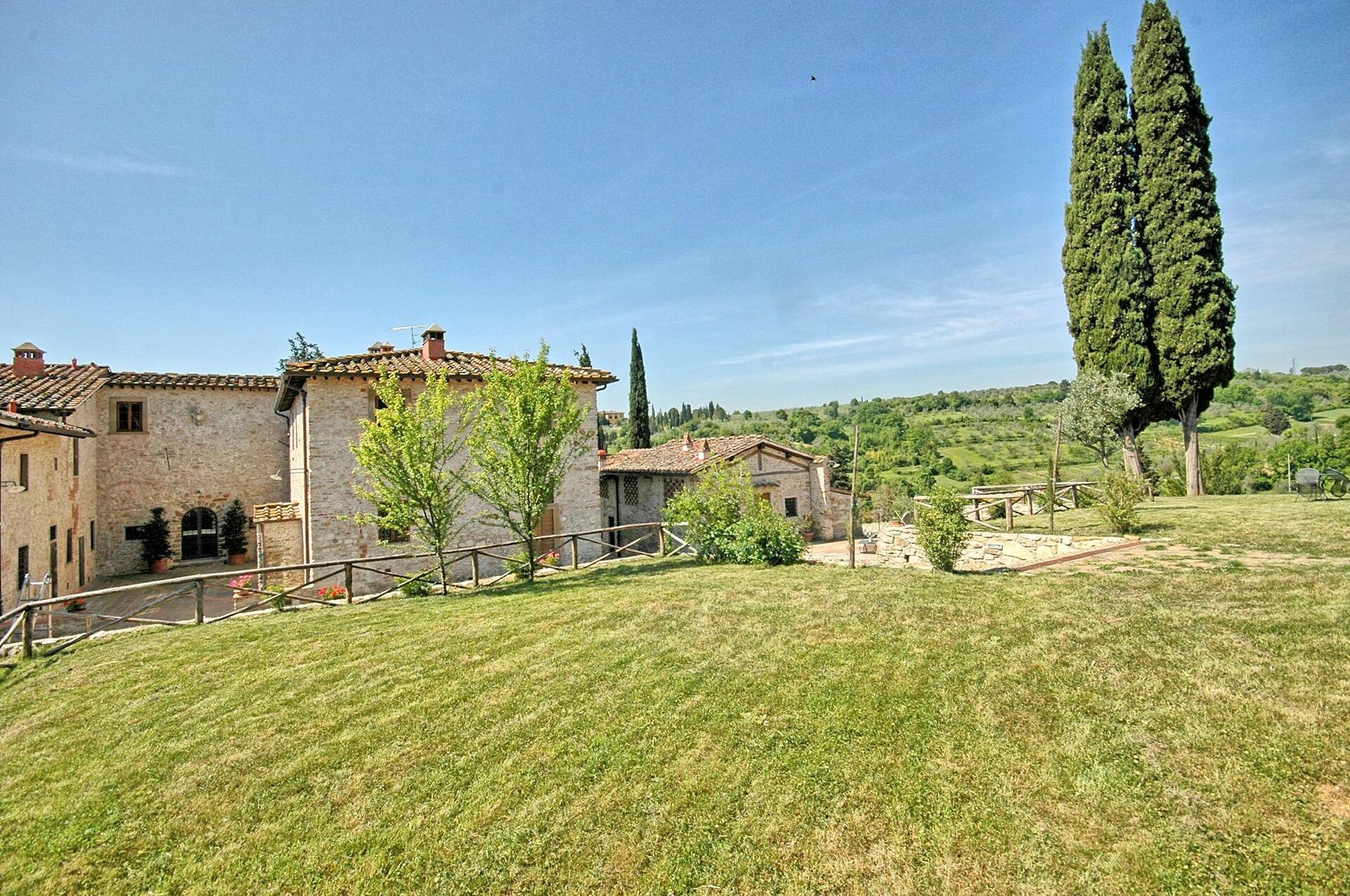 Avstånder: Grassina med alla typer av affärer 1 km, Florens (tågstation, flygplats) 10 km bort. San Gimignnao 58 km, Siena ca. 70 km bort, Arezzo 75 km, Pisa (flygplats) 95 km. Golfklubben Ugolino (18 hål) ligger 4 km bort.