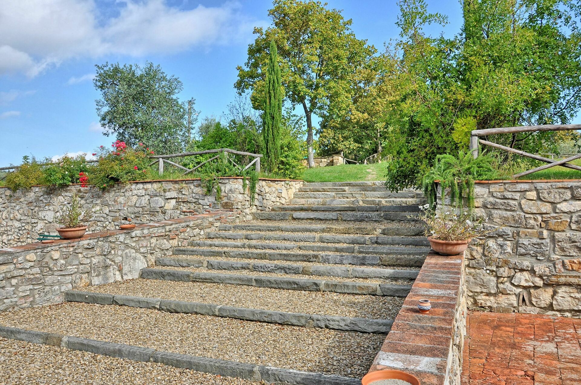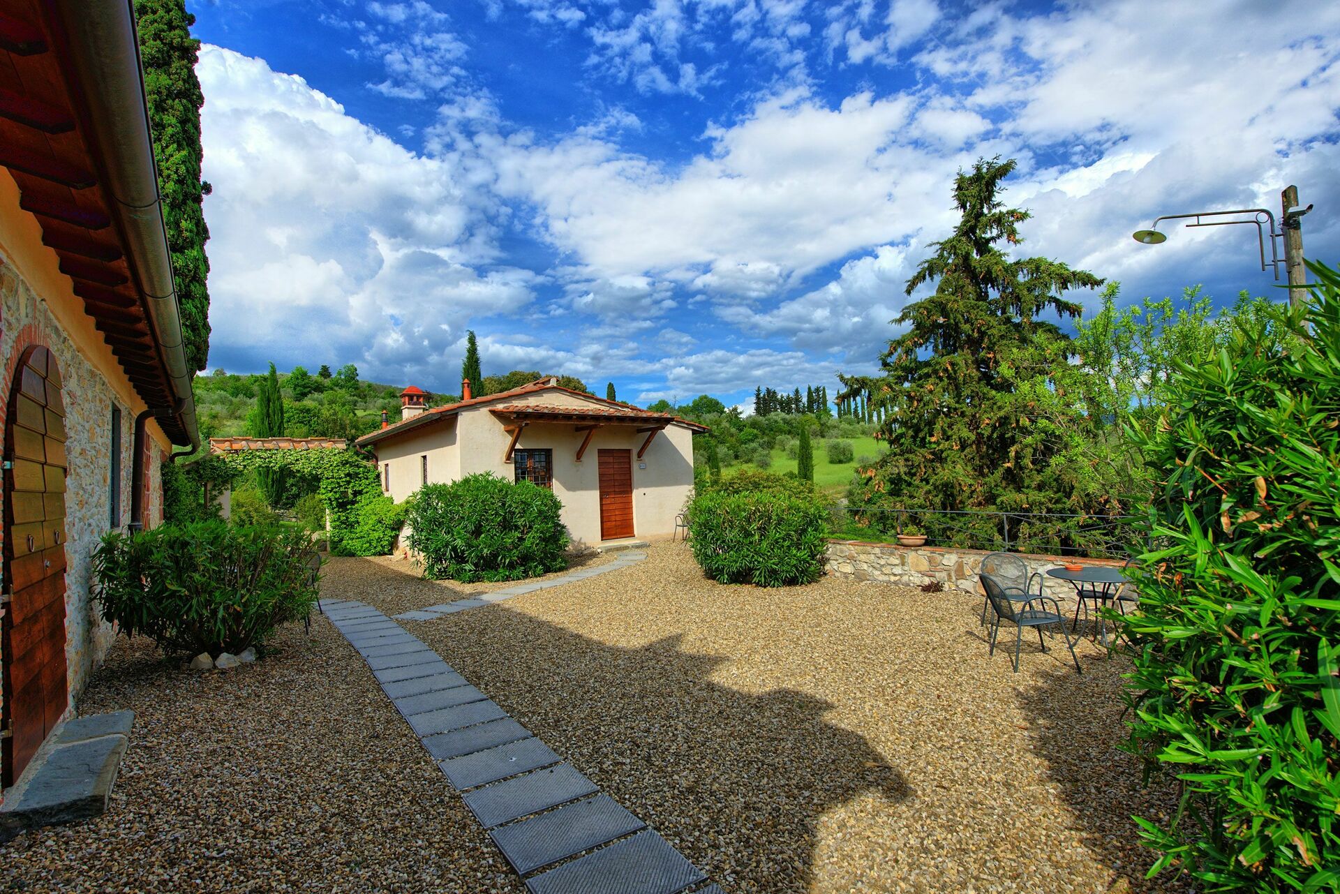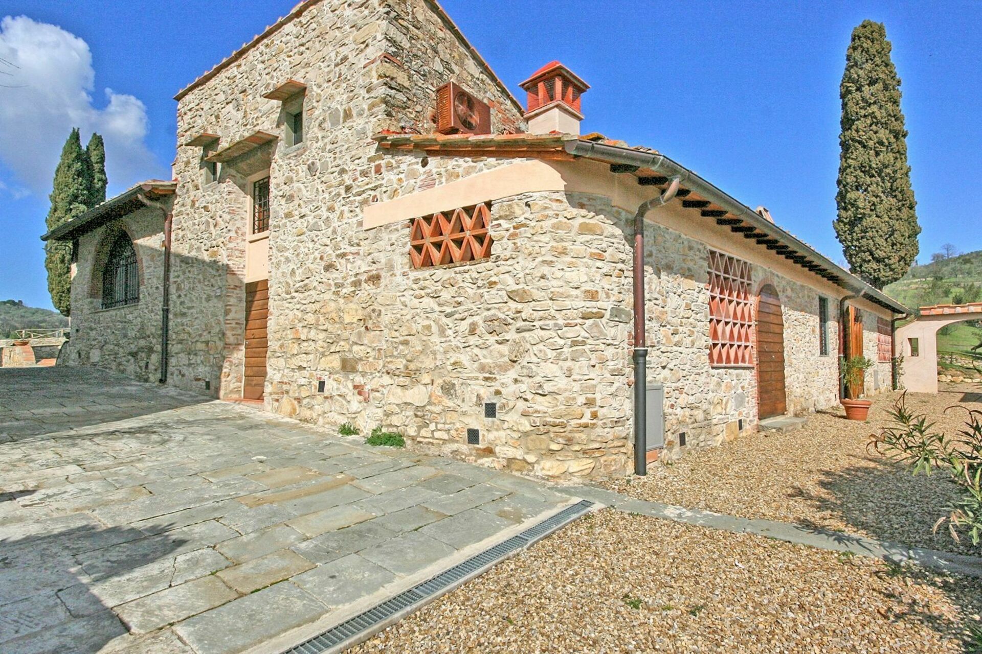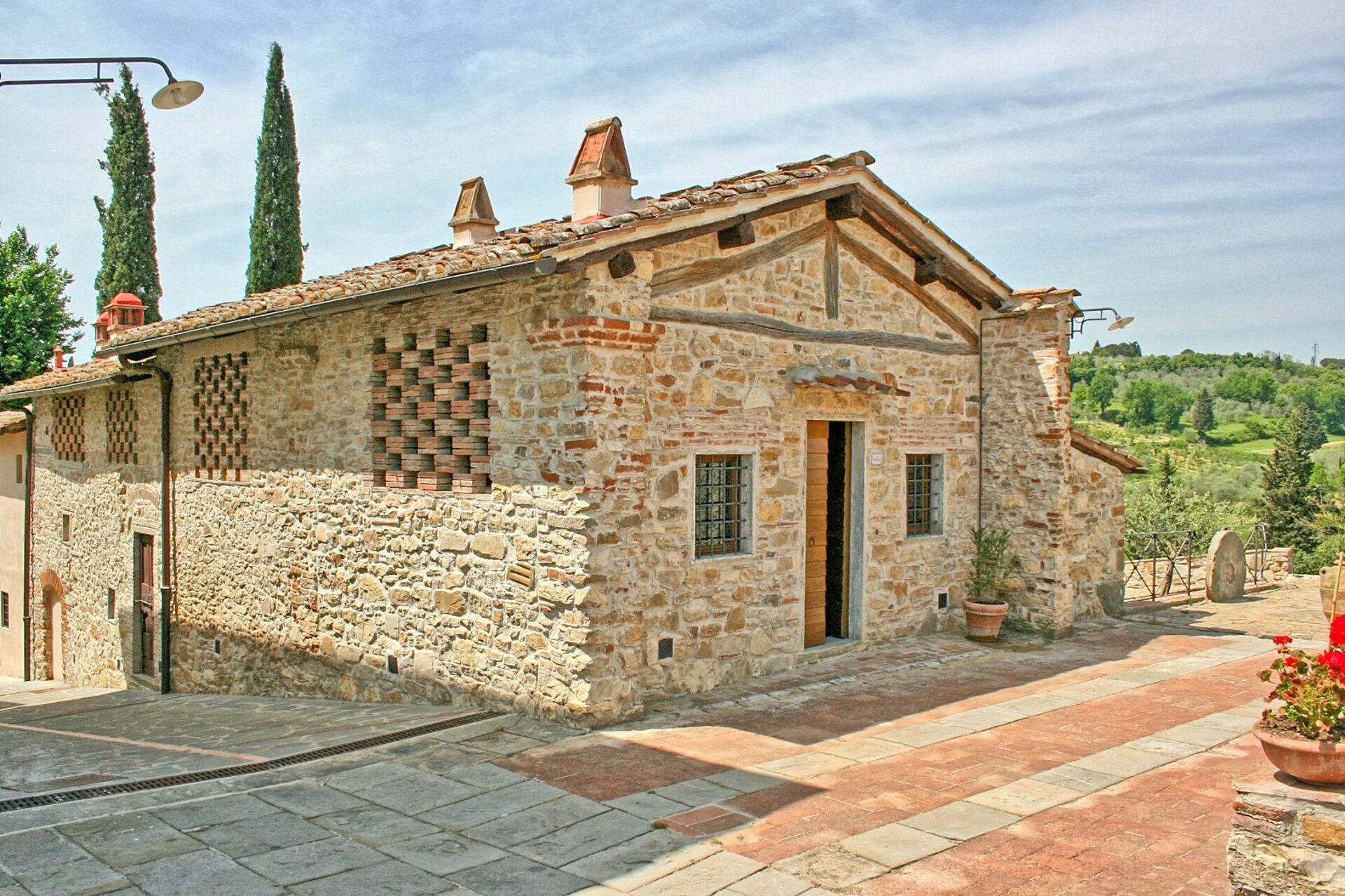 Avstånder: Grassina med alla typer av affärer 1 km, Florens (tågstation, flygplats) 10 km bort. San Gimignnao 58 km, Siena ca. 70 km bort, Arezzo 75 km, Pisa (flygplats) 95 km. Golfklubben Ugolino (18 hål) ligger 4 km bort.