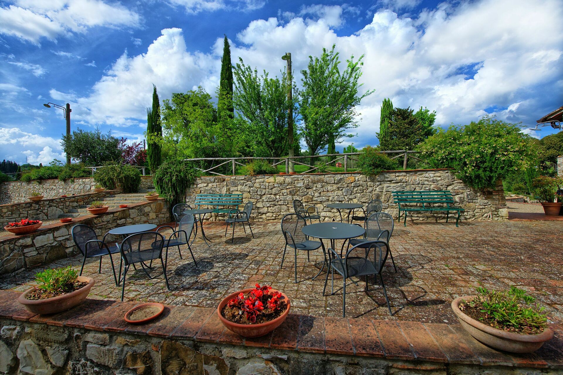 Le Fonti erbjuder både privatliv och komfort, samt en bra pool där du kan koppla av med vänner eller familj. Fastigheten har också en stor trädgård för gästanvändning. Det är bara 10 km från lägenheterna till Florens centrum. Fastigheten har nyligen restaurerats och omvandlats till 15 bekväma lägenheter, alla elegant inredda. Grenda är en del av en 35 hektar stor mark med olivlundar, vingårdar och vackra cypresser.