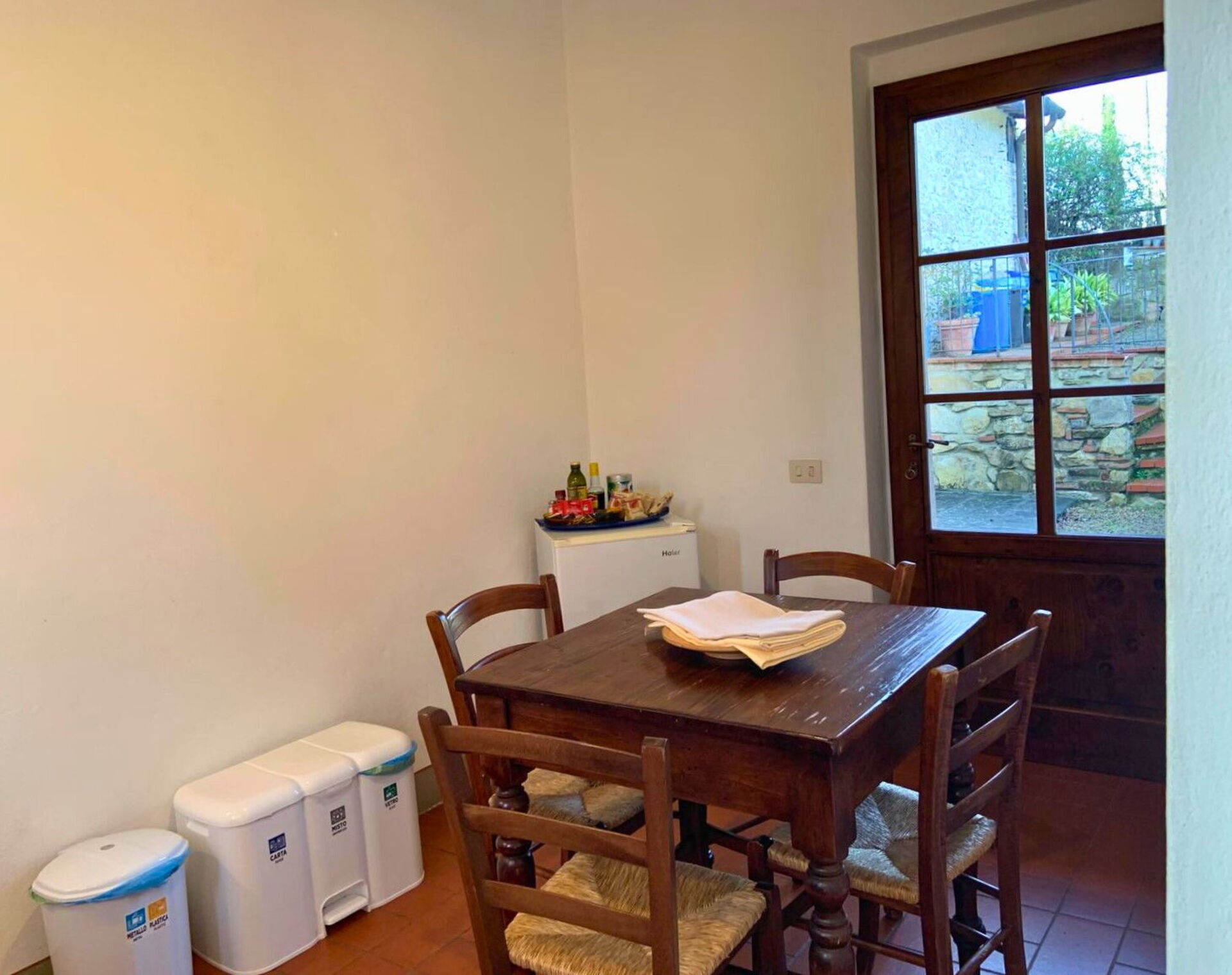 Litet privat möblerat utomhusområde.