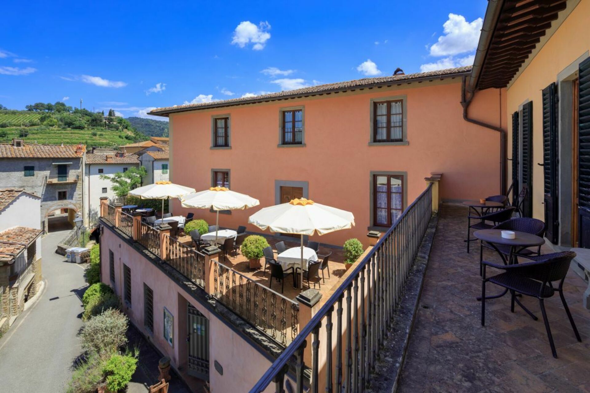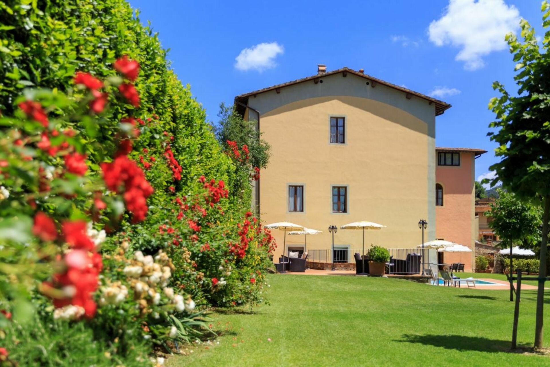 Fastigheten består av 2 herrgårdar med anor från 1600-talet, nyligen renoverade och uppdelade i bekväma lägenheter, alla inredda med god smak i en typisk toskansk rustik stil.
