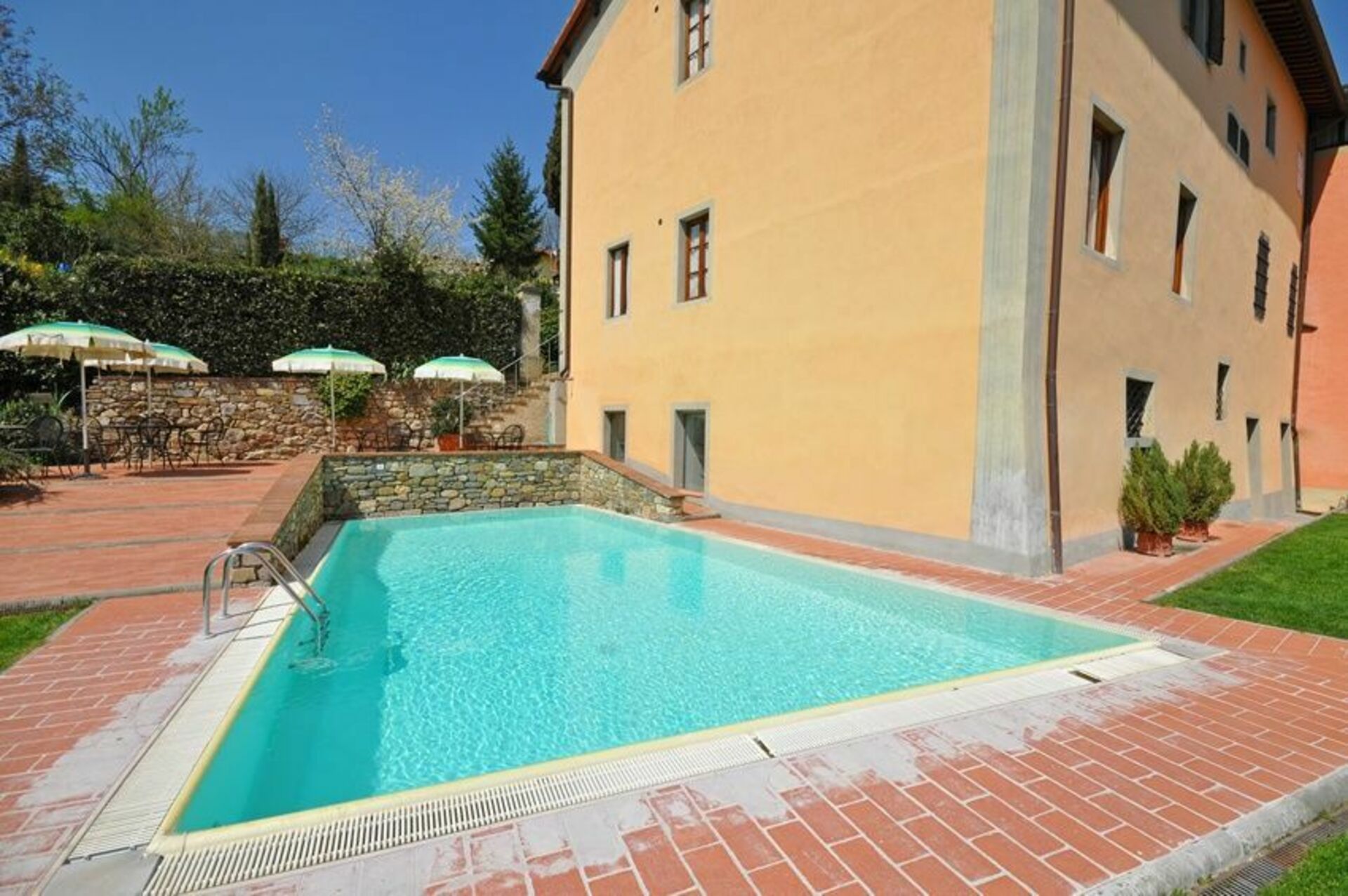 Palazzo a Greve har en fantastisk pool där du kan tillbringa avkopplande stunder med vänner eller familj och en stor trädgård.