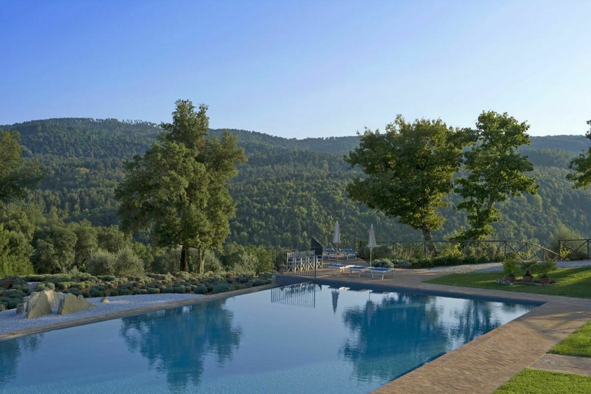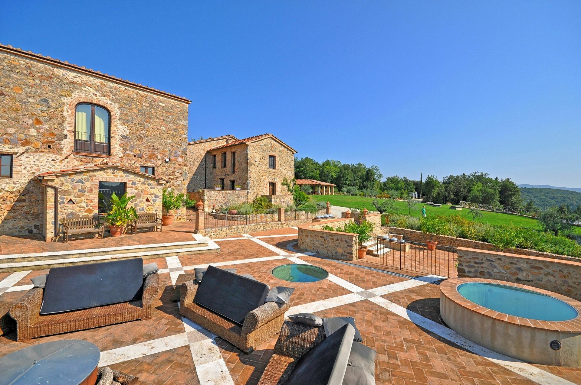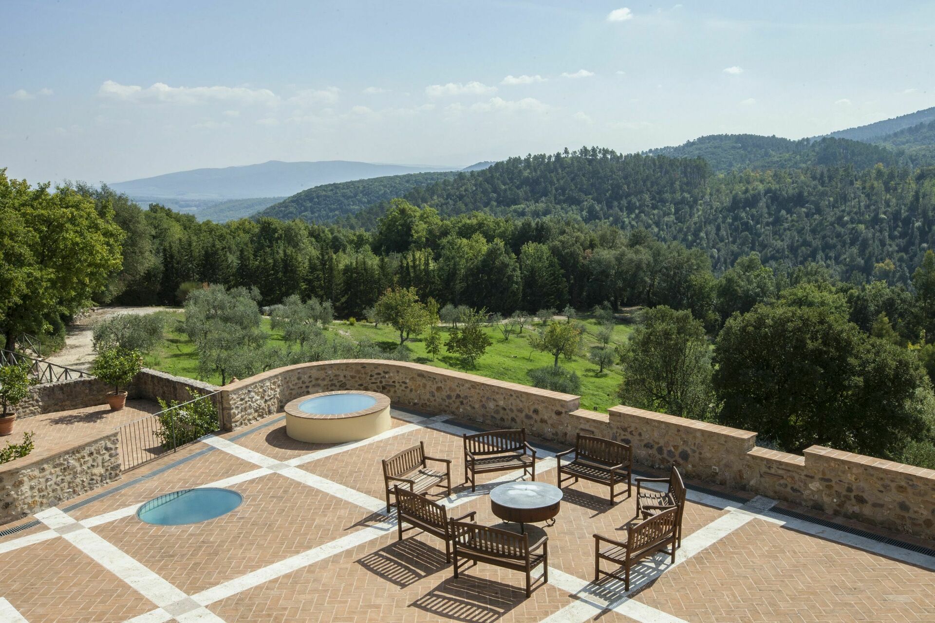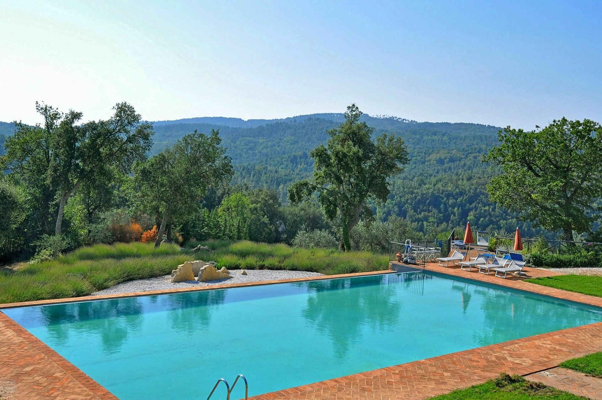 Vacker och rymlig villa med privat pool et lugnt läge på en kulle söder om Siena i Toscana med fantastisk utsikt över "Basso Merse" Naturreservat och Mount Amiata i fjärran. Huset är omsorgsfullt renoverat och förvandlat till en raffinerad strålande hus på landet med alla bekvämligheter. Interiören är elegant och villan är smakfullt inredd med en trevlig kombination av tradition och lyx. Semesterhusetär omgiven av en stor, välskött trädgård dekorerad med en mängd olika växter och rosor. Utanför kan gästerna också njuta användningen av en vacker privat pool i panoramaläge, en stor terrass och ett täckt område med vidsträckt utsikt över det omgivande landskapet.