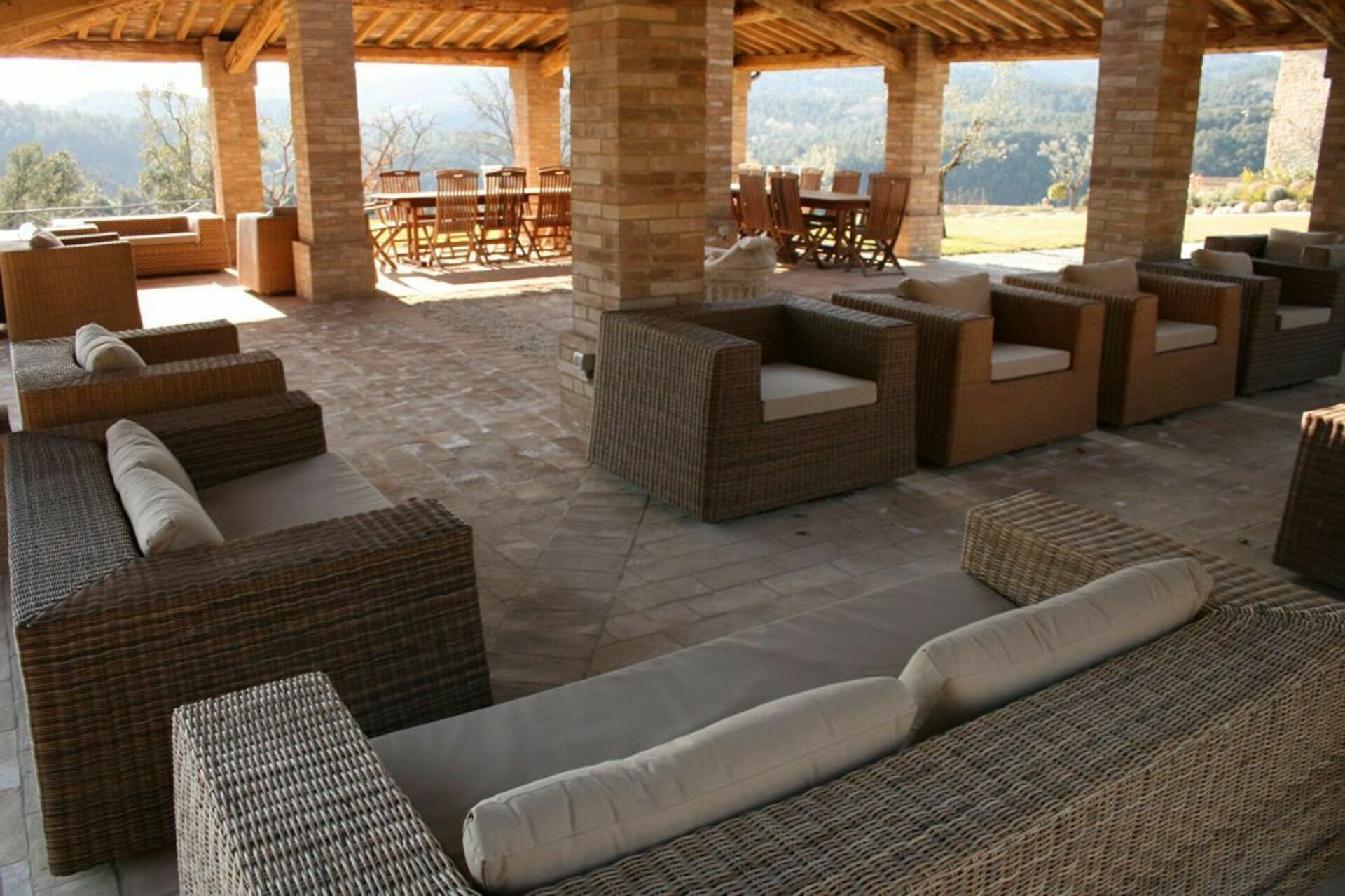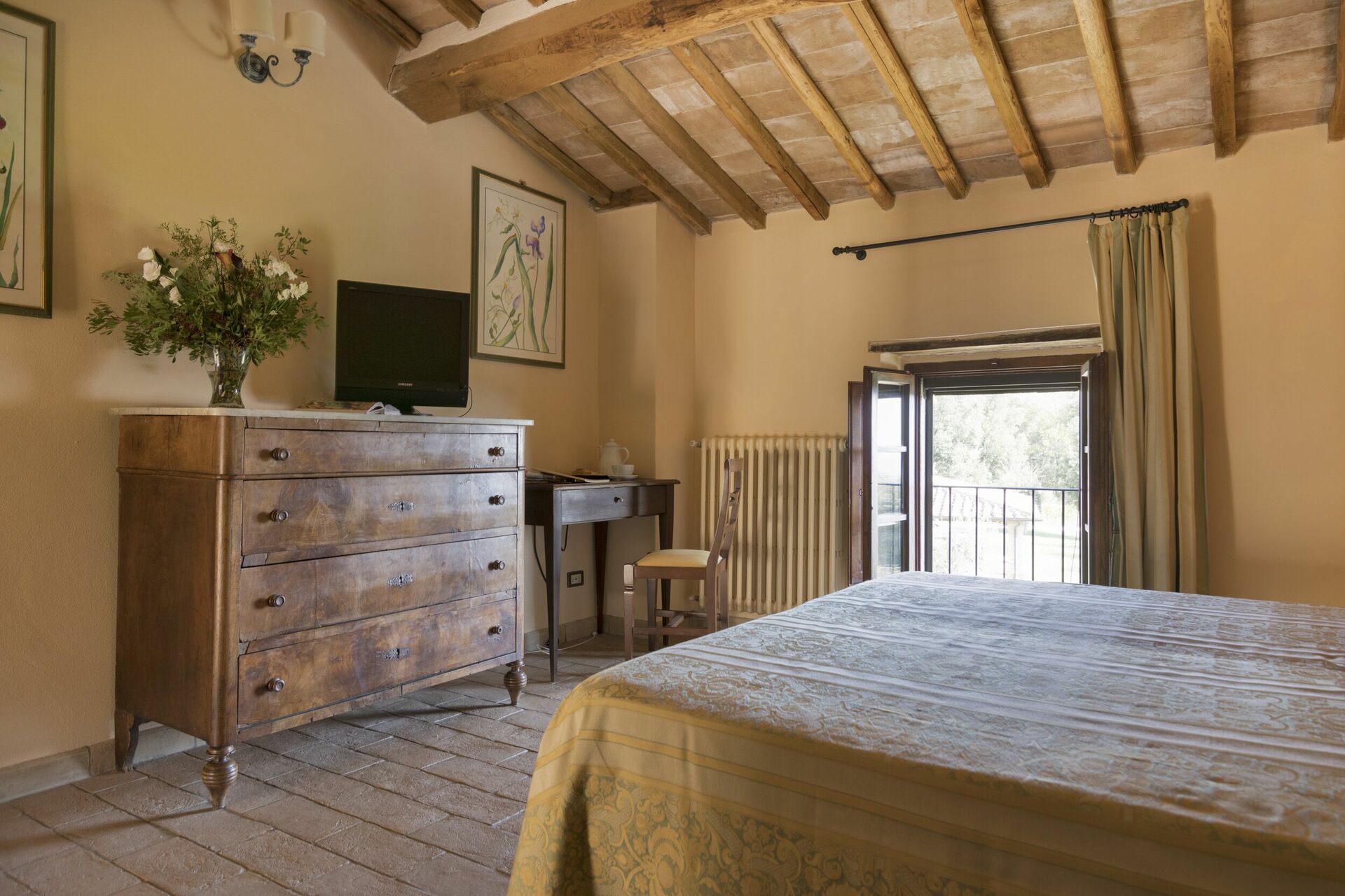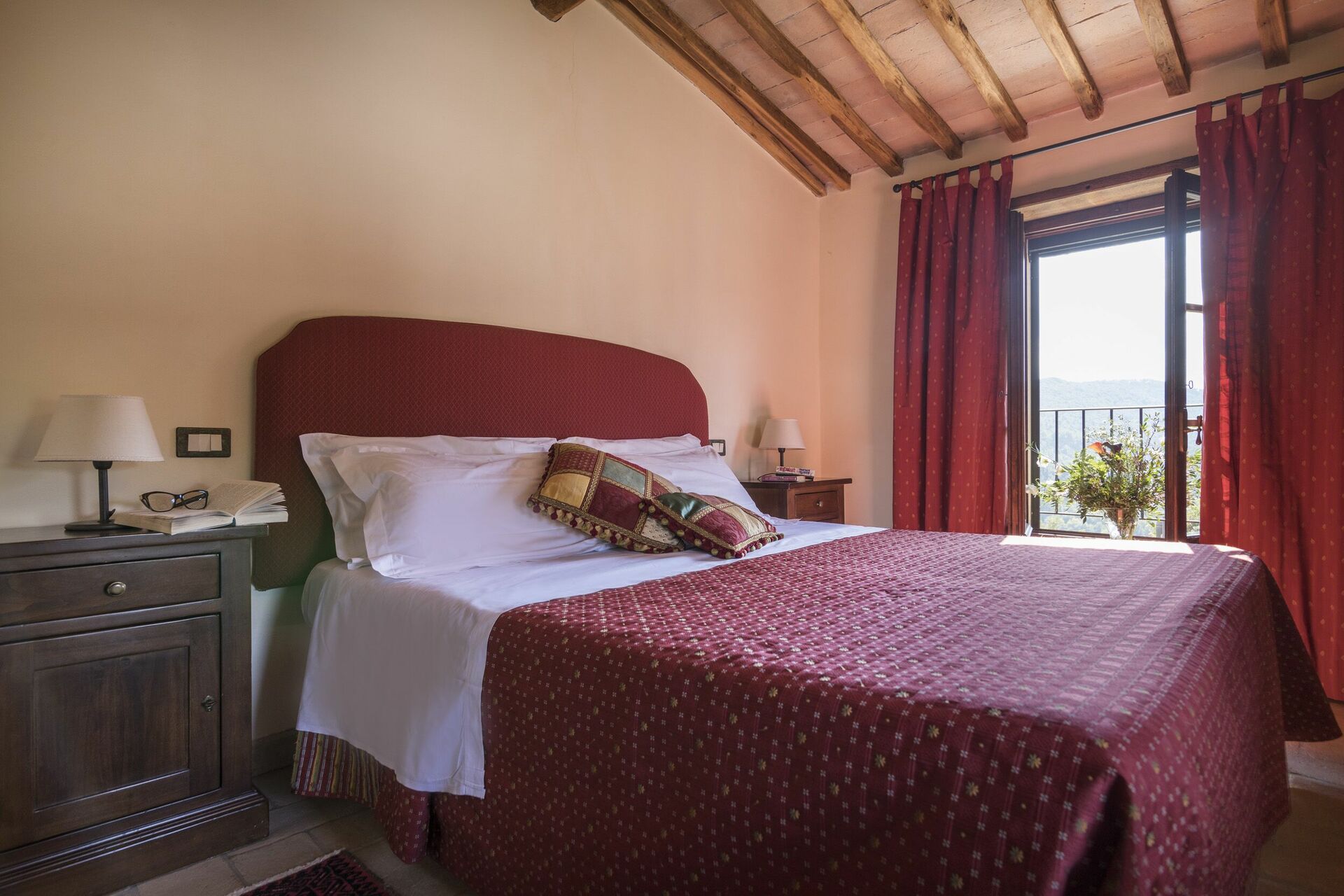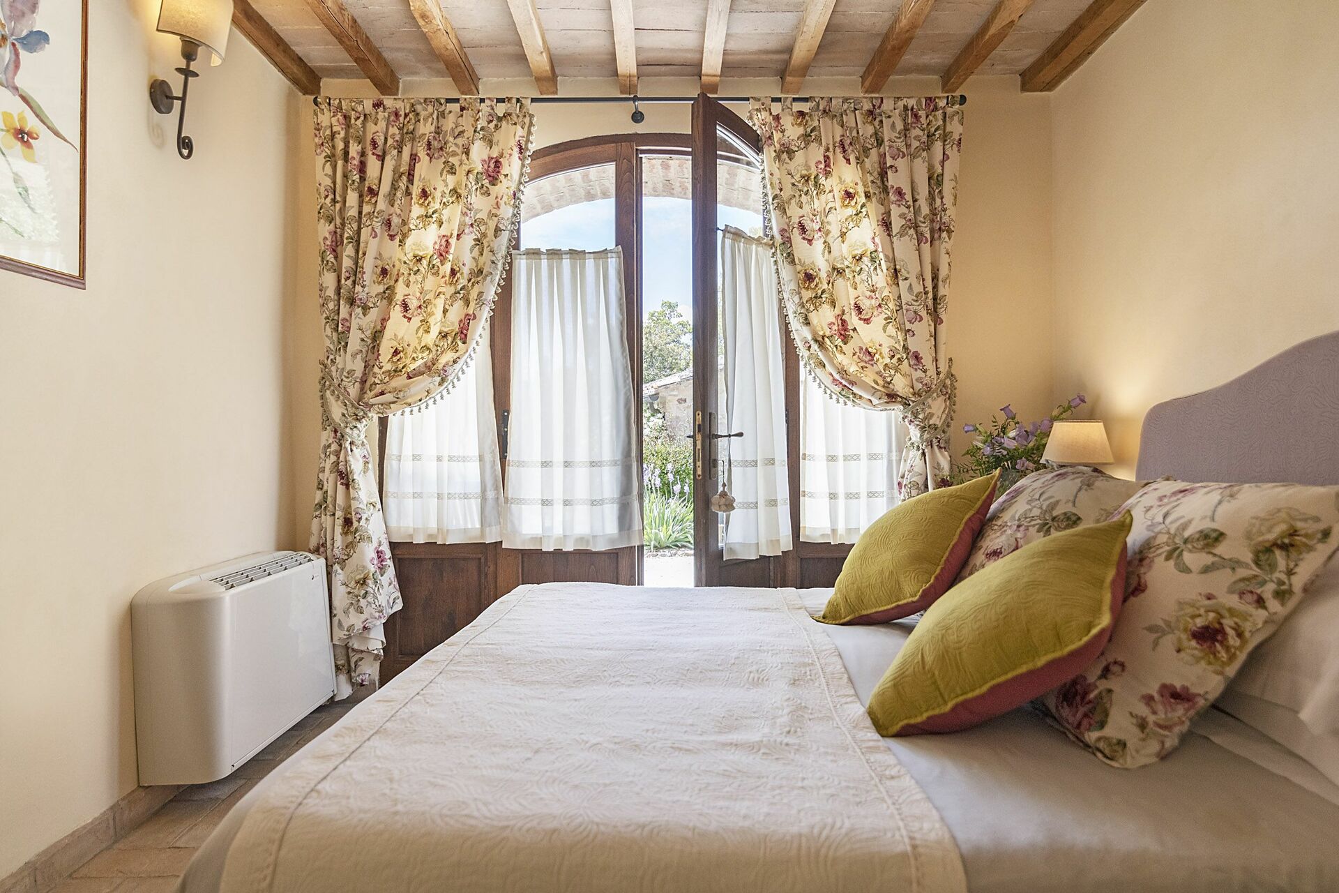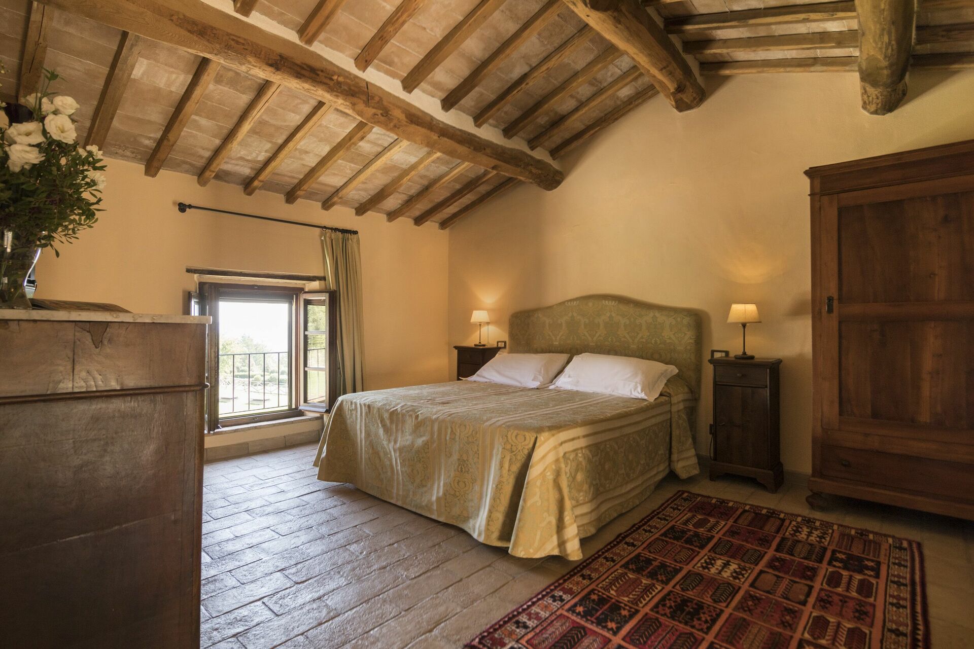 Vacker och rymlig villa med privat pool et lugnt läge på en kulle söder om Siena i Toscana med fantastisk utsikt över "Basso Merse" Naturreservat och Mount Amiata i fjärran. Huset är omsorgsfullt renoverat och förvandlat till en raffinerad strålande hus på landet med alla bekvämligheter. Interiören är elegant och villan är smakfullt inredd med en trevlig kombination av tradition och lyx. Semesterhusetär omgiven av en stor, välskött trädgård dekorerad med en mängd olika växter och rosor. Utanför kan gästerna också njuta användningen av en vacker privat pool i panoramaläge, en stor terrass och ett täckt område med vidsträckt utsikt över det omgivande landskapet.
