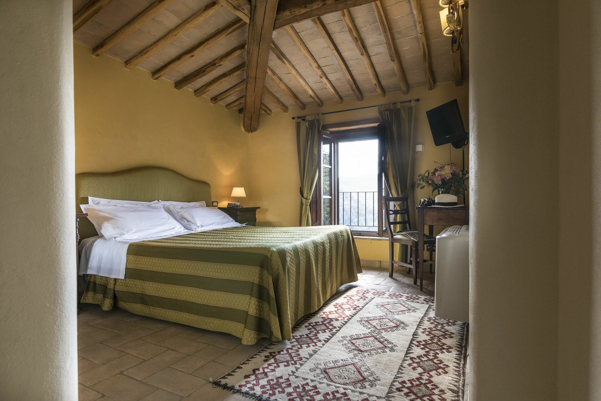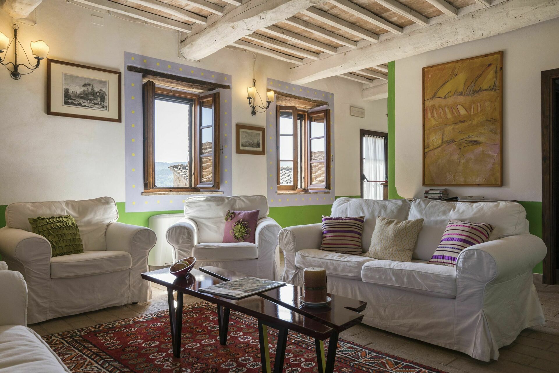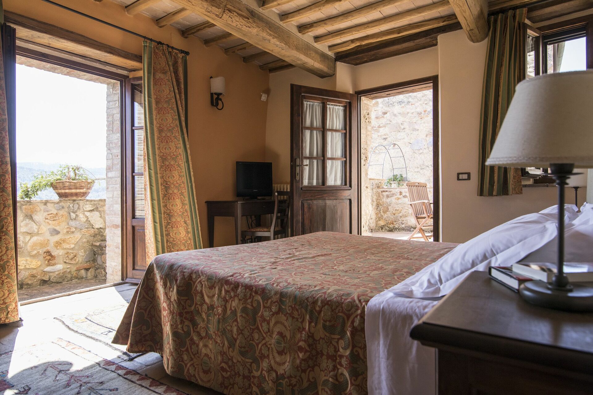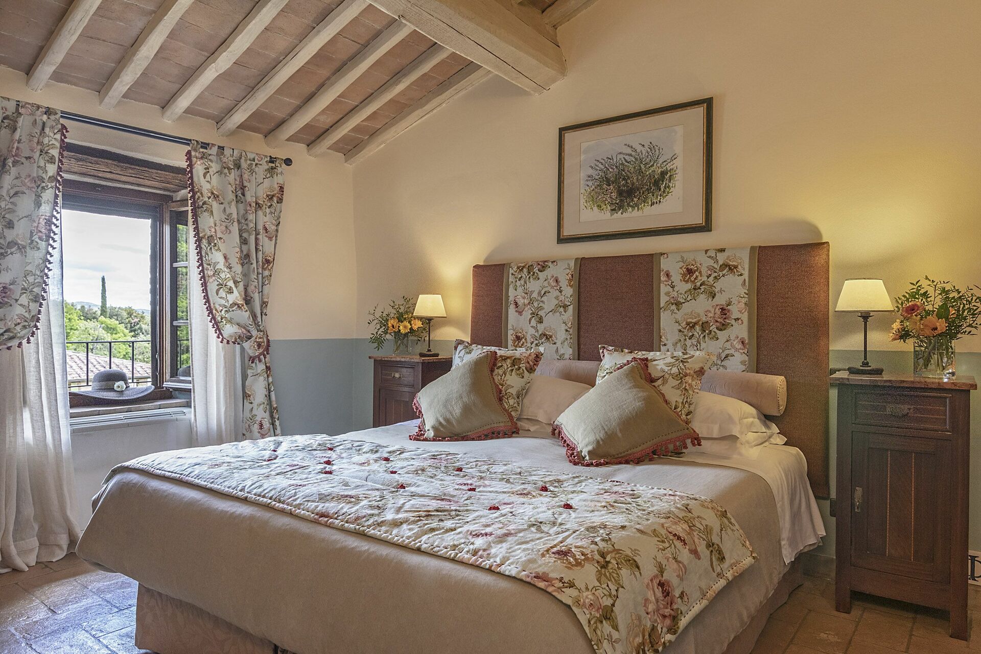 Vacker och rymlig villa med privat pool et lugnt läge på en kulle söder om Siena i Toscana med fantastisk utsikt över "Basso Merse" Naturreservat och Mount Amiata i fjärran. Huset är omsorgsfullt renoverat och förvandlat till en raffinerad strålande hus på landet med alla bekvämligheter. Interiören är elegant och villan är smakfullt inredd med en trevlig kombination av tradition och lyx. Semesterhusetär omgiven av en stor, välskött trädgård dekorerad med en mängd olika växter och rosor. Utanför kan gästerna också njuta användningen av en vacker privat pool i panoramaläge, en stor terrass och ett täckt område med vidsträckt utsikt över det omgivande landskapet.