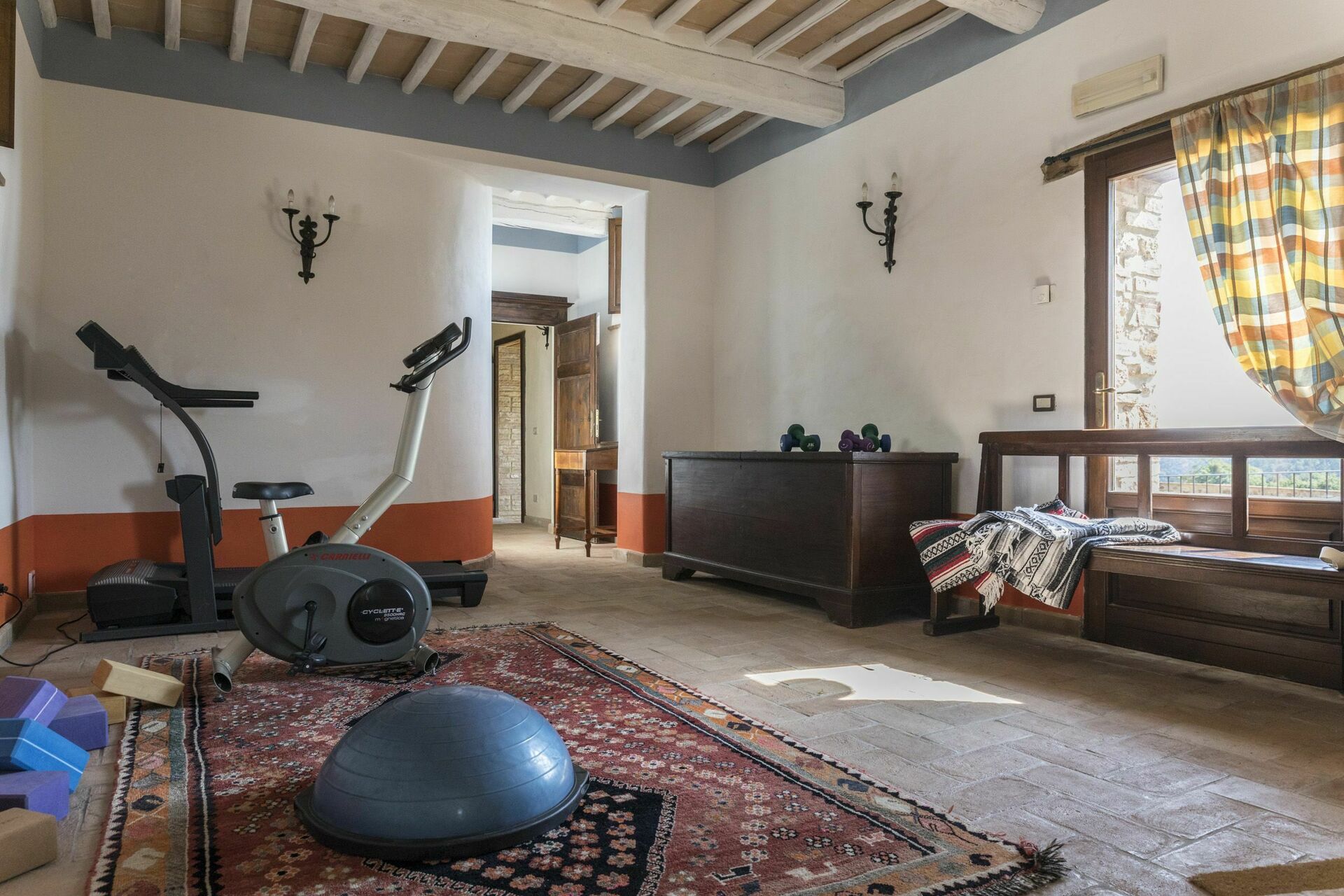 Bottenvåningen: "wellness" rum med löpband, cykel och massage, badrum med dusch.