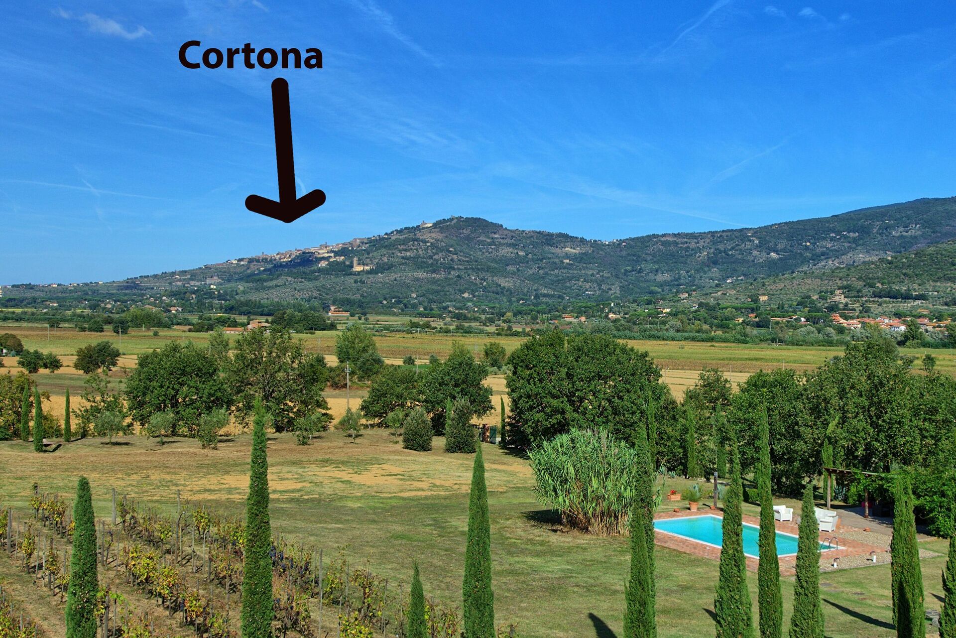 Husets läge gör det enkelt att nå många av de mest kända sevärdheterna i både Toscana och Umbrien. Den berömda staden Cortona, som är från den etruskiska eran, ligger bara 8 km bort.