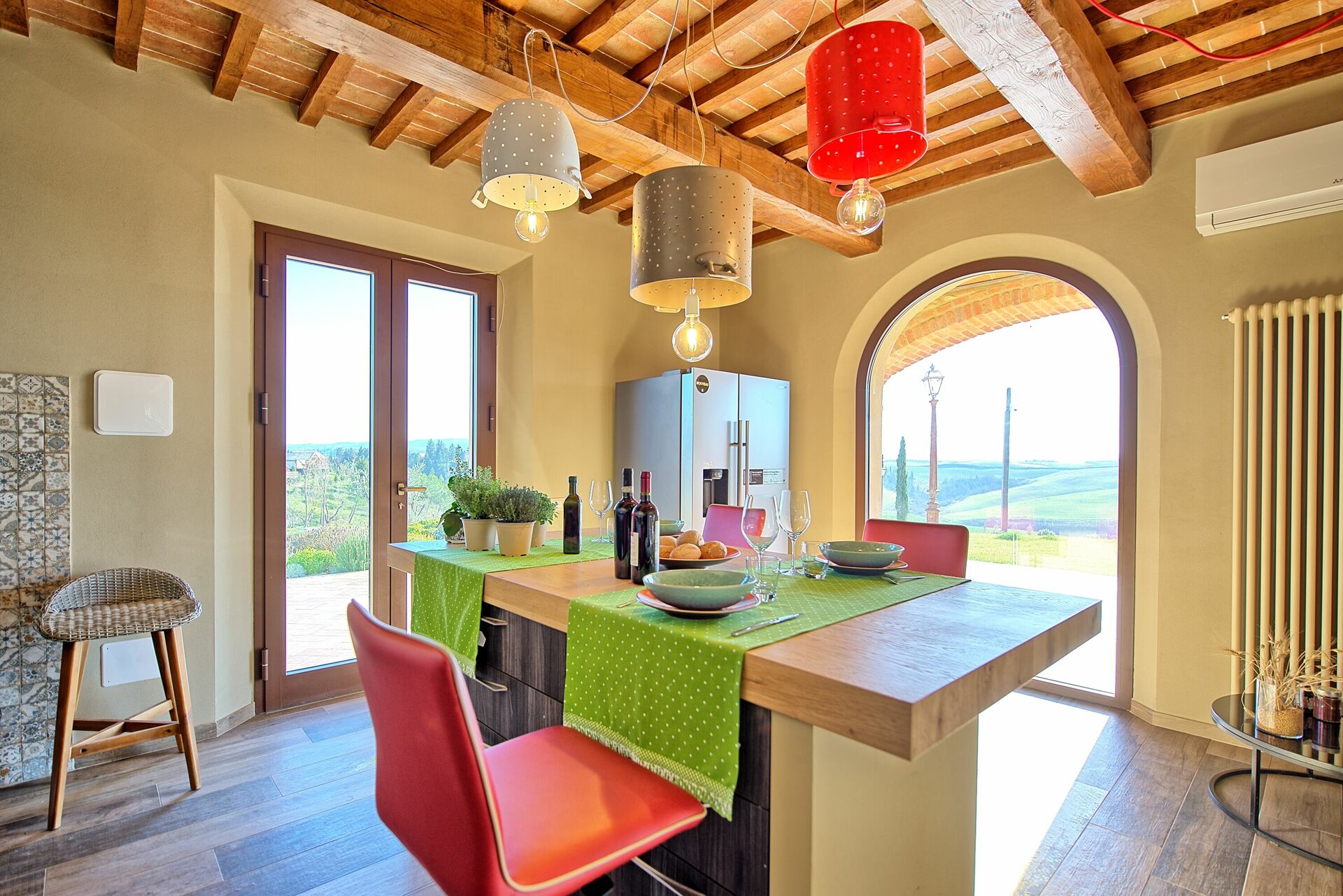 I rented this home for two families, 2 couples and four kids, age 8-12. It was perfect for everyone! We rented the villa not realizing it was part of an aguturismo farm, which meant we had access to a little shop, a wonderful restaurant, classes, activities and amenities for adults and children. This was so much more than we’d hoped for as Tuscany can be very unpredictable with access to all of these things. While we had complete privacy, just a short 5-10 minute walk away was the main farm. The home itself is exceptional. Absolutely stunning with 360 unobstructed views. The staff and specifically, the owner himself, Massimilliano, went above and beyond to make our stay great. You can tell that the owner really cares about the farm, his guests and his staff. The vibe is warm, friendly and so happy. The kids met other kids at the farm, and had a blast. They swam (even though it was April!) and they hikes the hills surrounding the home. Access to some of the best Tuscan cities was easy. I have already told many friends about this Villa and the farm itself which offers a number of different types of accommodations. We will return!