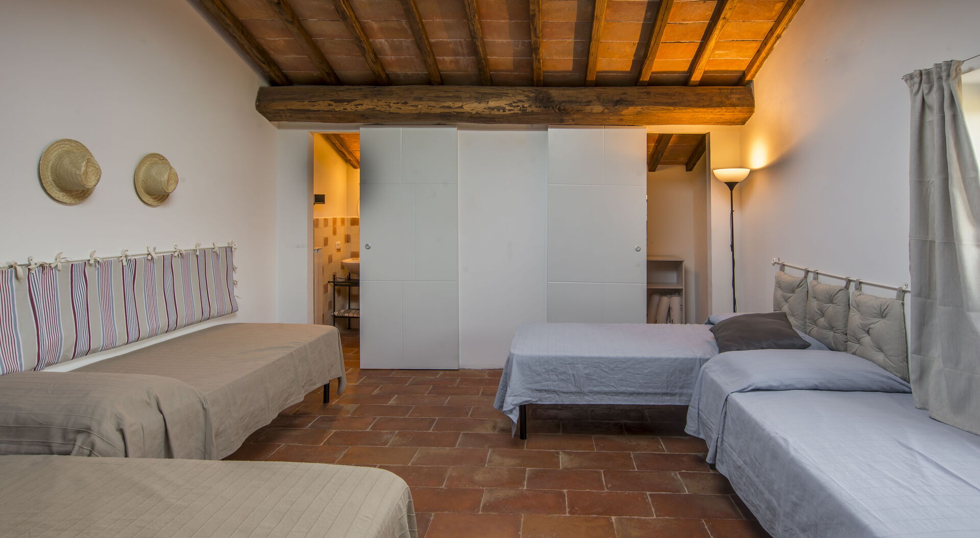 Stort vardagsrum med lounge (med extra dubbel bäddsoffa på begäran) och tillgång till loft med sovrum med 4 enkelsängar och badrum med dusch; matplats med kök (diskmaskin, ugn, kylskåp, induktionshäll, mikrovågsugn, kaffebryggare, fläkt), 1 dubbelrum, badrum med dusch.