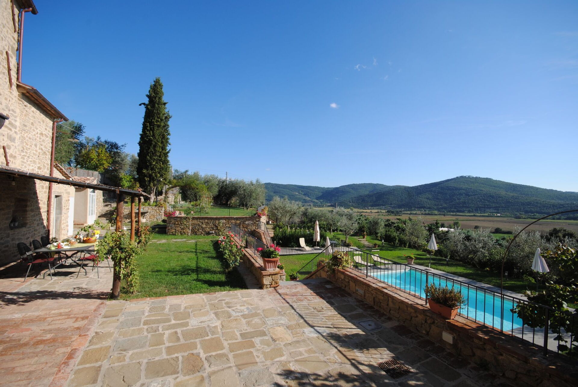 Tomten har en stor, välskött trädgård och en fantastisk privat pool med solstolar: detta är den perfekta platsen att koppla av på eller svalka sig under soliga varma sommardagar medan man beundrar det fantastiska toskanska landskapet.