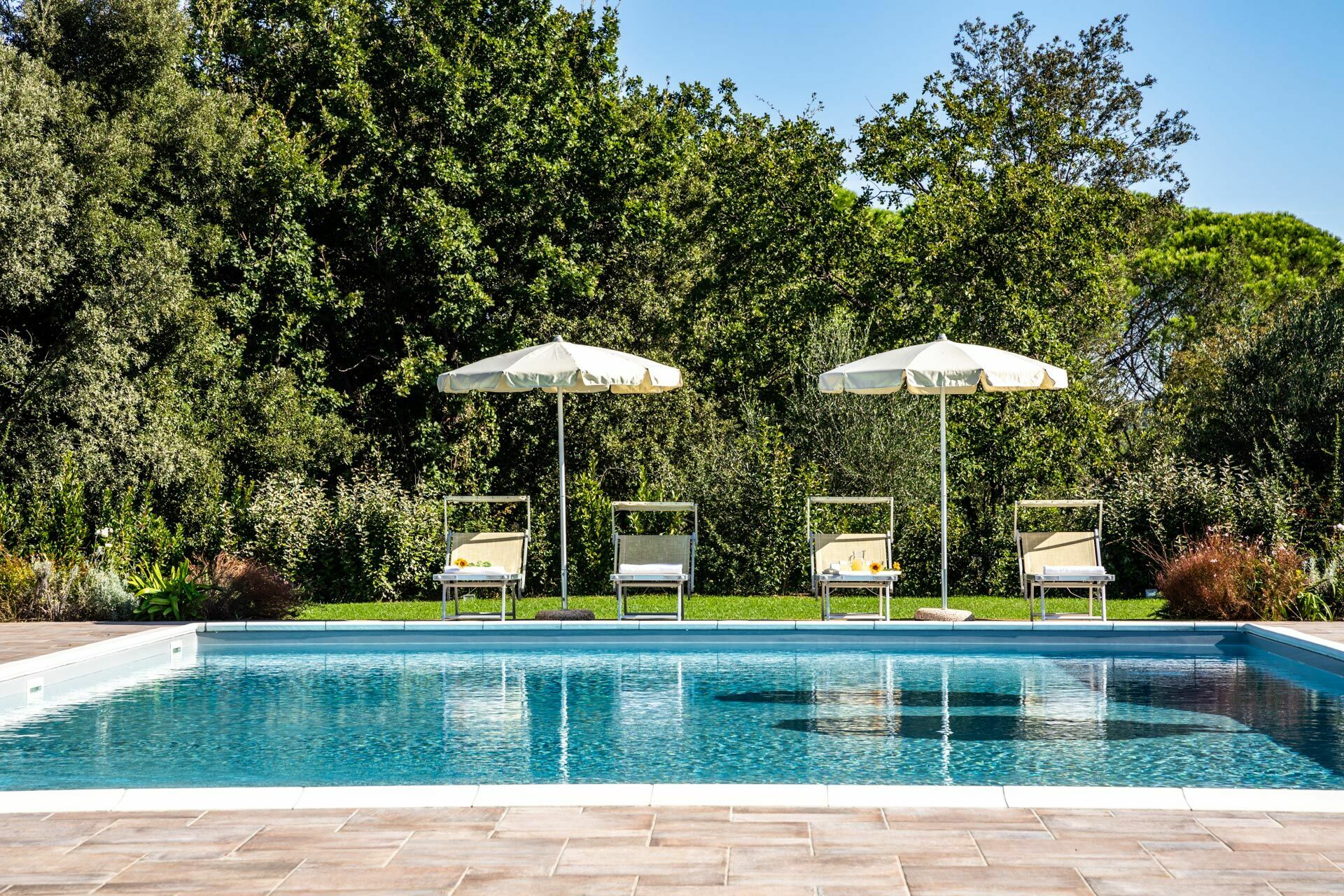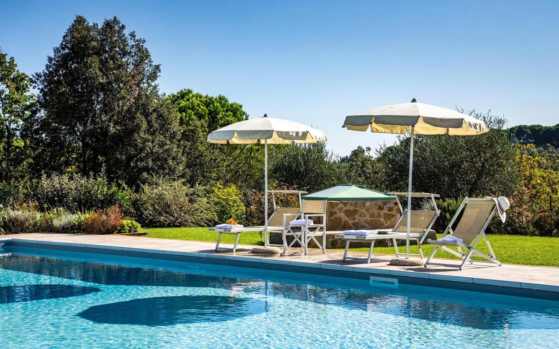 - privat pool (16 x 8 m - minsta djup 0,7 meter, medium djup: 1,20 meter, max djup 1,8 m)