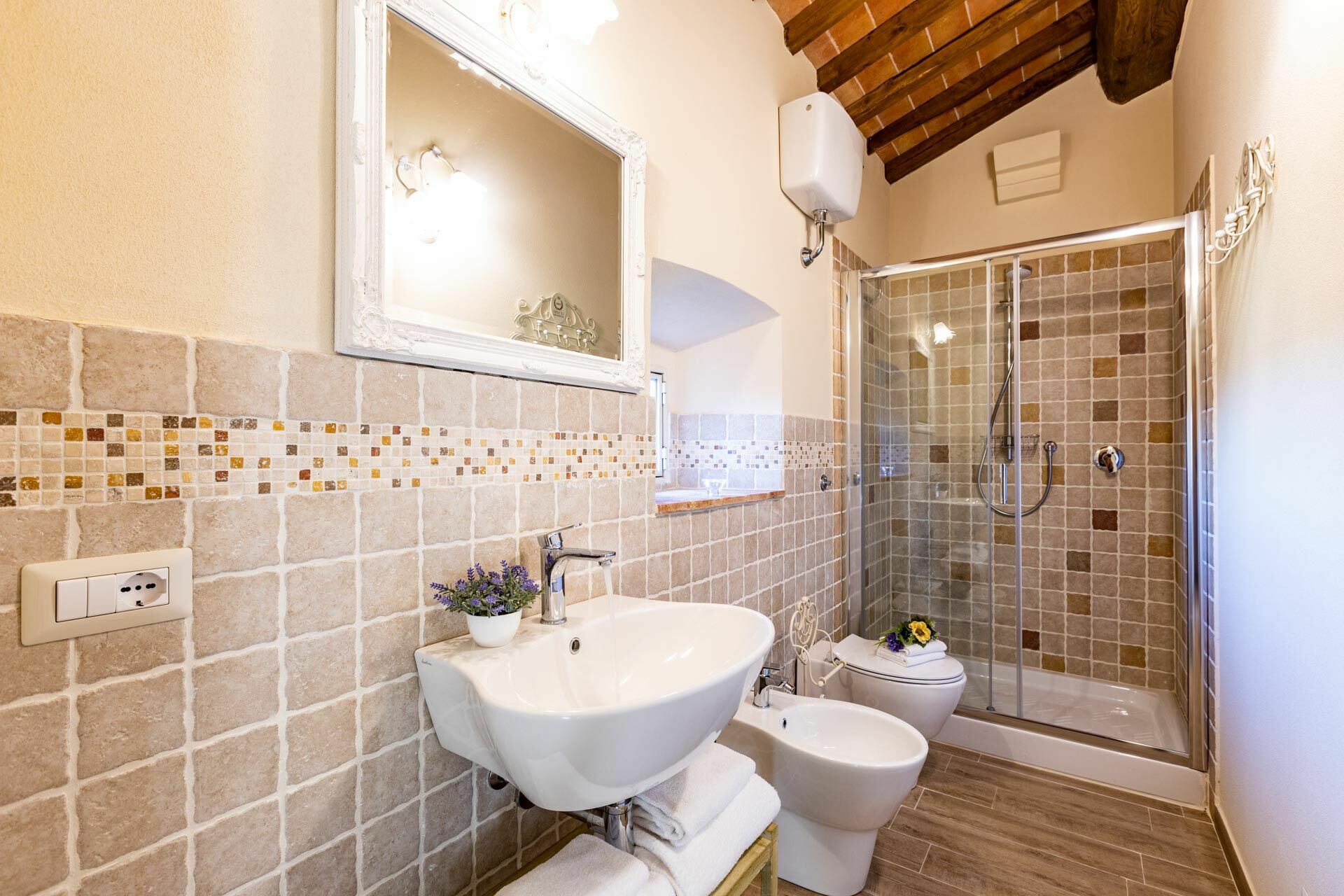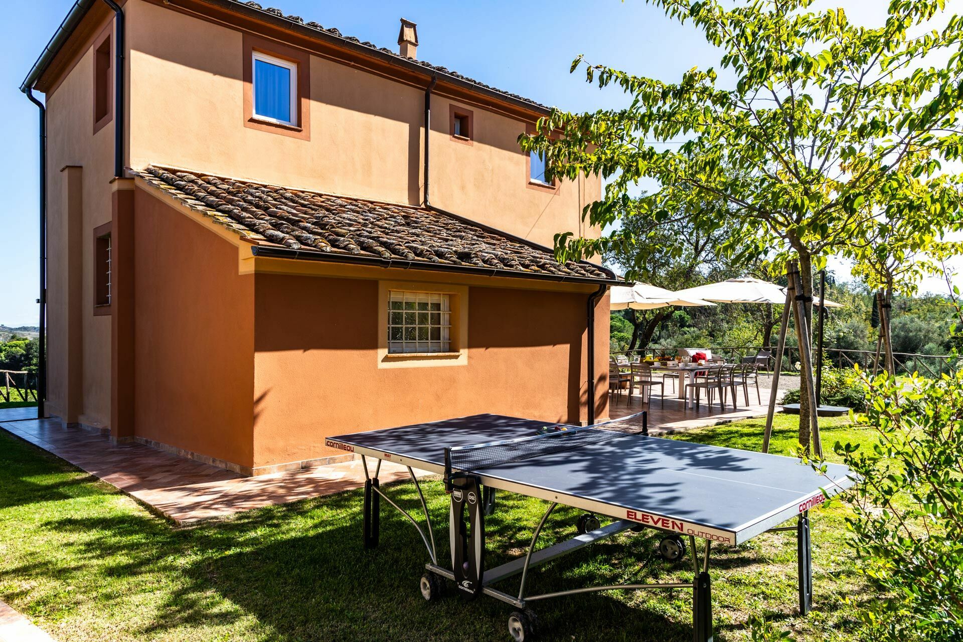 Huset är inredd i toskansk landstil, med elegant interiör och rymmer upp till 10 personer. Fastigheten består av huvudbyggnad med 3 sovrum, en liten lägenhet med 1 sovrum och et annex med 1 sovrum.