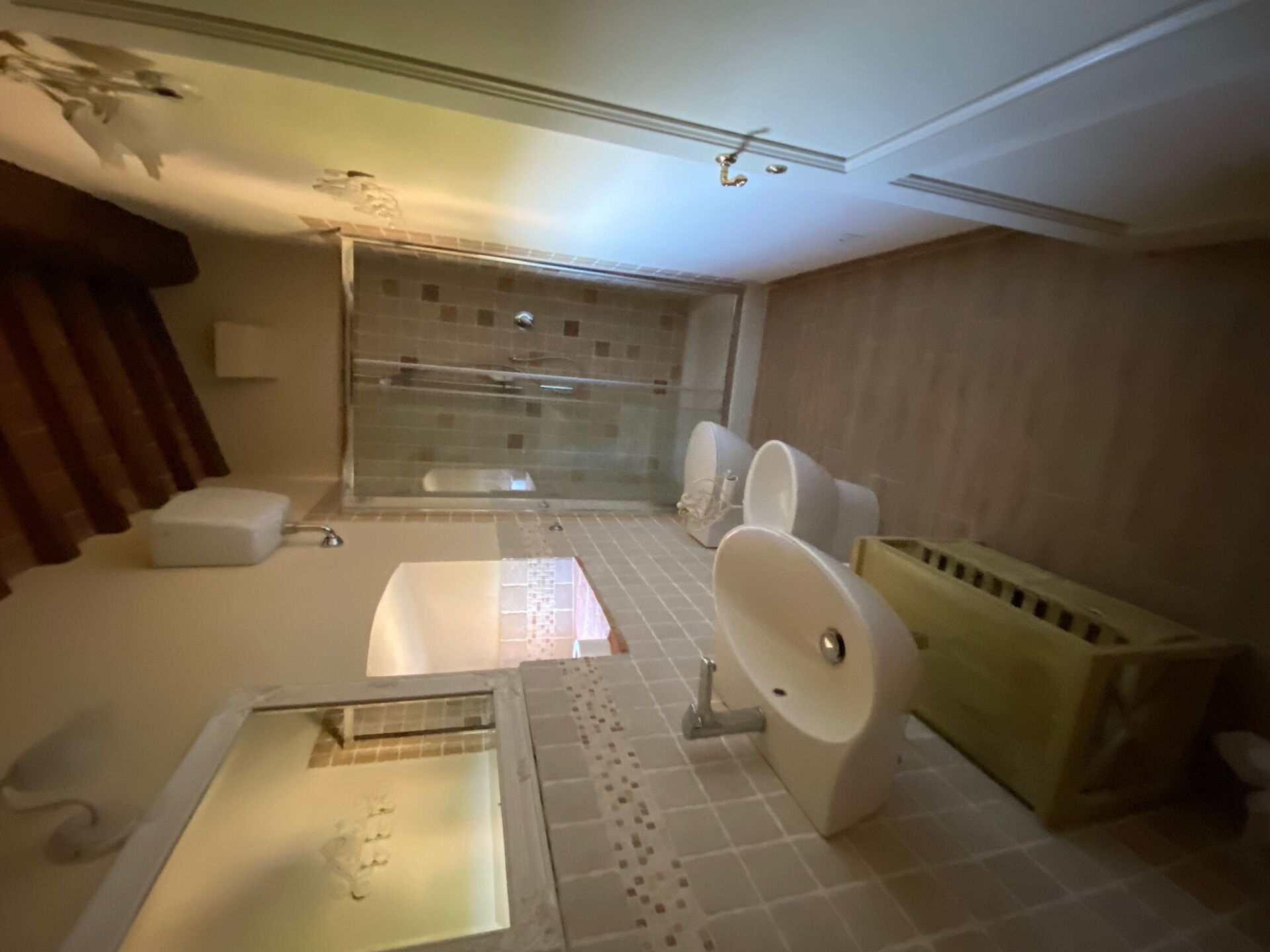 Andra våningen: badrum med dusch, dubbelrum (luftkonditionering) med eget badrum med dusch, dubbelrum (luftkonditionering) med privat badrum med dusch.