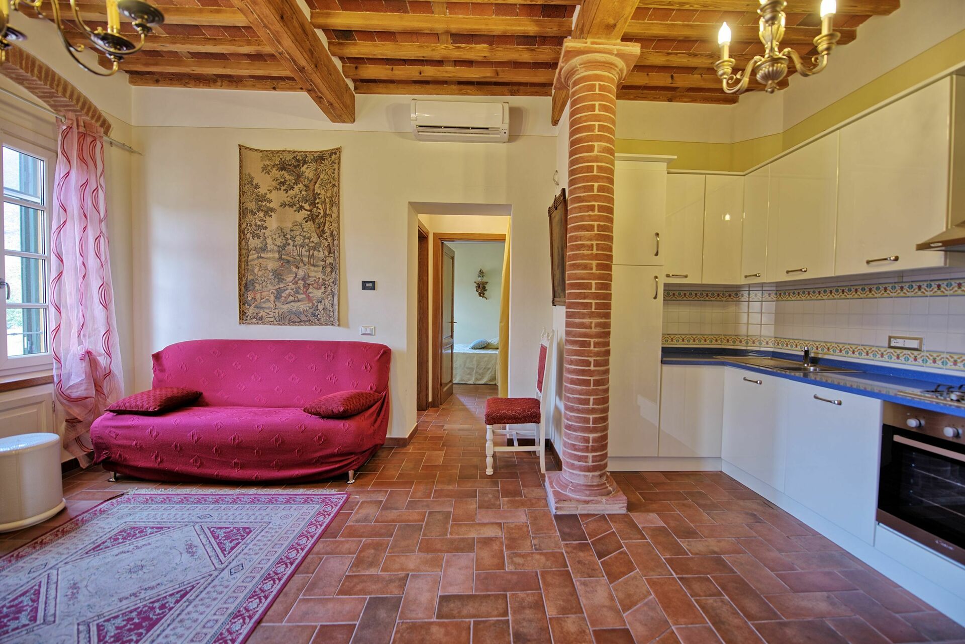 The apartment is located in a very scenic area with a mountain near bye where you can see the leaning tower of Pisa and the whole area including the coastline and Lucca. We arrived little late for the pool season, but whole complex is very nice and greta place to travel around Tuscany.
