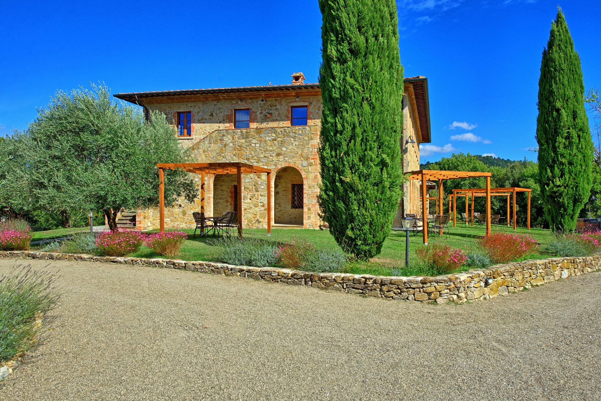 Avstånd: Pievescola med livsmedelsbutiker 3 km, Casole d'Elsa med alla typer av affärer 15 km, Siena 25 km, Monteriggioni 25 km, medeltida stad San Gimignano 30 km, Montalcino 65 km, Florens 70 km km, Pienza 75 km. Den toskanska kusten (Cecina, Bibbona, San Vincezo eller Follonica) ligger cirka 70 km bort.