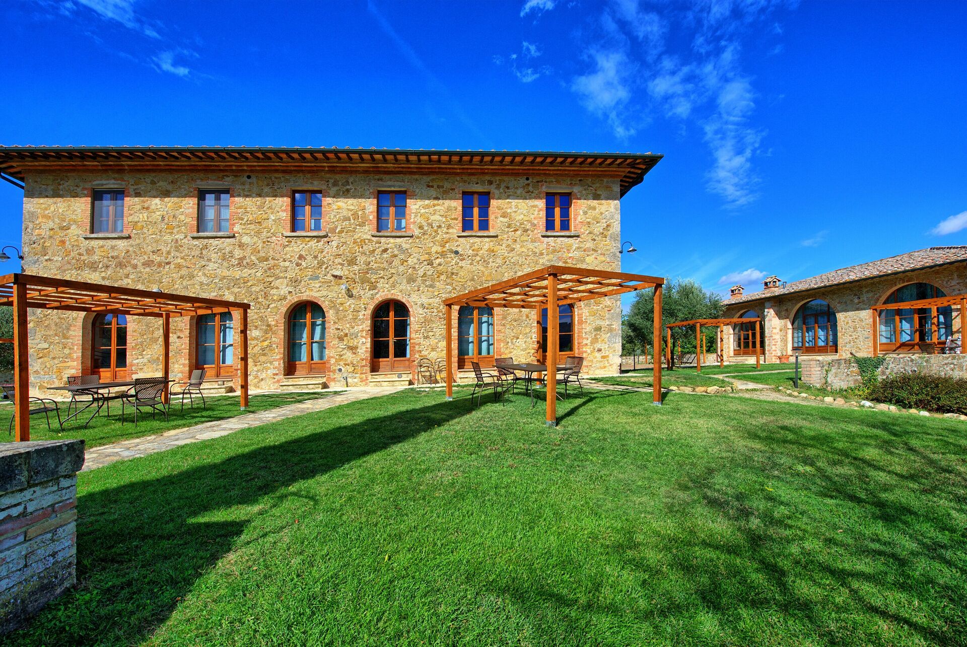 Lägenheterna är lugnt belägna med panoramautsikt över den toskanska landsbygden och är perfekta för familjer eller par som vill besöka det vackra Toscana på en avkopplande plats omgiven av naturen.