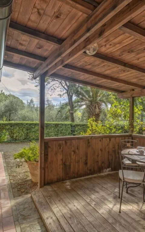 Veranda med bord och stolar