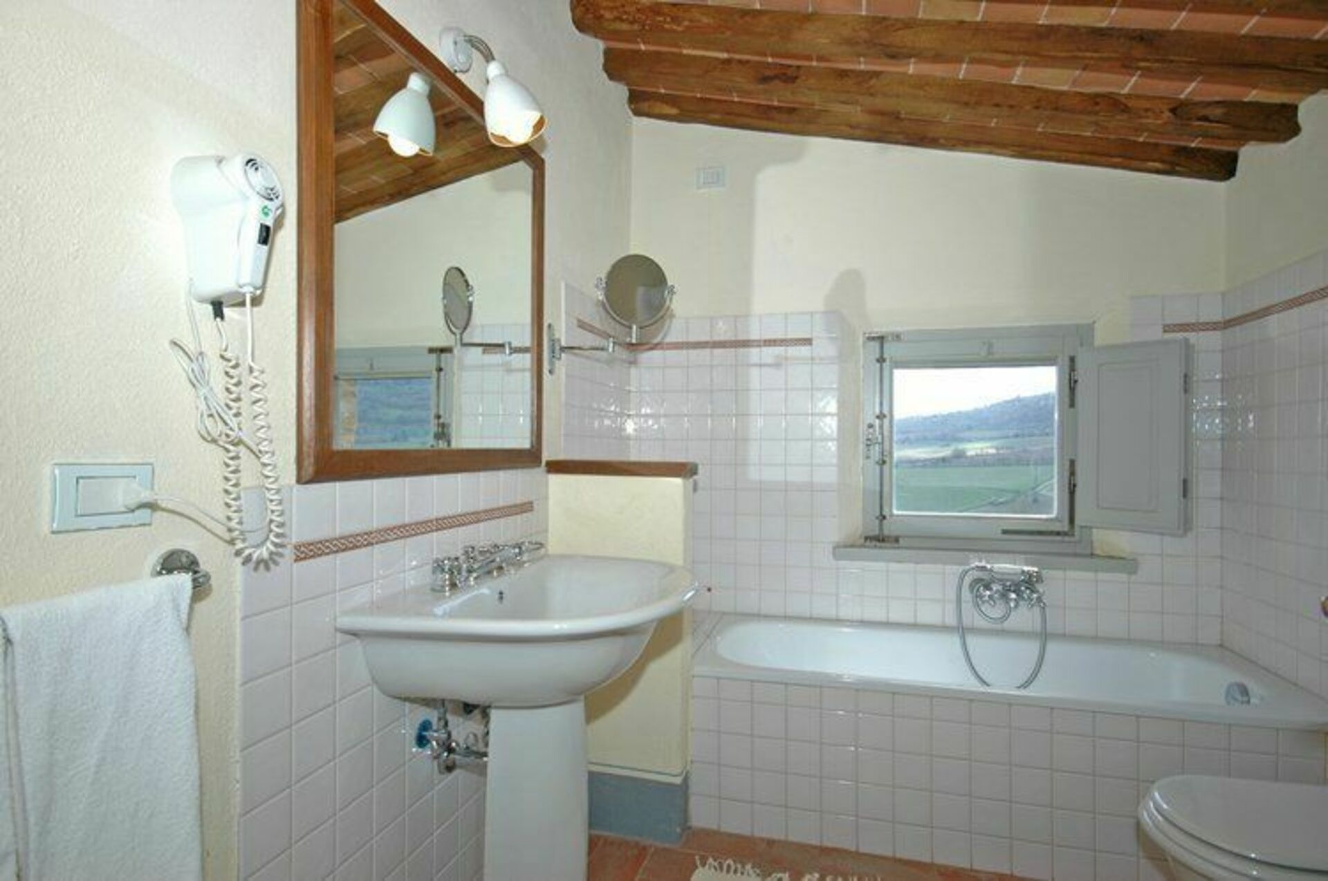 Bottenvåning: vardagsrum (satellit-TV) med öppen spis, kökshörna (ugn, frys, diskmaskin), matplats och tillgång till en privat trädgård med vacker utsikt över Montalcino, dubbelrum med eget badrum med badkar.