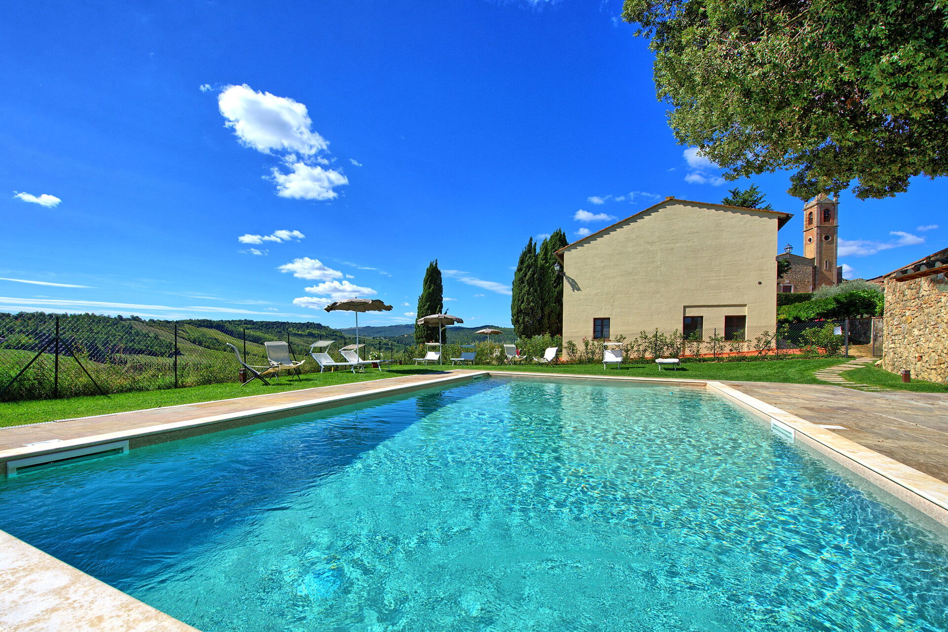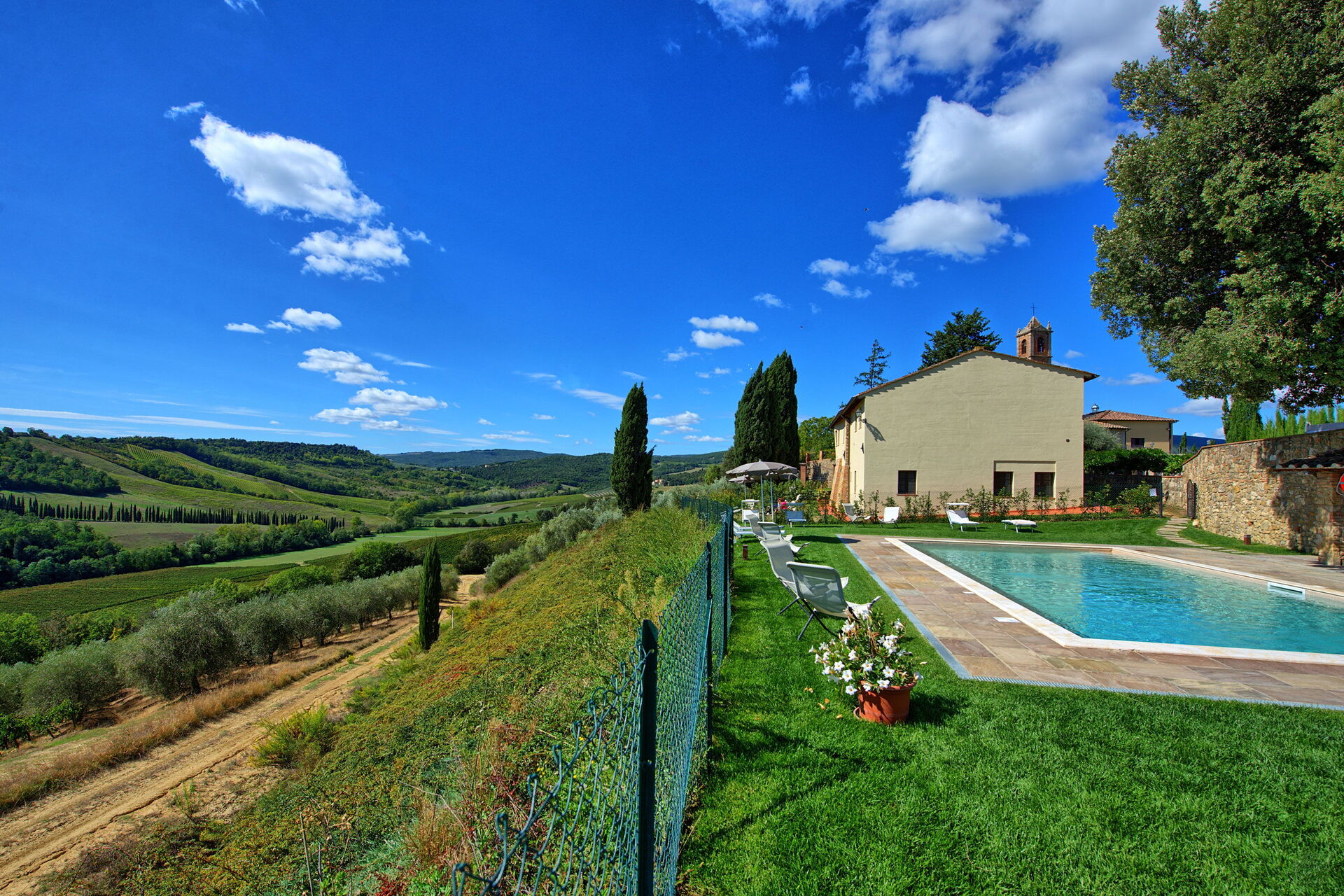 Avstånd: San Gimignano med butiker av alla slag 4 km, Pieve di Cellole (kloster) 8 km, Poggibonsi 15 km, Casole d'Elsa 24 km, Castelfalfi (golfbana) 25 km, Volterra 30 km, Siena 44 km, Florens (flygplats) 60 km, Pisa (flygplats) 83 km.