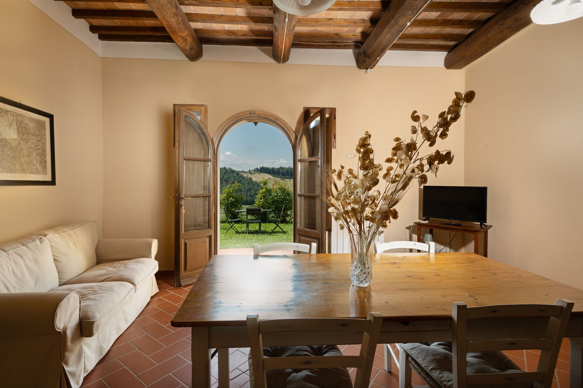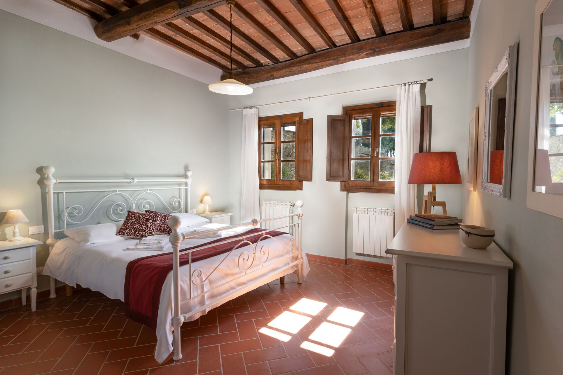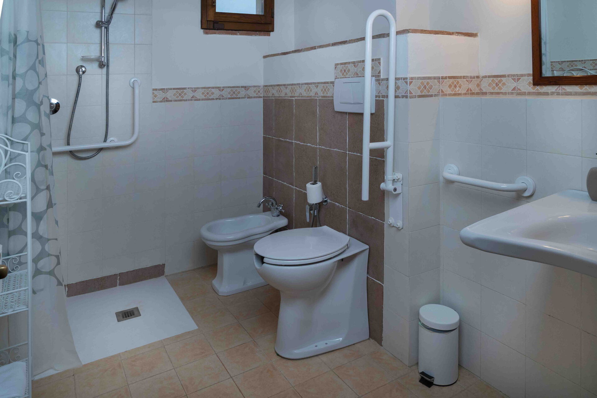 Egen ingång och trädgård, vardagsrum med matplats och kök (diskmaskin, ugn, frys, mikrovågsugn, kaffebryggare, brödrost, vattenkokare); 2 dubbelrum; 2 badrum med dusch