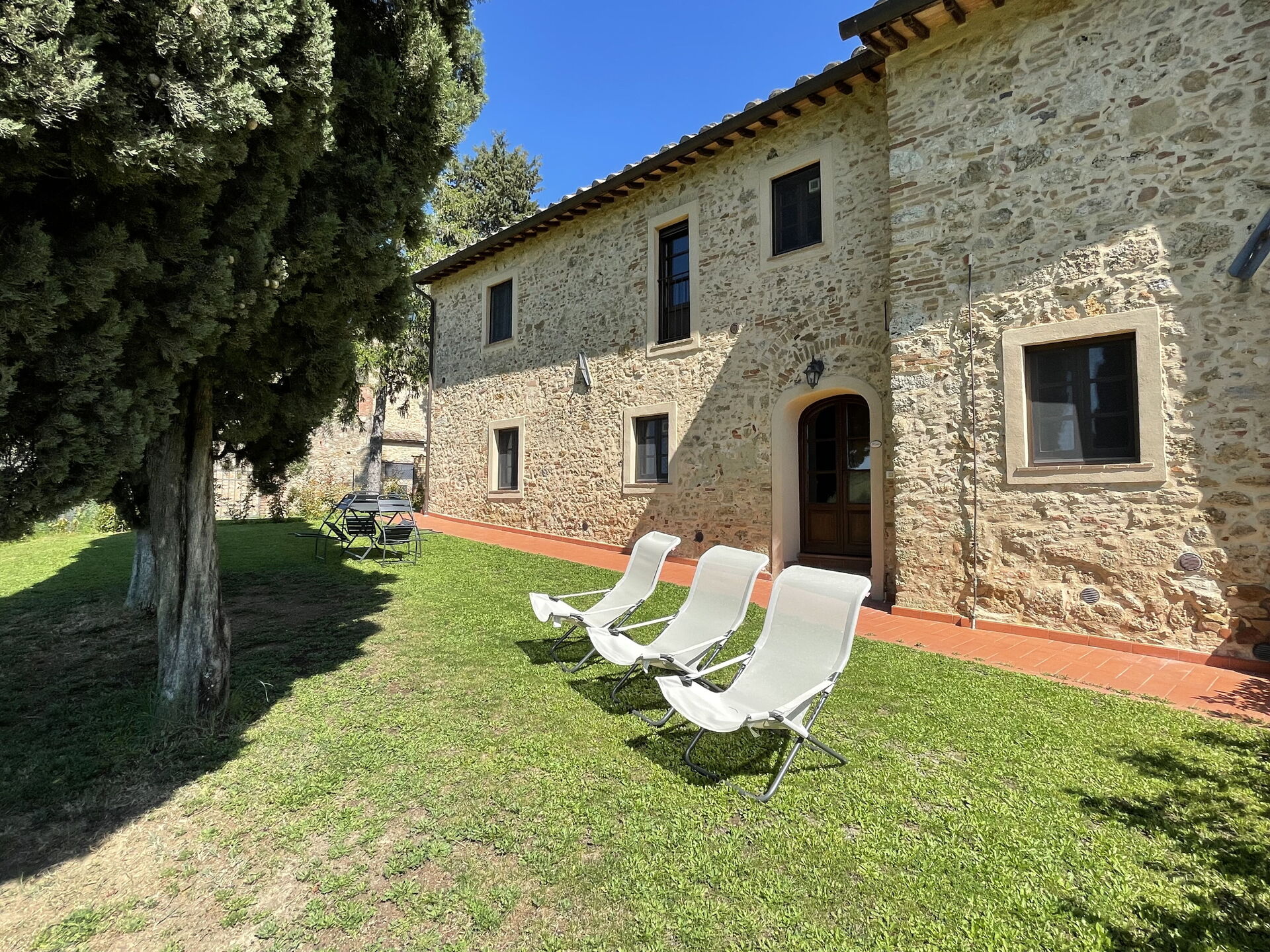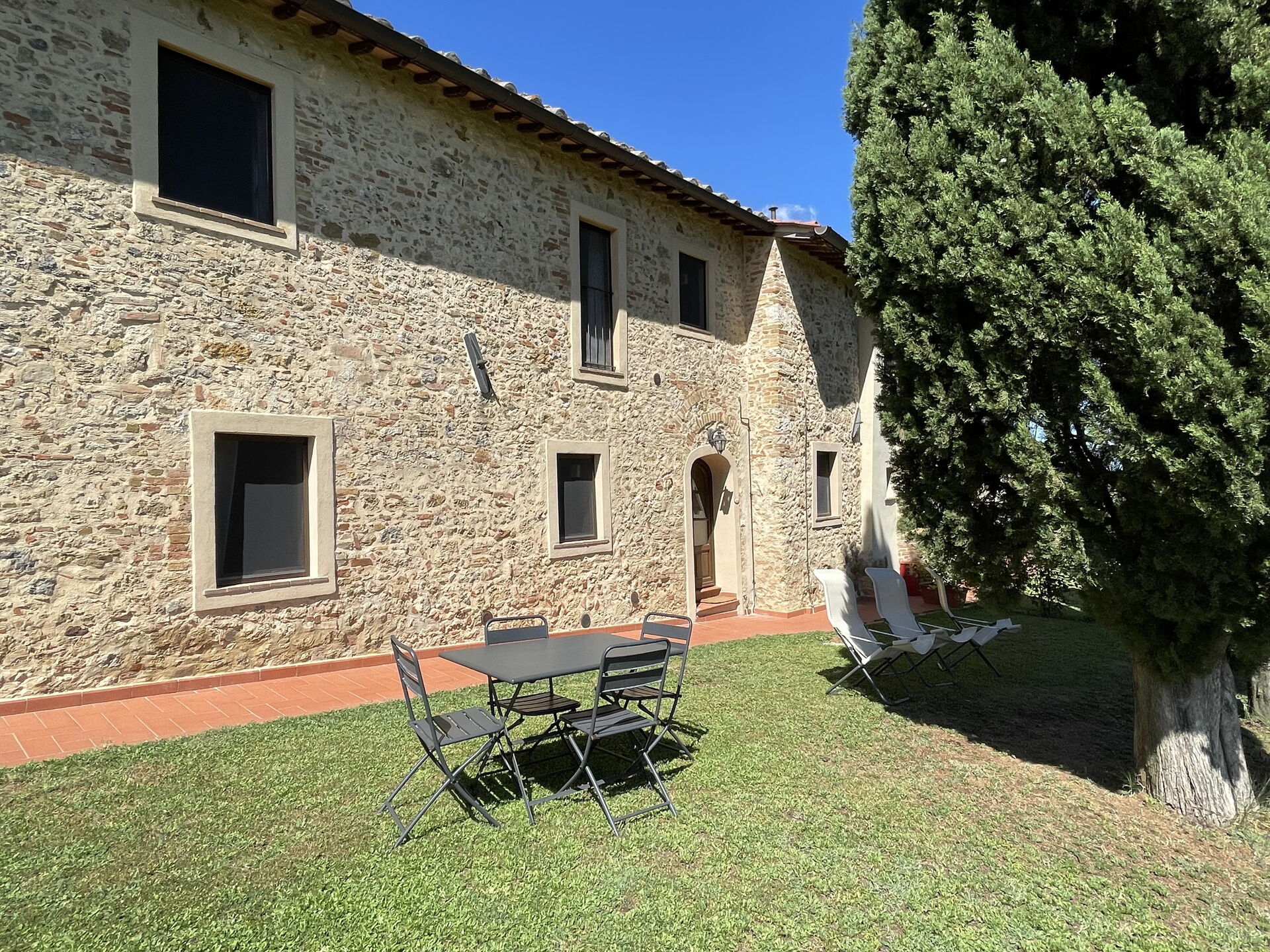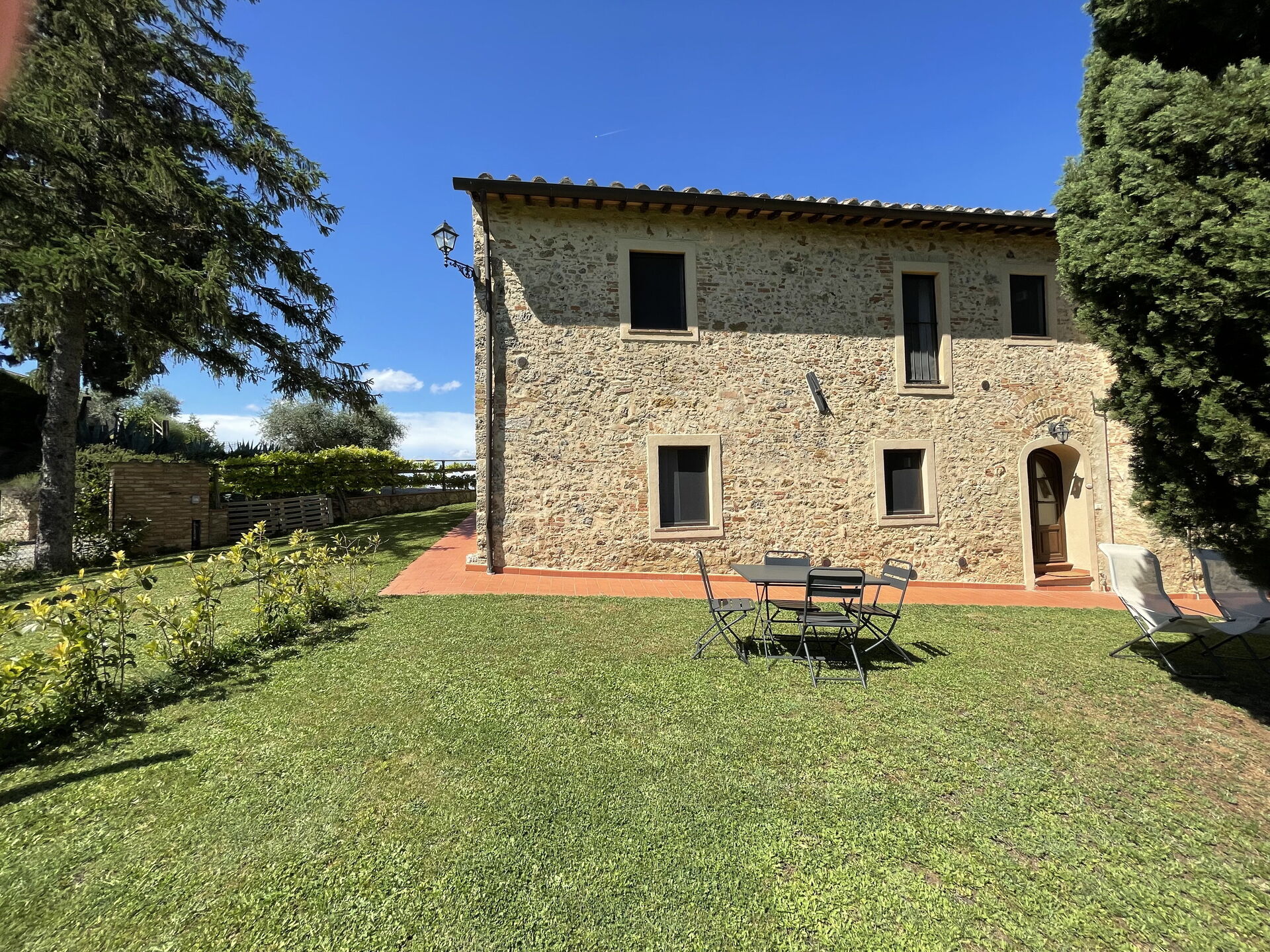 Egen ingång och trädgård, vardagsrum med matplats och kök (diskmaskin, ugn, frys, mikrovågsugn, kaffebryggare, brödrost, vattenkokare); sovrum med enkelsäng; badrum med dusch; 1 tvåbäddsrum; badrum med dusch