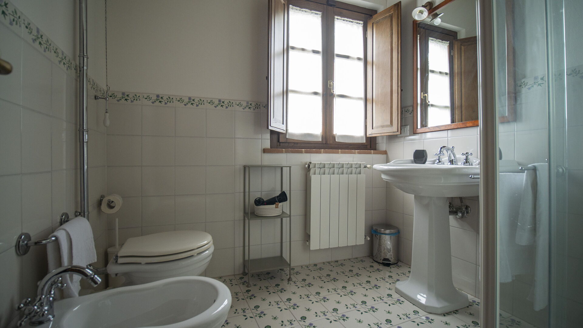 Utomhusområde utrustat med bord, stolar och grill, delat med lägenheterna Camino och Cipressi.