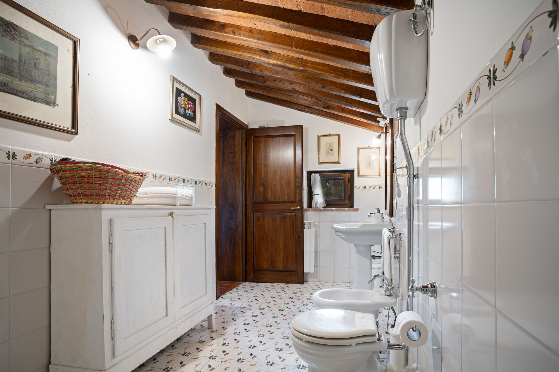 Förhöjd bottenvåning med gemensam ingång: vardagsrum med matplats och kök (diskmaskin, ugn, mikrovågsugn, frys, kaffemaskin, brödrost, vattenkokare), dubbelrum, badrum med dusch.