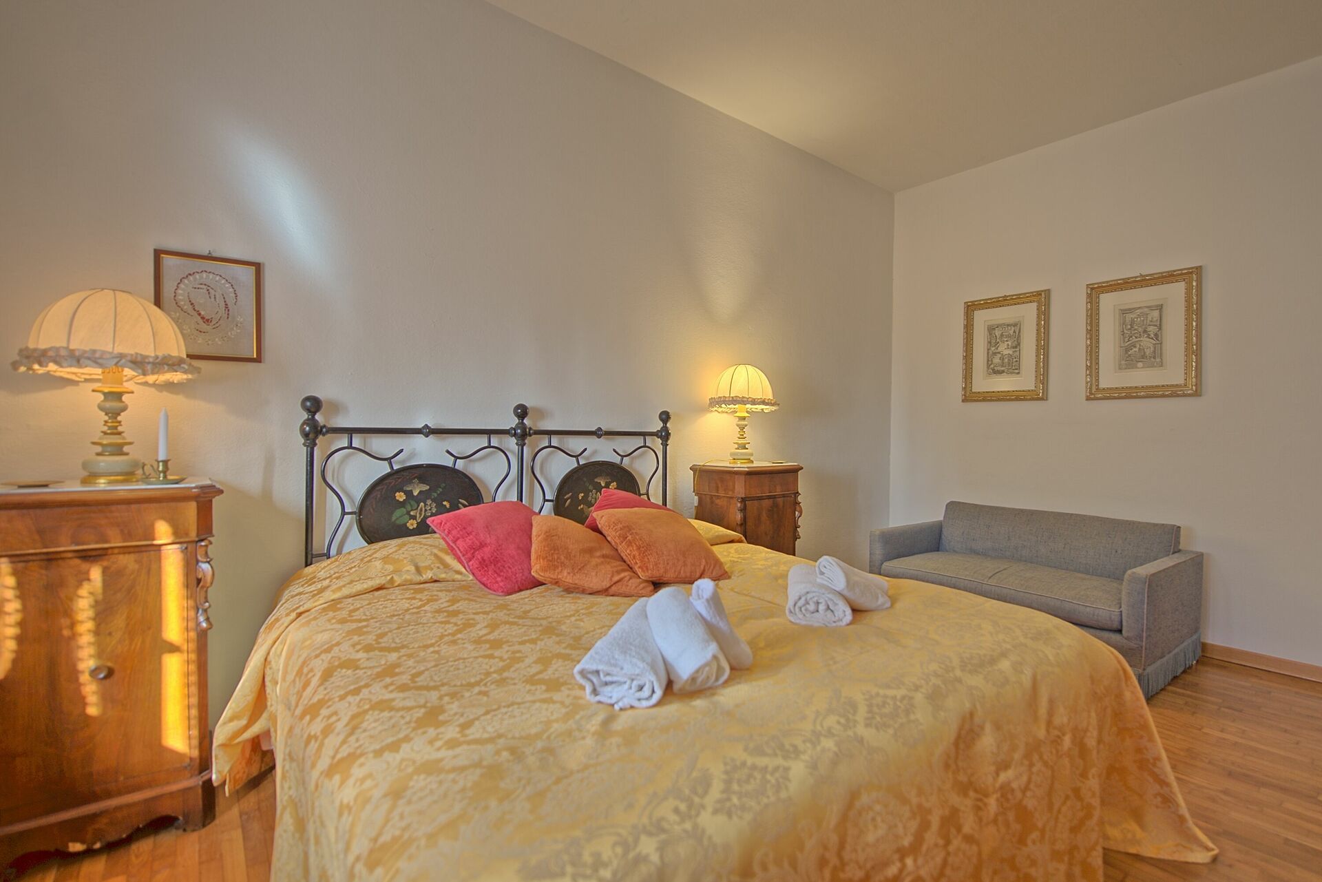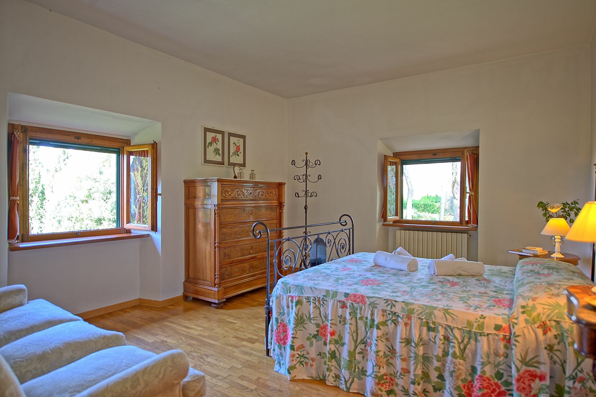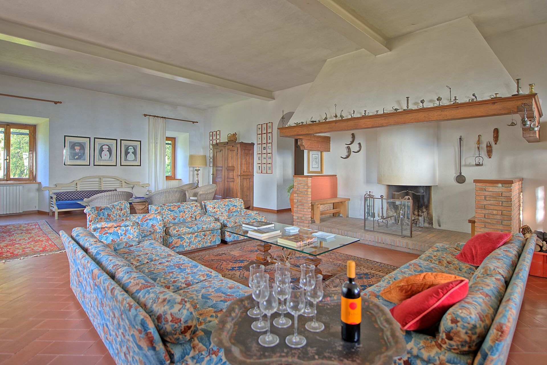 Villan är inredd i toskansk lantlig stil med gamla detaljer från 1800-talet som fresker som fortfarande syns på vissa väggar och tak.