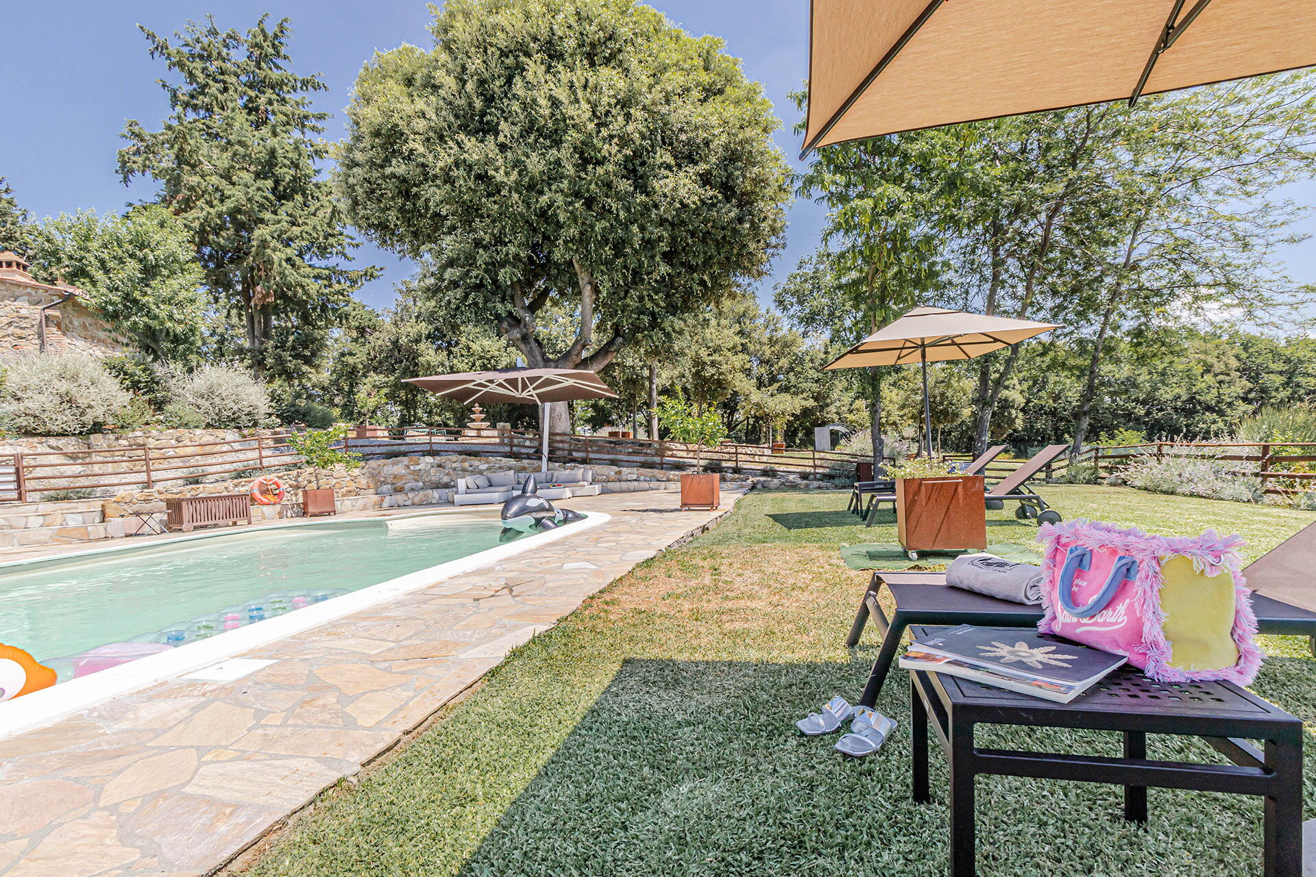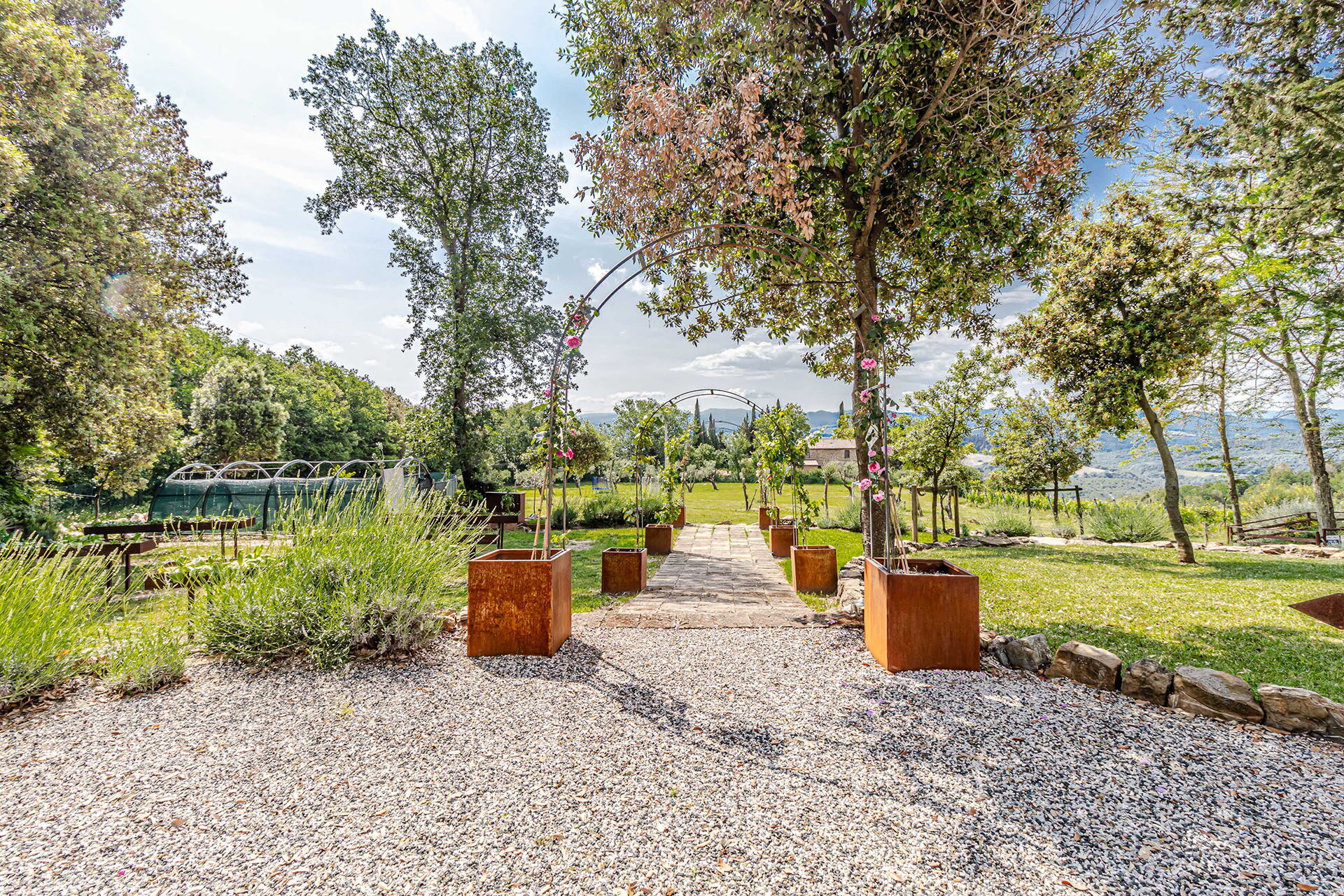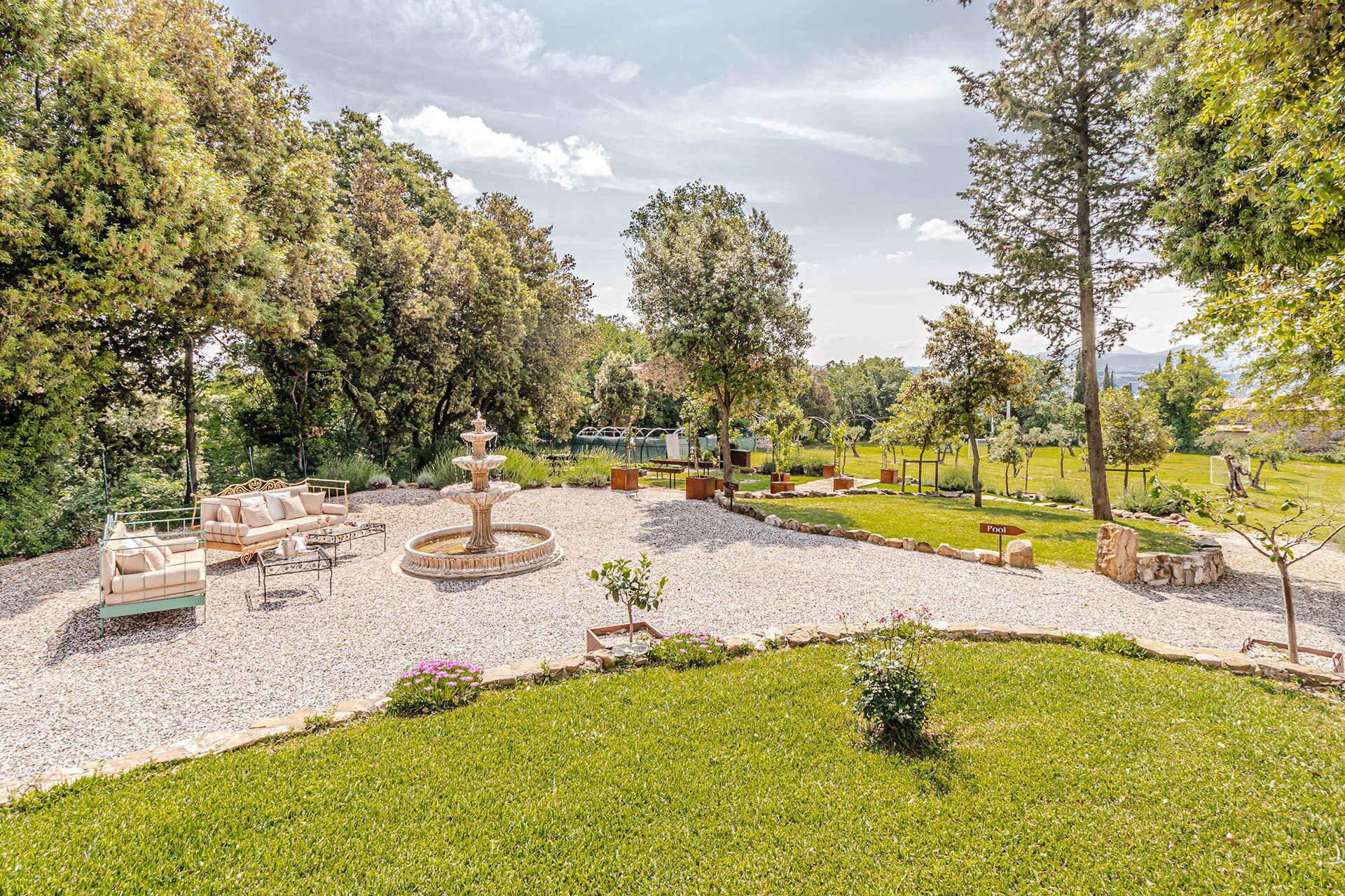 Semesterhuset ligger på en 20 hektar stor egendom med vingårdar, olivlundar och skog. Gästerna uppmuntras att njuta av slottets exceptionella viner under sin vistelse.
