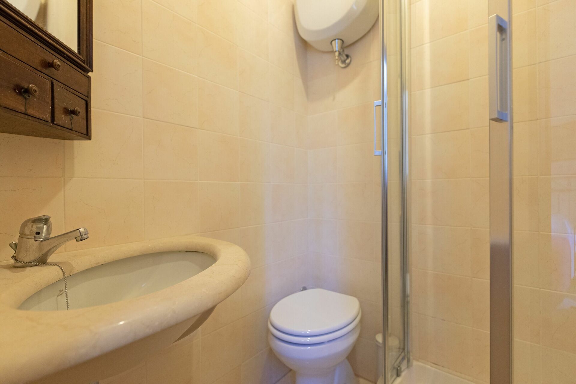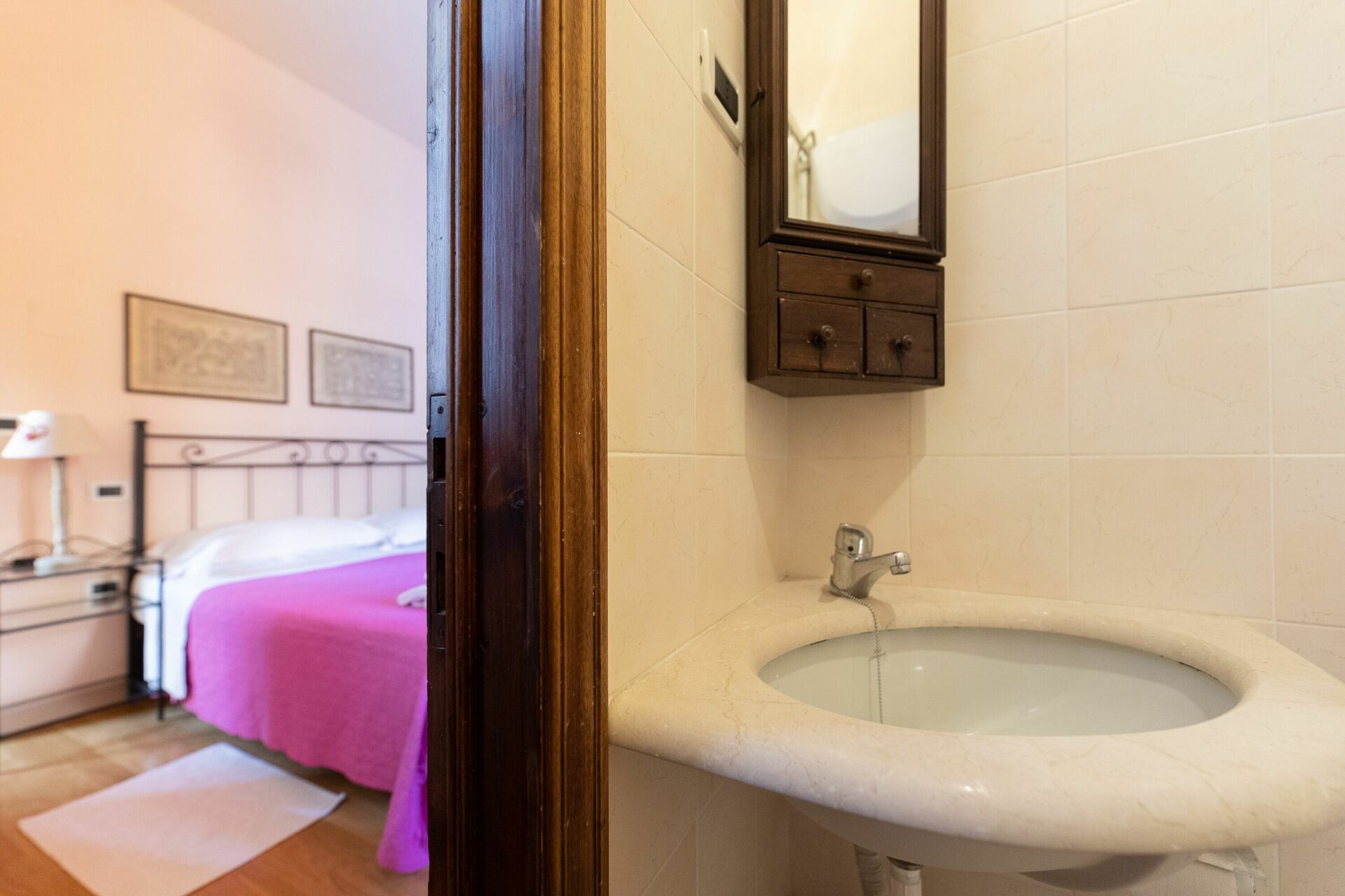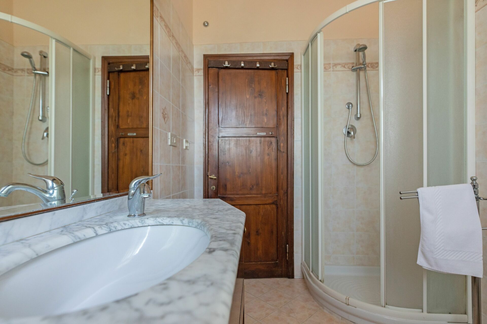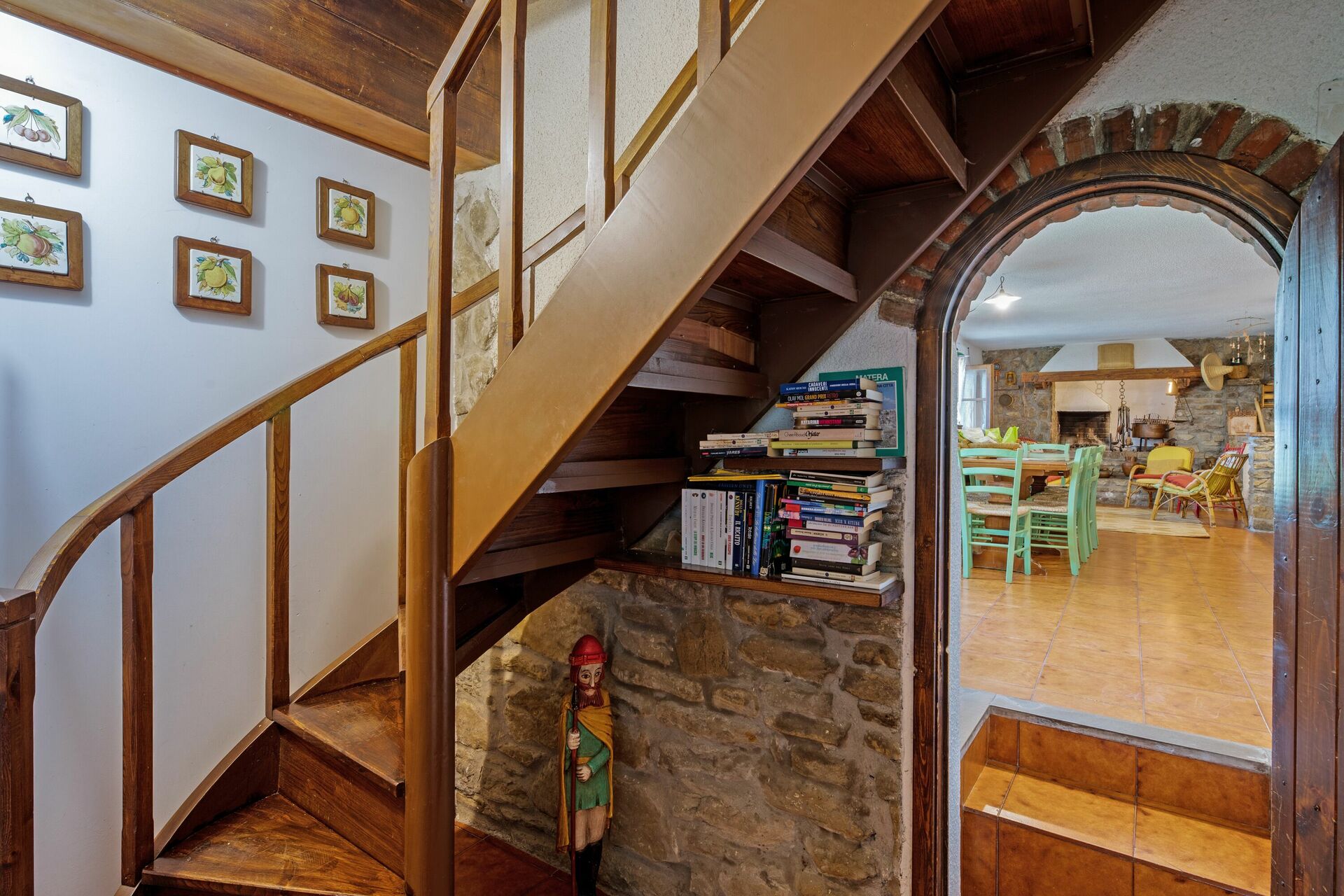 Första våningen (även tillgänglig från utsidan): vardagsrum; andra vardagsrum med TV och öppen spis; dubbelrum (luftkonditionering) med litet privat badrum med dusch; dubbelrum (luftkonditionering); badrum med dusch; sovrum (luftkonditionering) med dubbelsäng och enkelsäng.