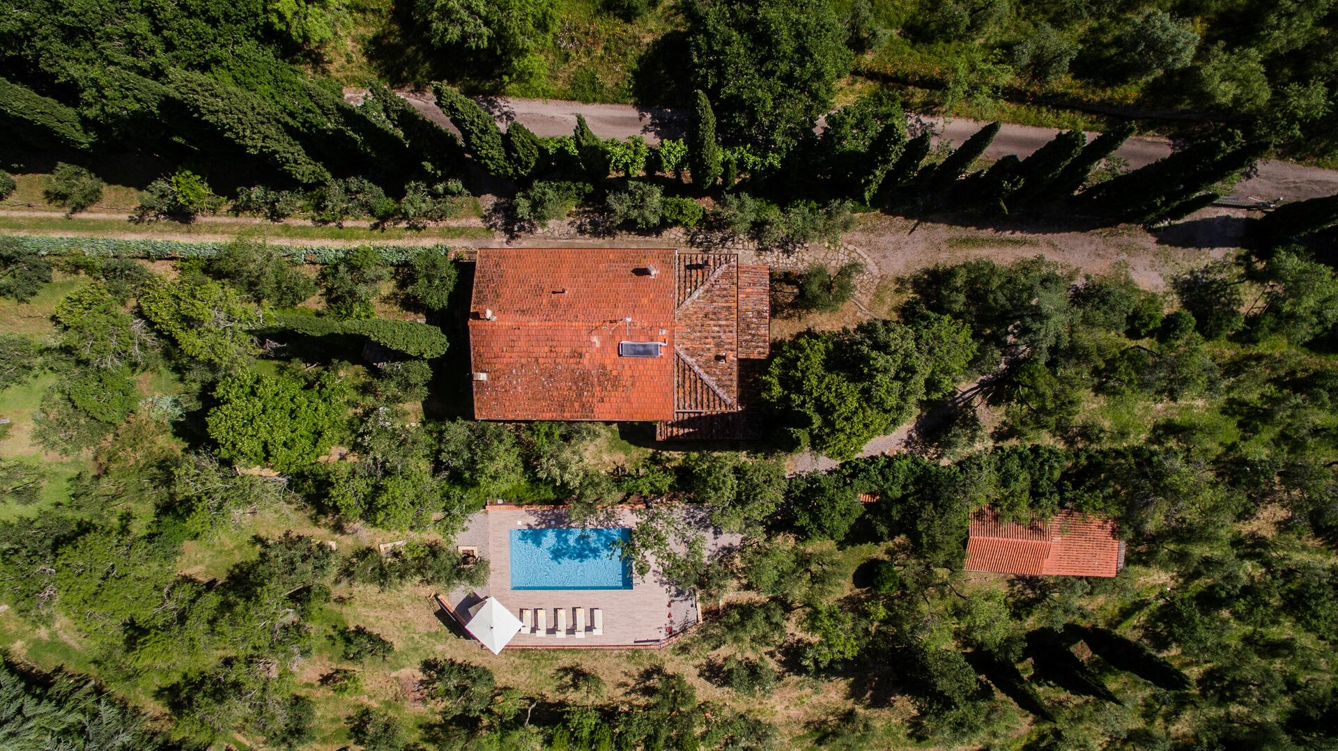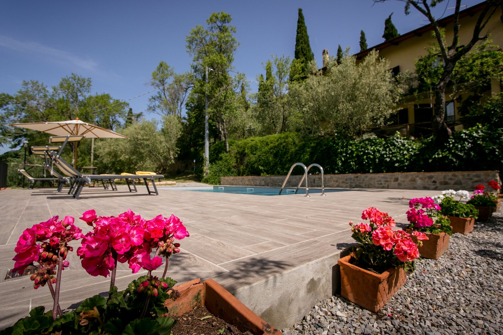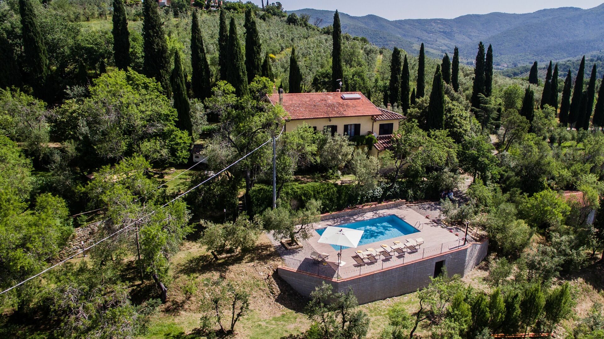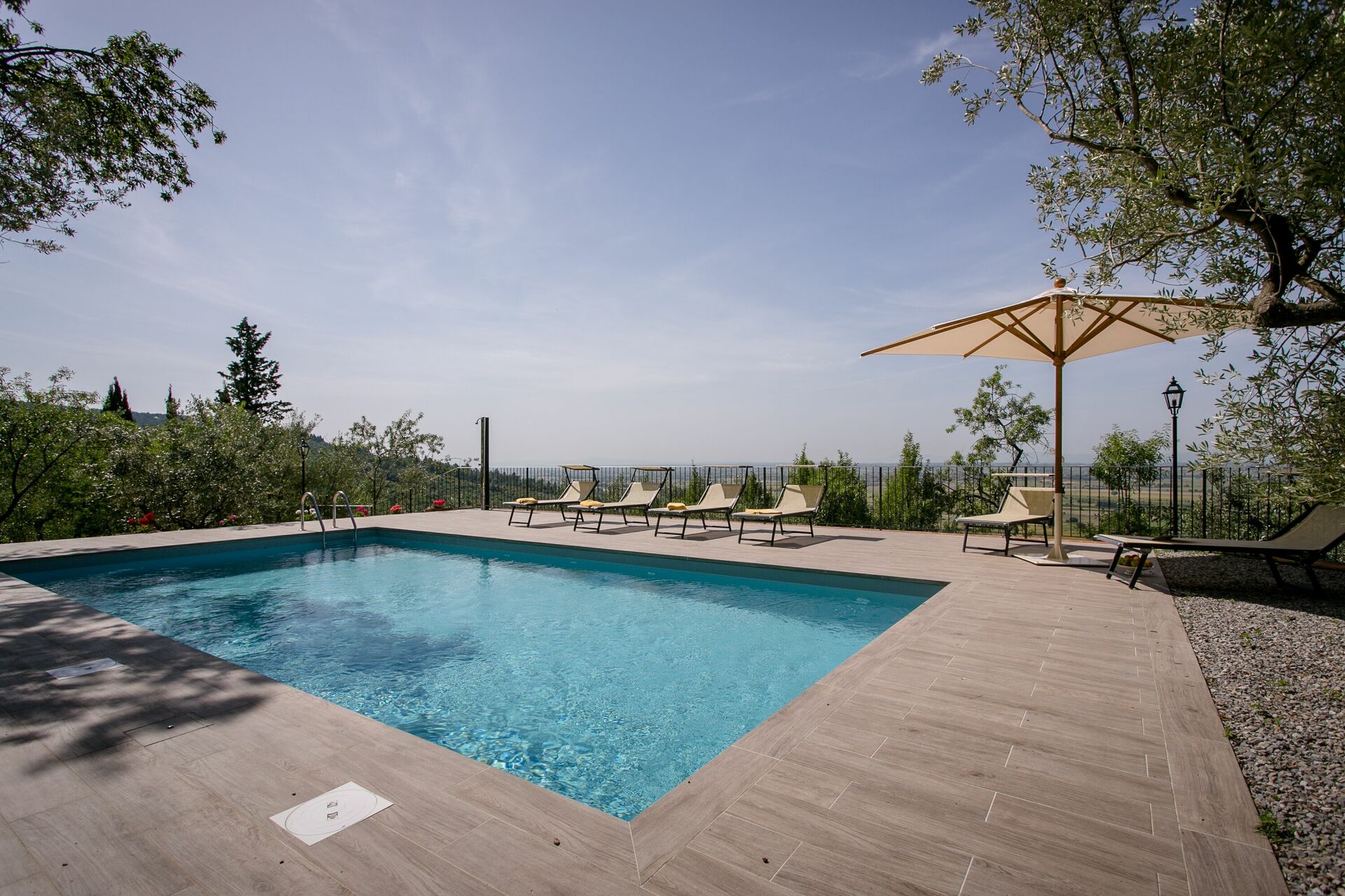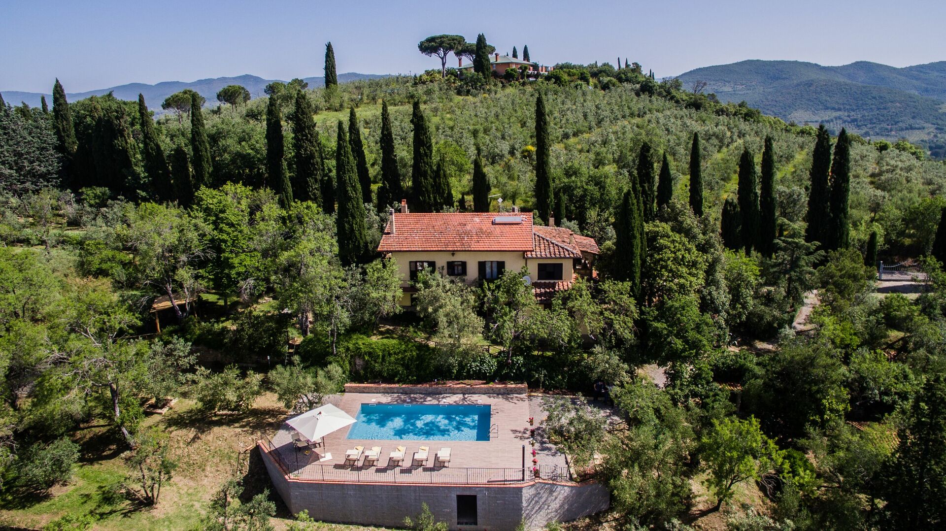 - privat, inhägnad pool (10 x 5 meter; djup: 1,40 meter) med panoramautsikt