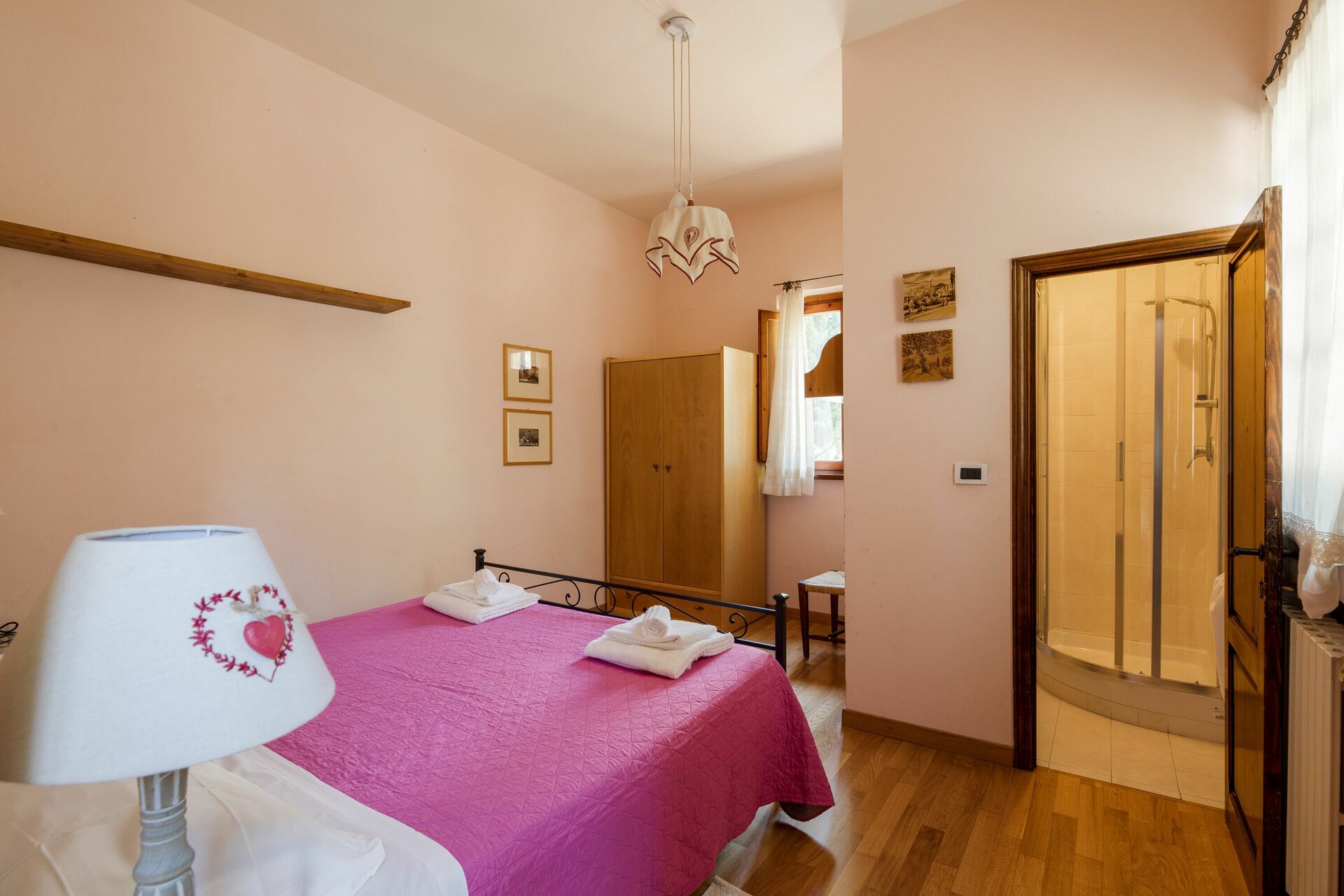 Med sina 4 sovrum sover Casale Condottiero bekvämt 9 personer för en avkopplande semester i Toscana. Detta rymliga huset är inrett i toskansk lantlig stil och erbjuder stora utomhusområden med panoramautsikt: från den privata inhägnad poolen har du utsikt över dalen nedanför. Fastigheten är perfekt för en semester med familjen eller en grupp vänner.