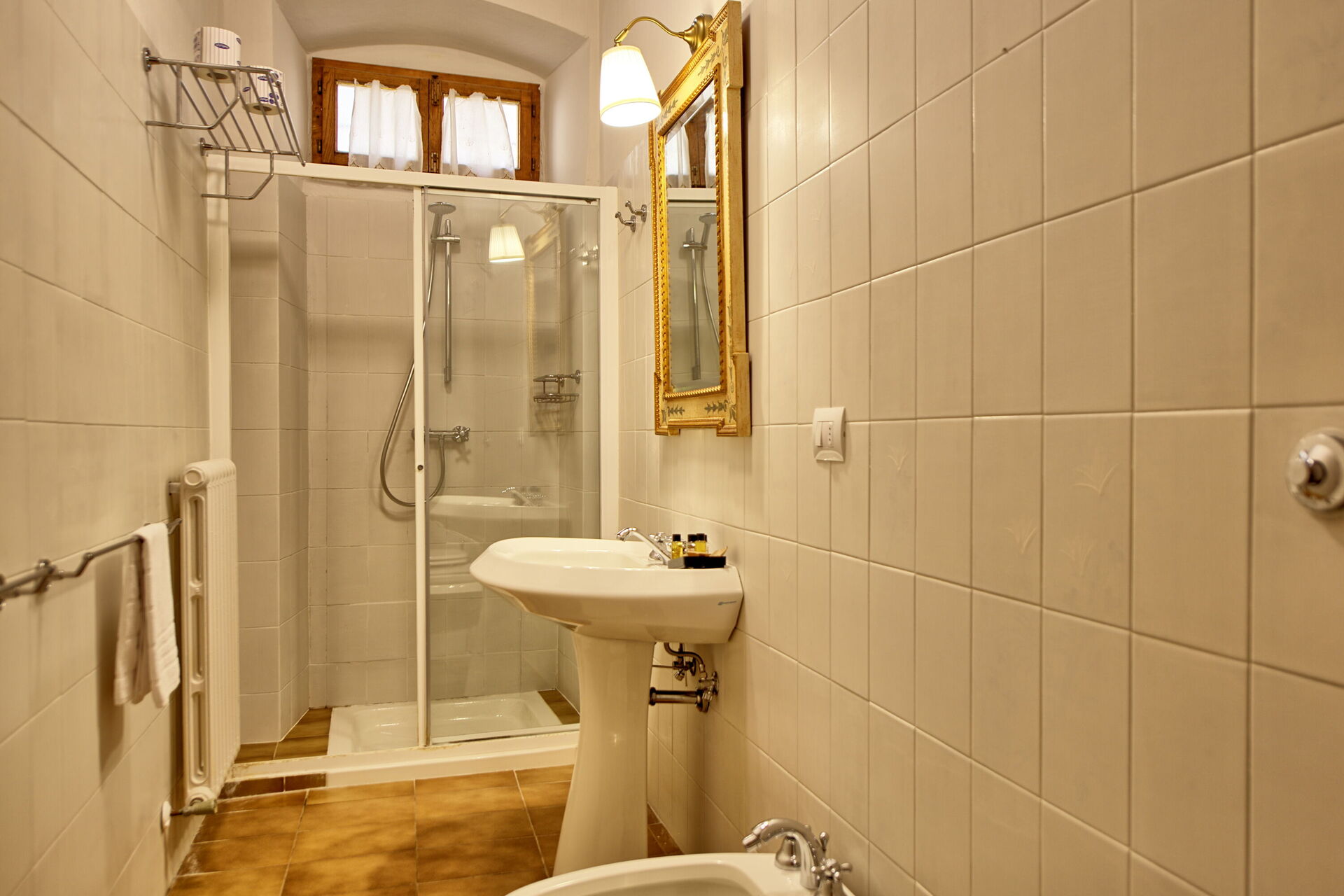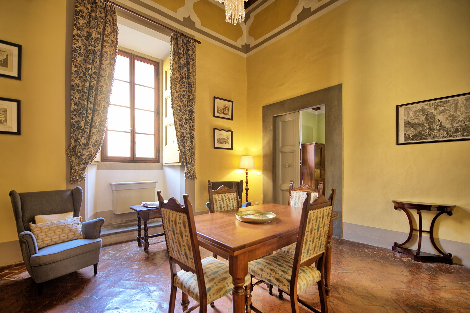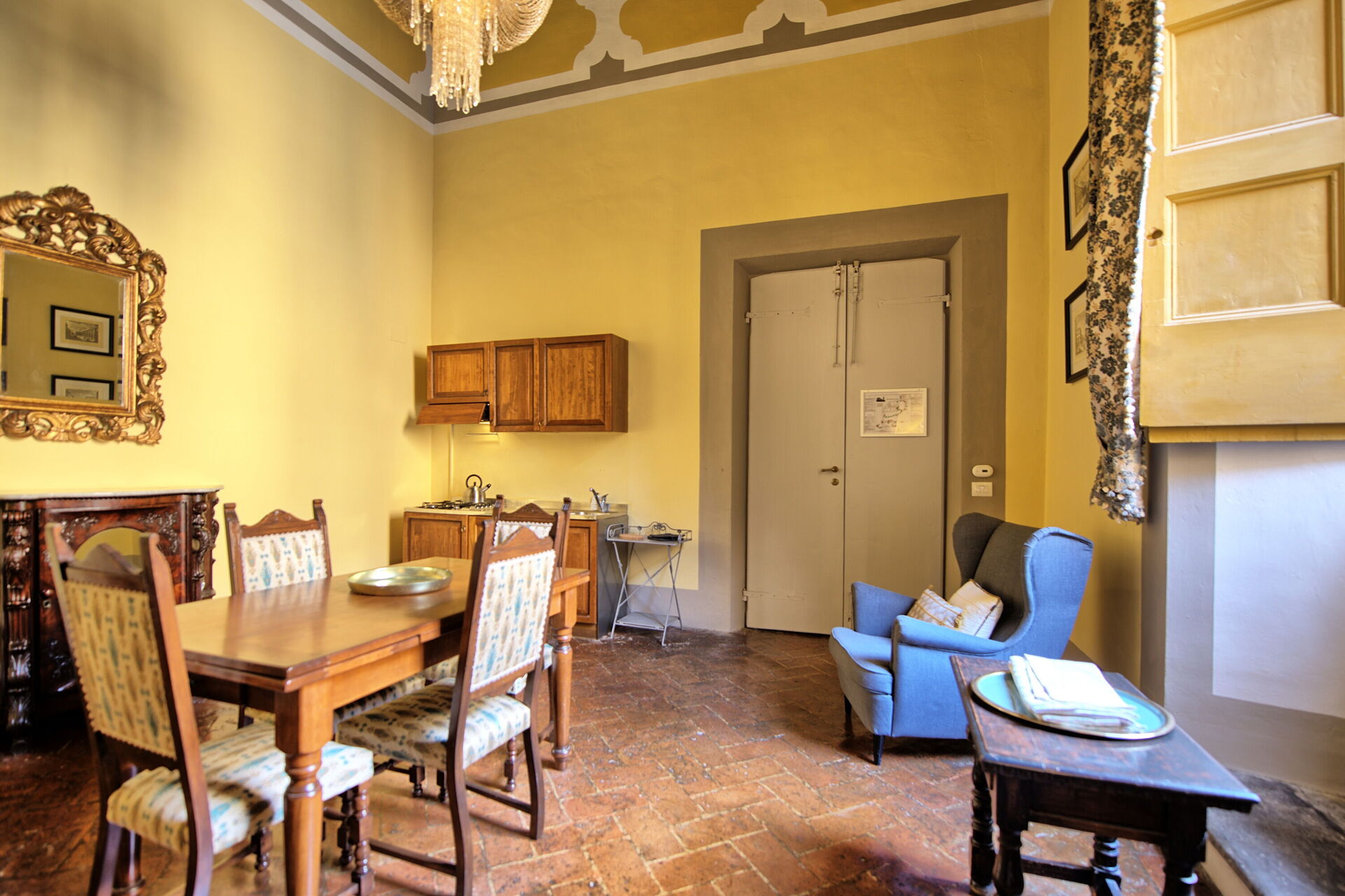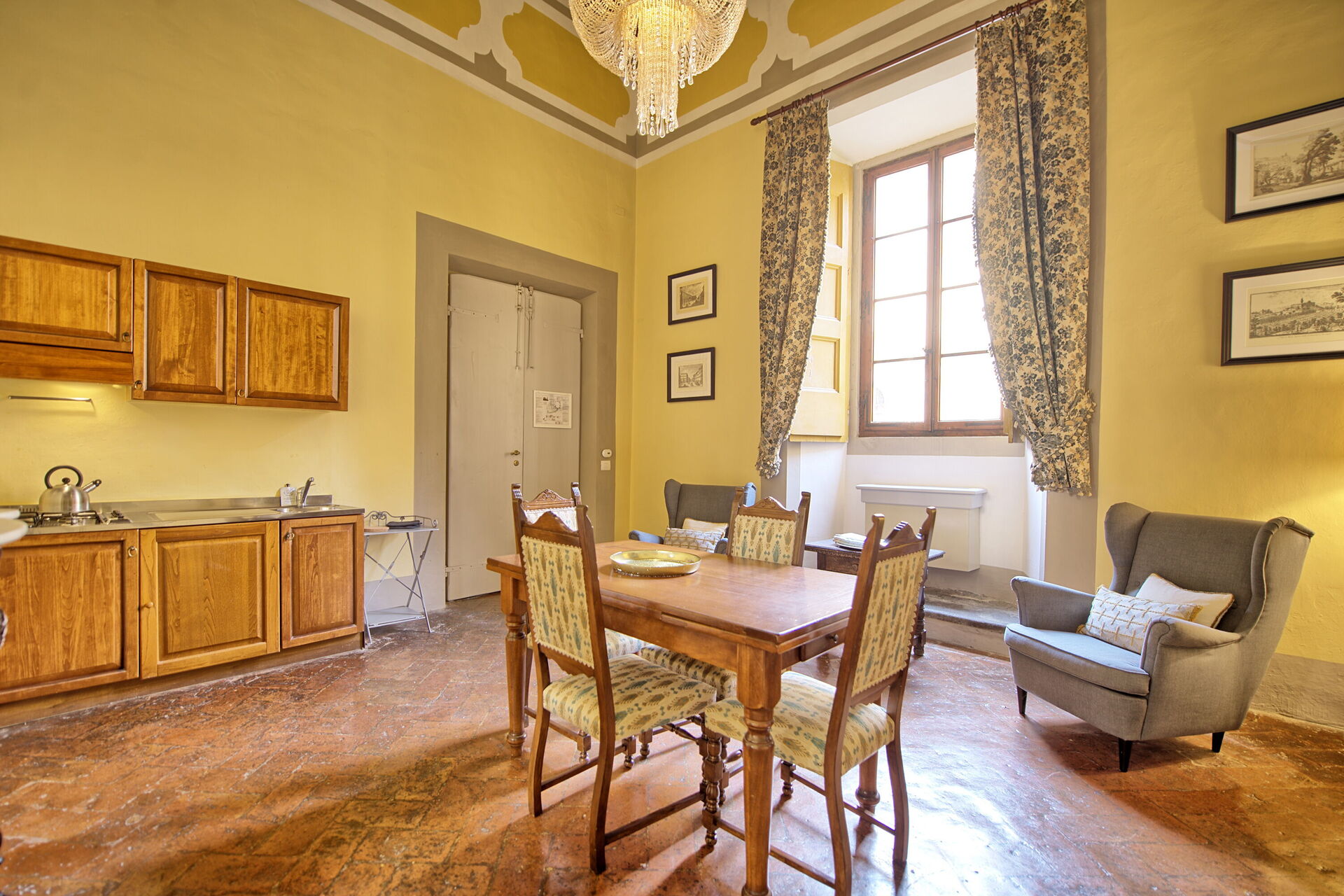 The experience in the Montegufoni castle is really authenthic. The surrounding scenery is just breathtaking nature, as there is a nice 4.5km circular path around the wineyards, clear hills and occasional farm houses, great for walks. There is a nice secluded pool, and a couple of different areas of the castle which were great for chilling out, reading a book or just enjoying the sun. There is a restaurant/bar which works only in the evening, but there were some close local trattorias and wineries a couple of kilometers around. We had an appartment with a fully functioning kitchen (with gas stoves, pots, cutlerry and even mocca pot), so we could prepare meals and coffee for chilling at the terrace. You definitively need a car for this location, as the closest supermarket is in a village 5km from the castle, and nothing is provided in the appartment (we had to buy additional toilet paper, olive oil and coffee). The receptionists and workers were pleasent and helpful.