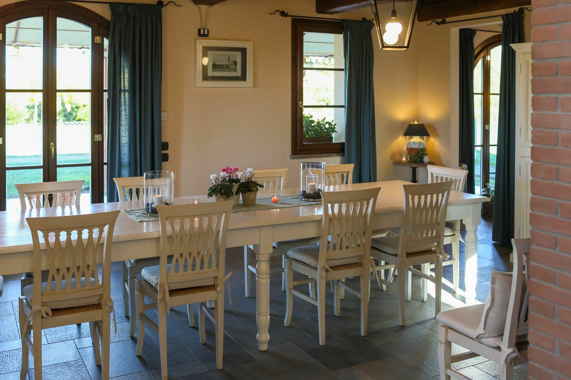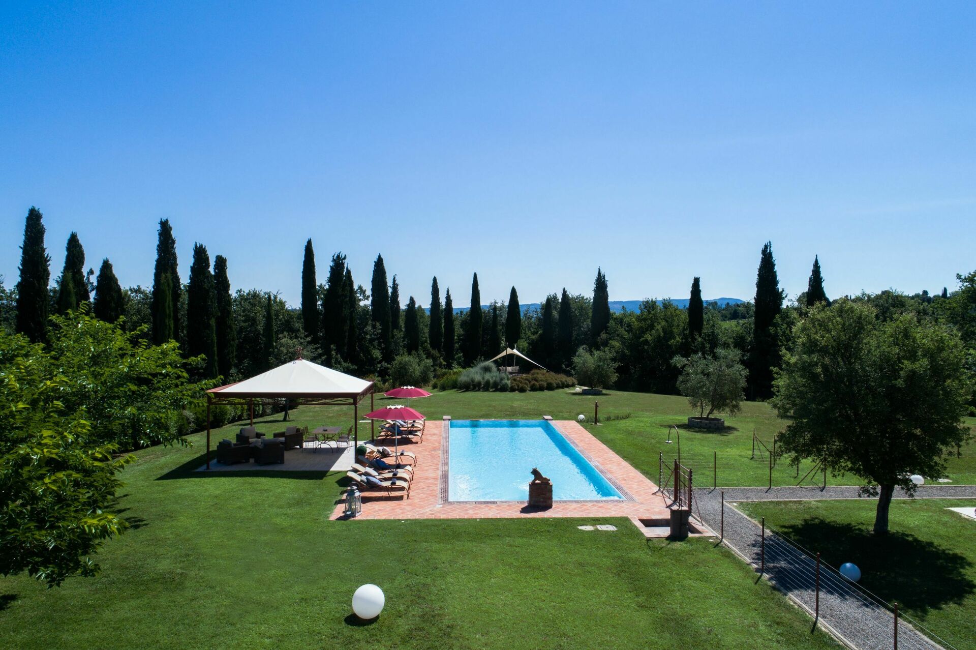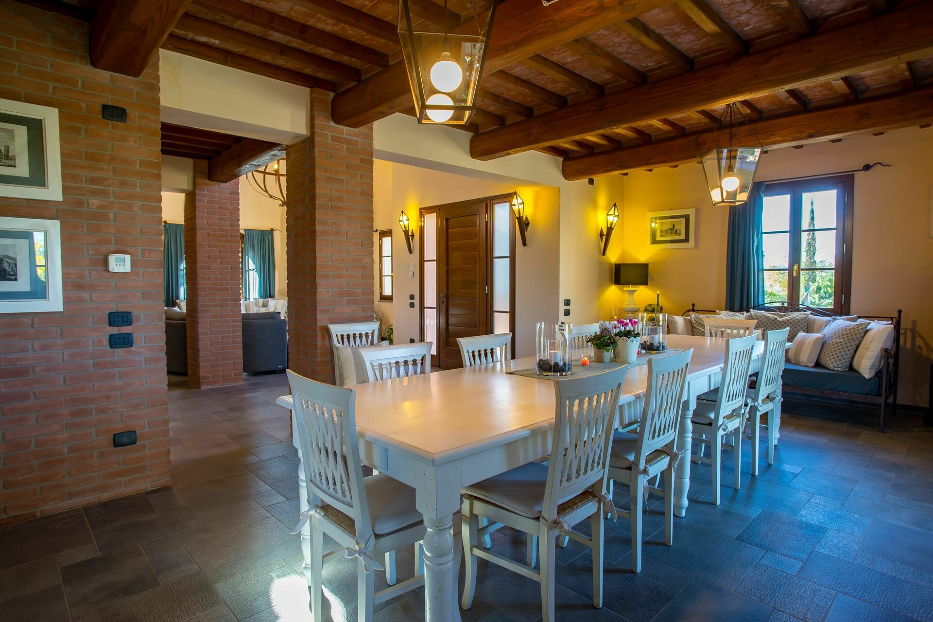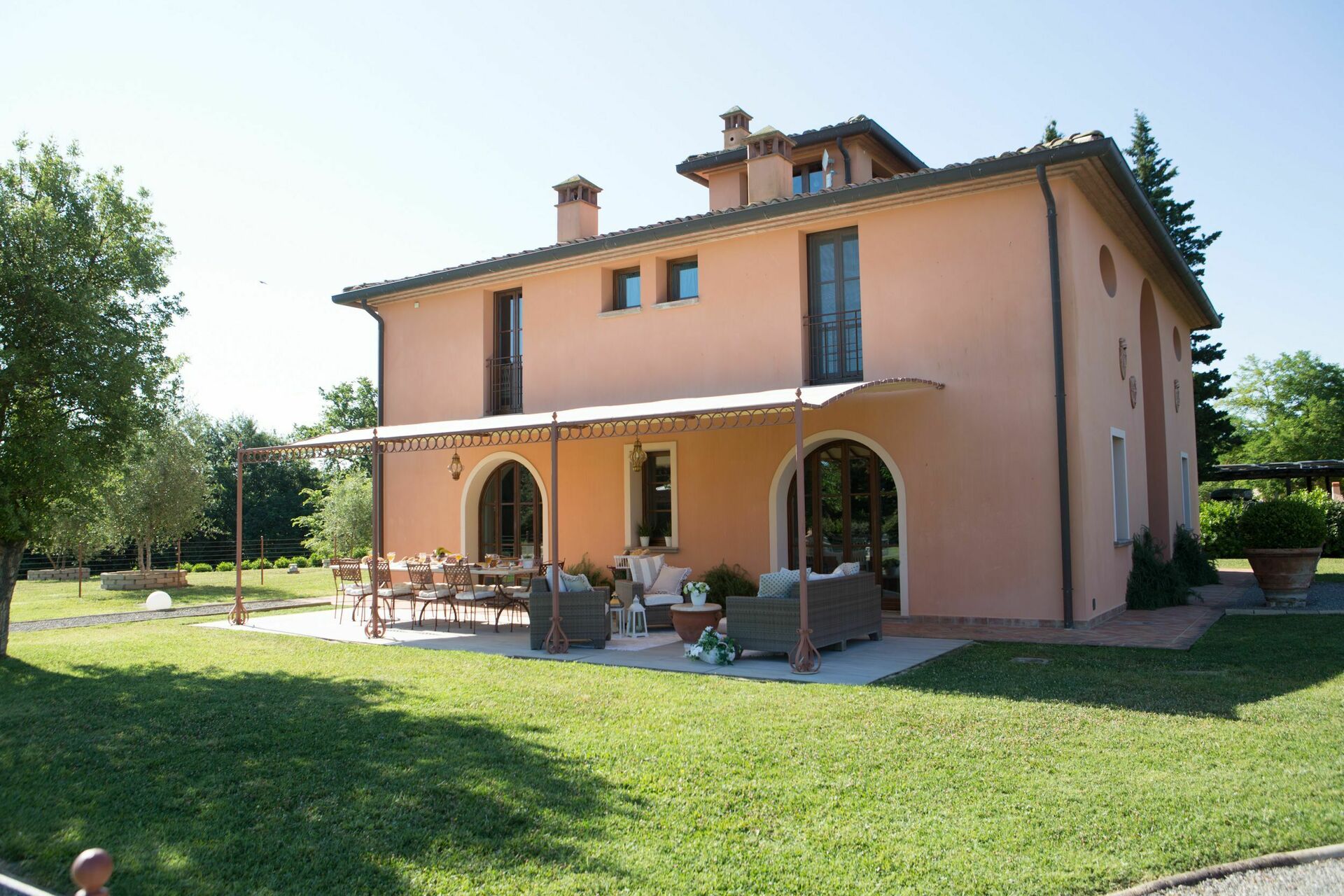 We were a party of 8 (four couples) and this Villa was fantastic!! It exceeded our expectations. The photos represent the villa perfectly. It was very clean and beautifully decorated. Appliances worked very well. We loved sitting out by the pool in the evening. The owners were very welcoming and made sure that we had everything that we needed. They were very helpful and arranged a wonderful dinner for us at a local restaurant. It was situated very well for day trips to Pisa, Firenze, Volterra, San Gimi, Sienna etc. Save time to enjoy this property though!!