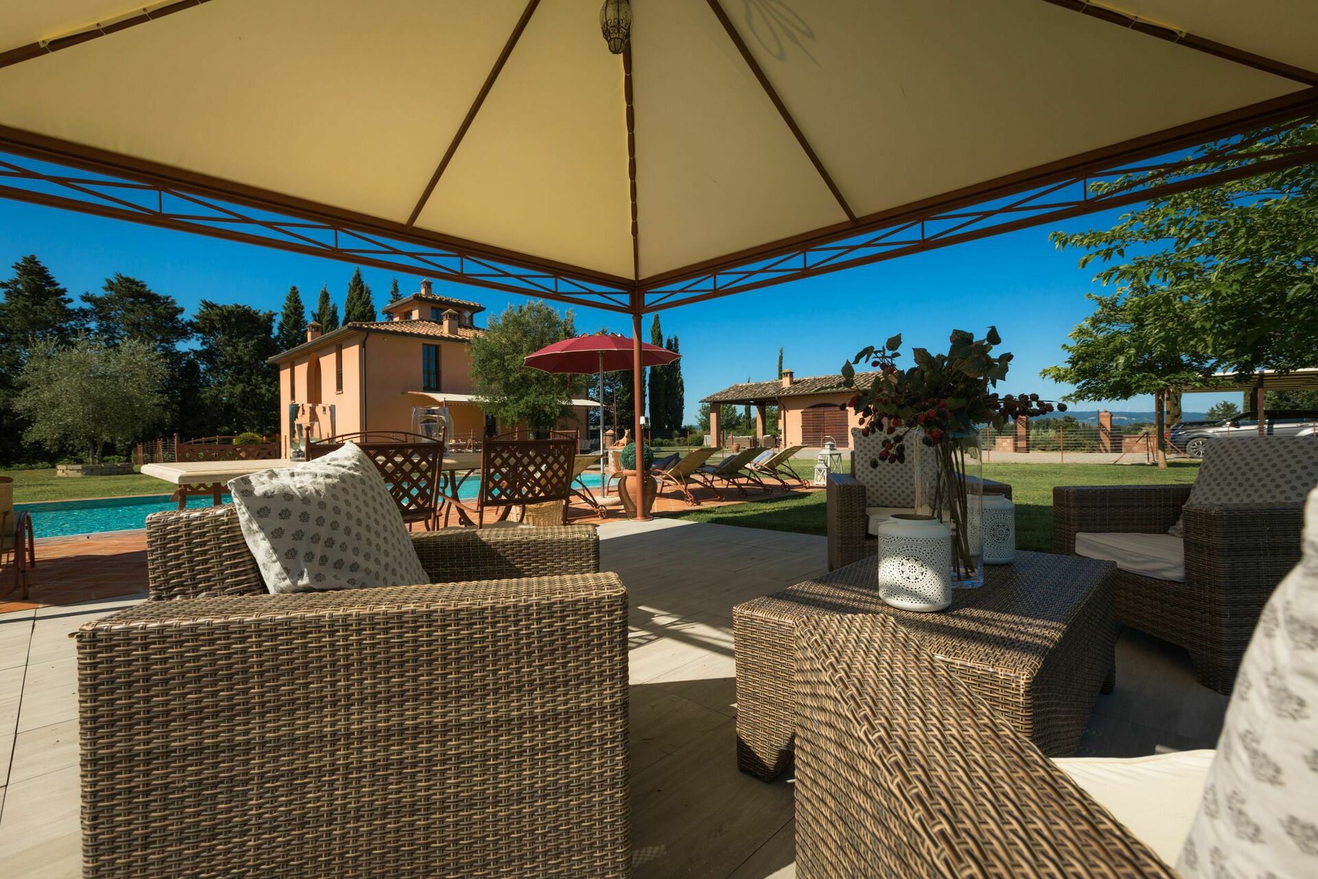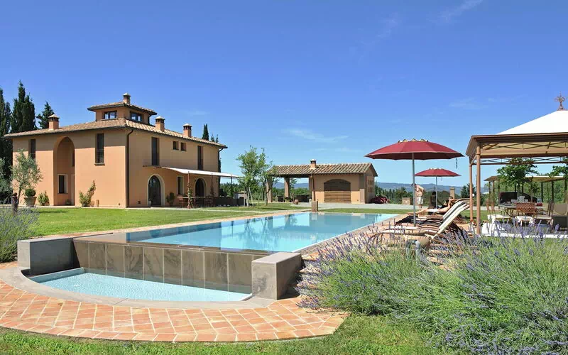 Vacker fristående semesterhus med privat pool som ligger på kullarna mellan Volterra, San Gimignano och Pisa i Toscana. Fastigheten har nyligen restaurerats och man har bevarat de ursprungliga arkitektoniska detaljerna medan alla moderna bekvämligheter forfarande finns. Trädgården kring villan är välskötta och har en fin pool med jacuzzi-område, perfekt för att slappna av och njuta av lugnet på den toskanska landsbygden. Platsen är en utmärkt bas för att besöka några av de mest charmerande städerna i Toscana som Pisa, Lucca, San Gimginano och den vakcra kusten.