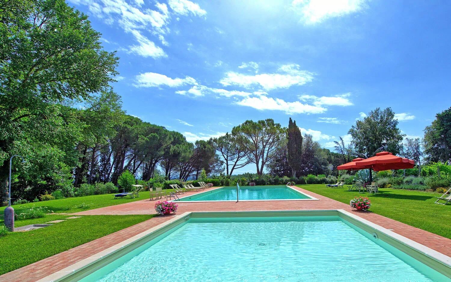 Fastigheten är omgiven av en fin park och erbjuder lugn och panoramautsikt. Poolområdet ligger i en upphöjd position i förhållande till huset. Villan har nyligen renoverats med de ursprungliga arkitektoniska detaljer är bevarade och förvandlats till en snyggt landställe med 10 sovrum fördelad på 3 våningar. Interiören är smakfullt och huset inredd i en rustik stil.