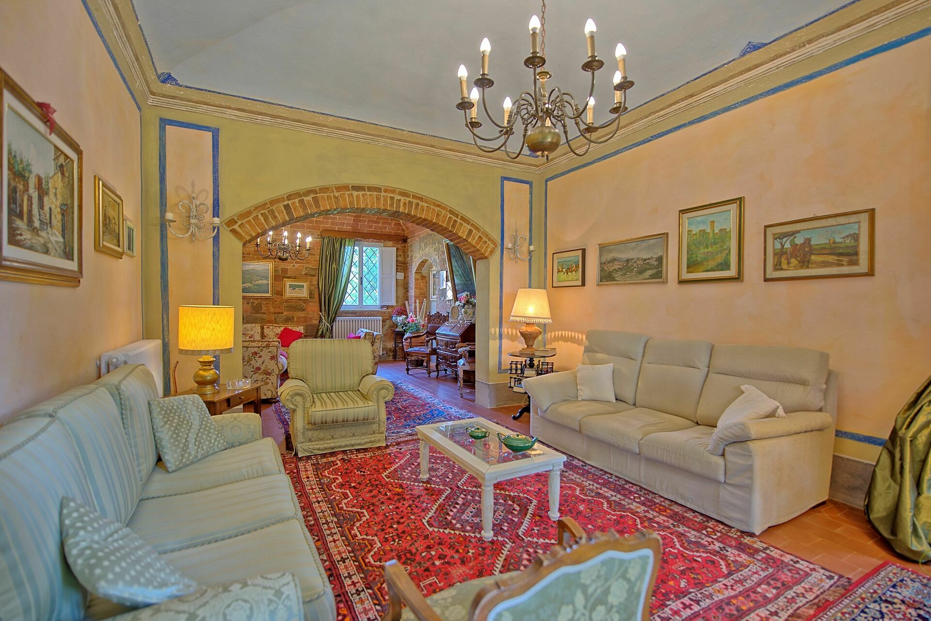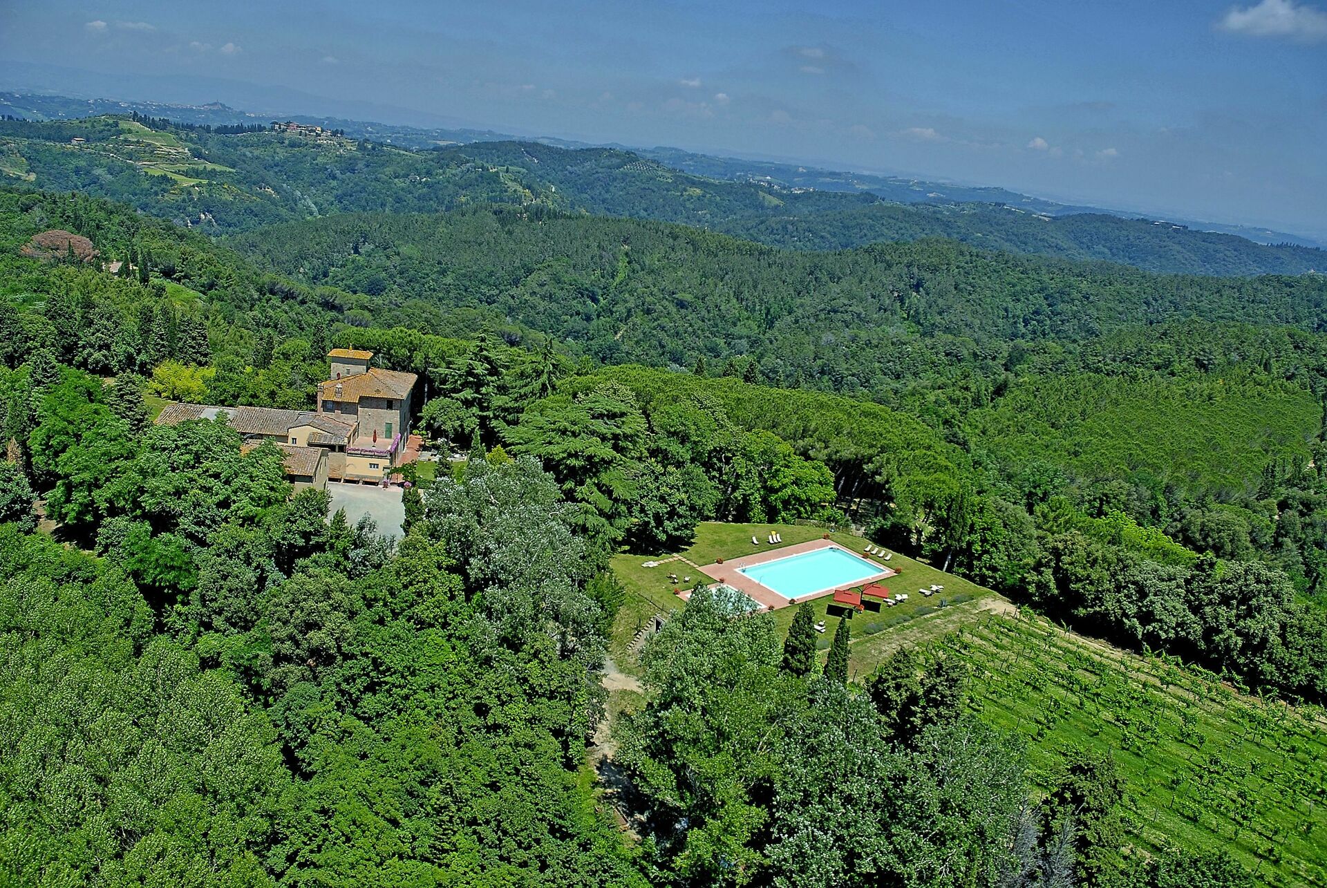 Imponerande herrgård med anor från år 700 som ligger på en stor gård på de toskanska kullarna, med vackra skogar, olivlundar och vingårdar som producerar utmärkta vin och olivolja.