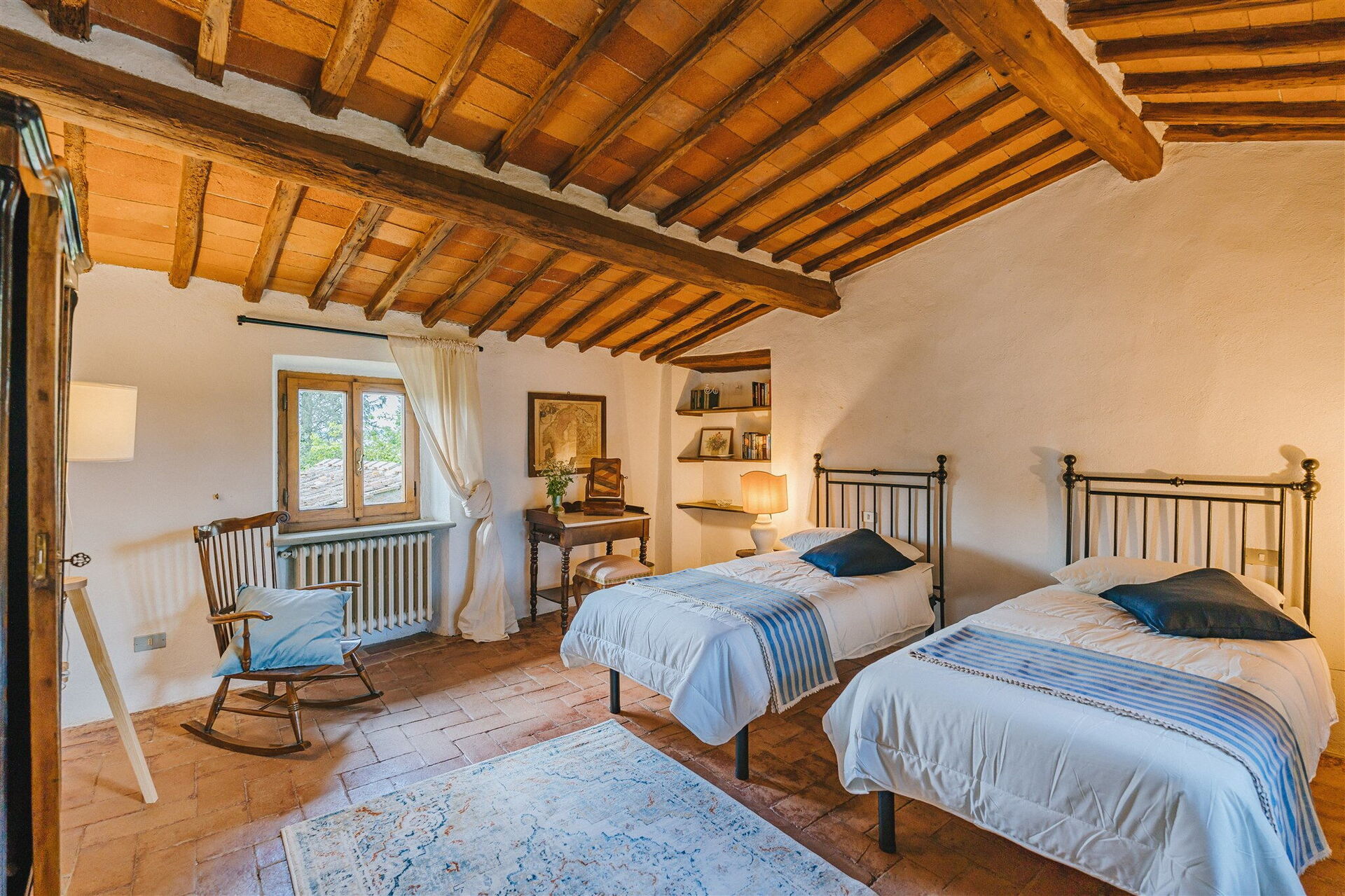 Första våningen: vardagsrum, dubbelrum, sovrum med 2 enkelsängar, badrum med badkar.