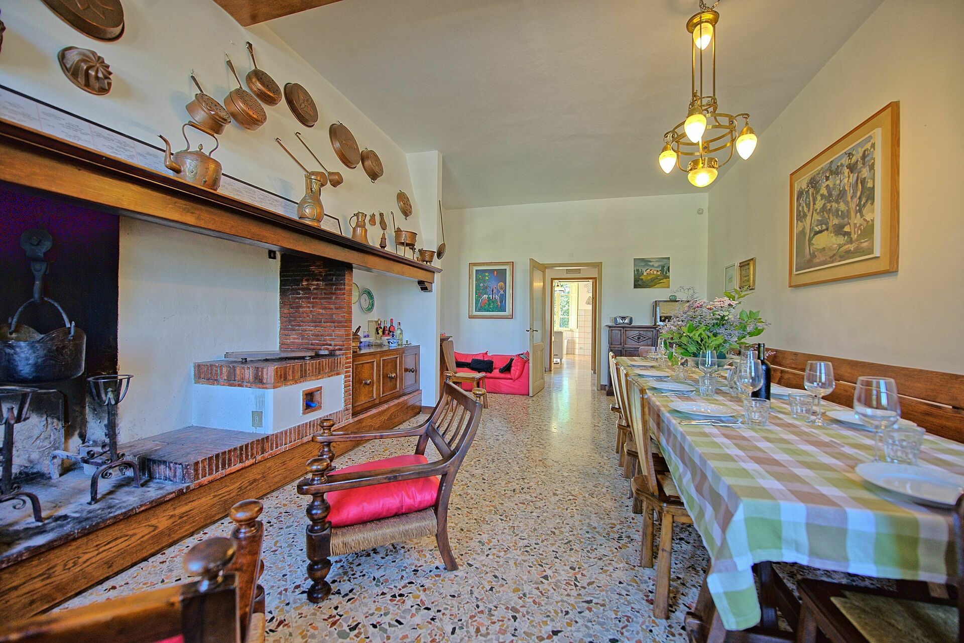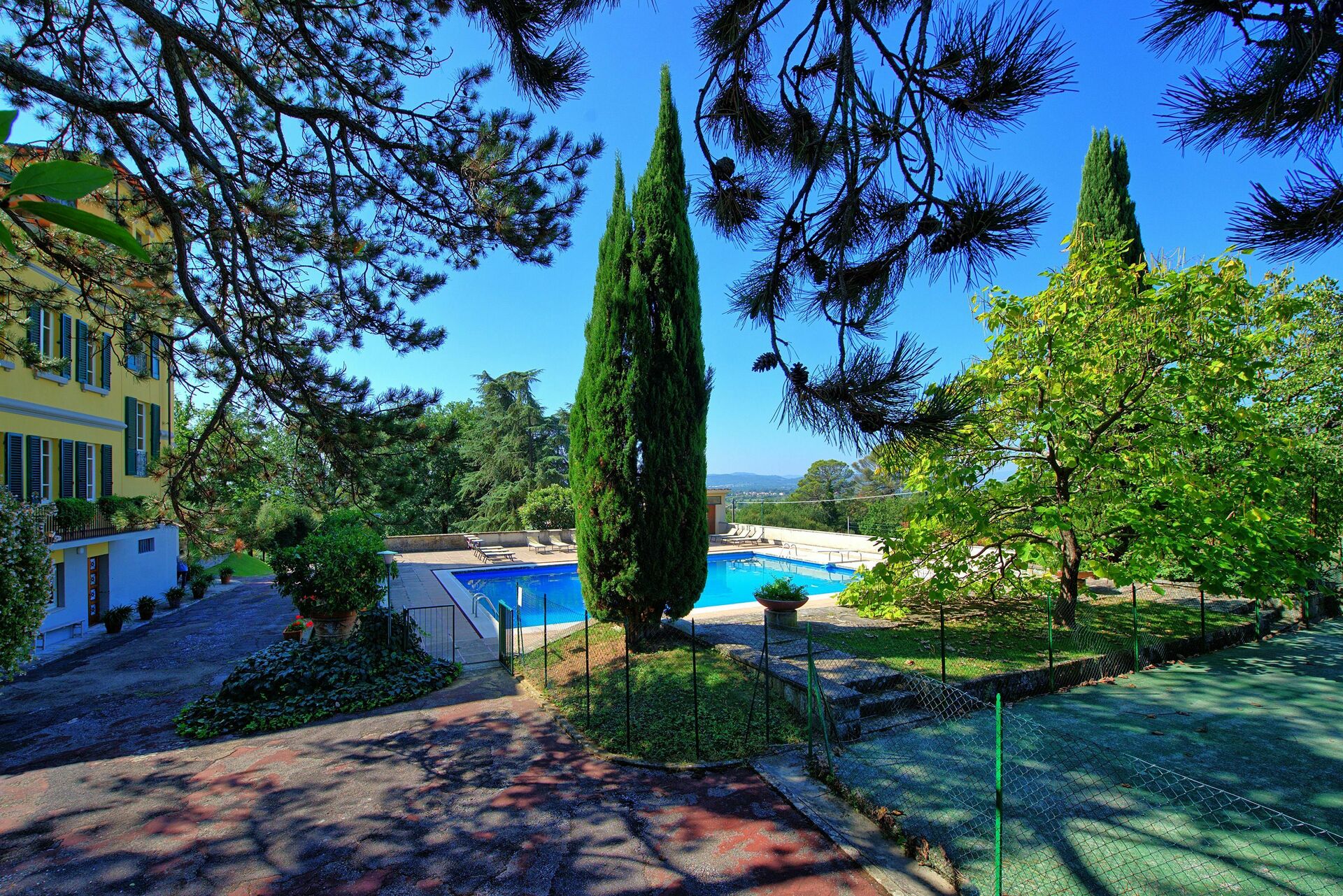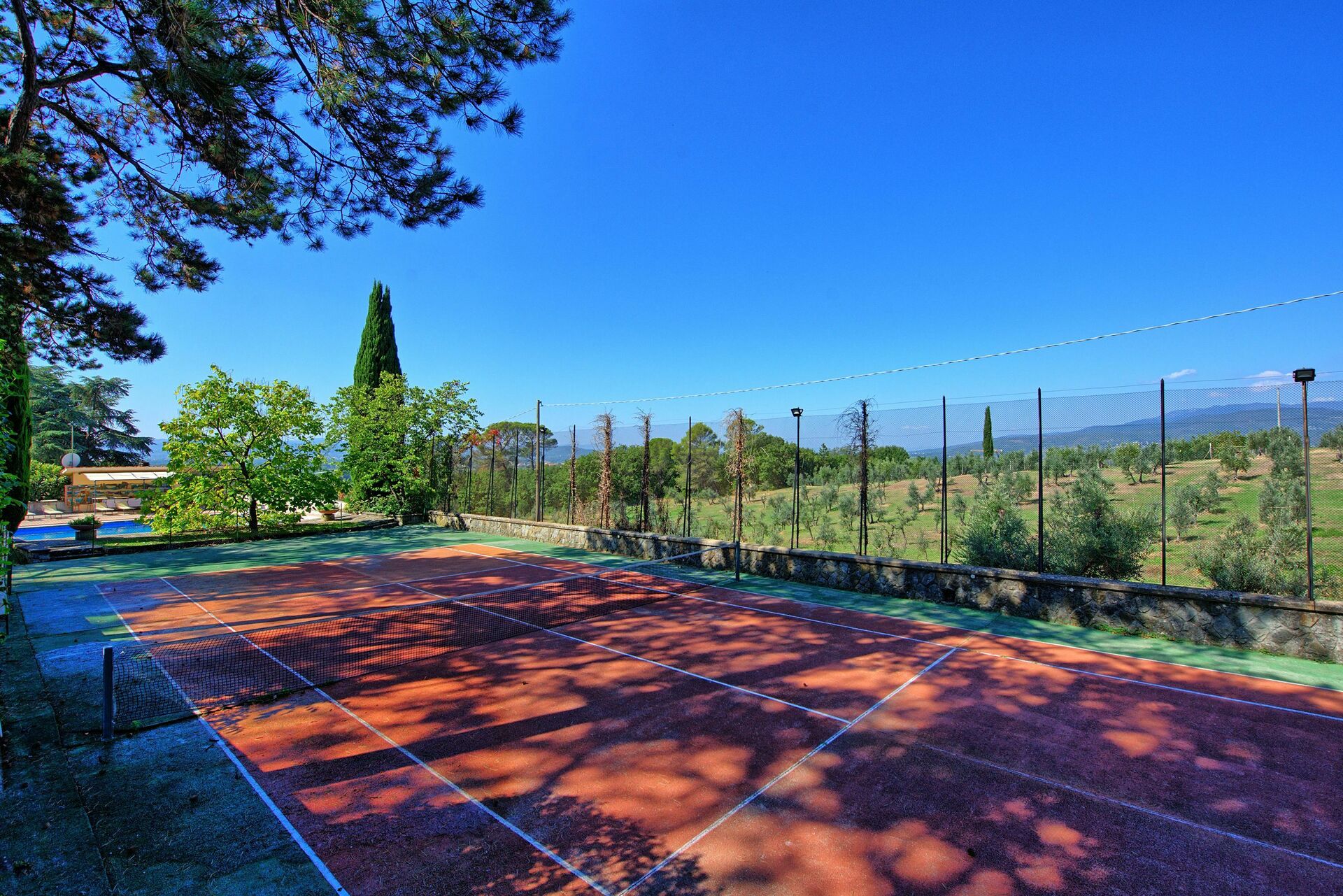 Huset har en privat pool i Toscana som erbjuder stora områden både inomhus och utomhus. Fastigheten är ett perfekt läge för en avkopplande semester: en stor park med tennisbana och en panoramapool garanterar integritet och njutning för alla gästerna.