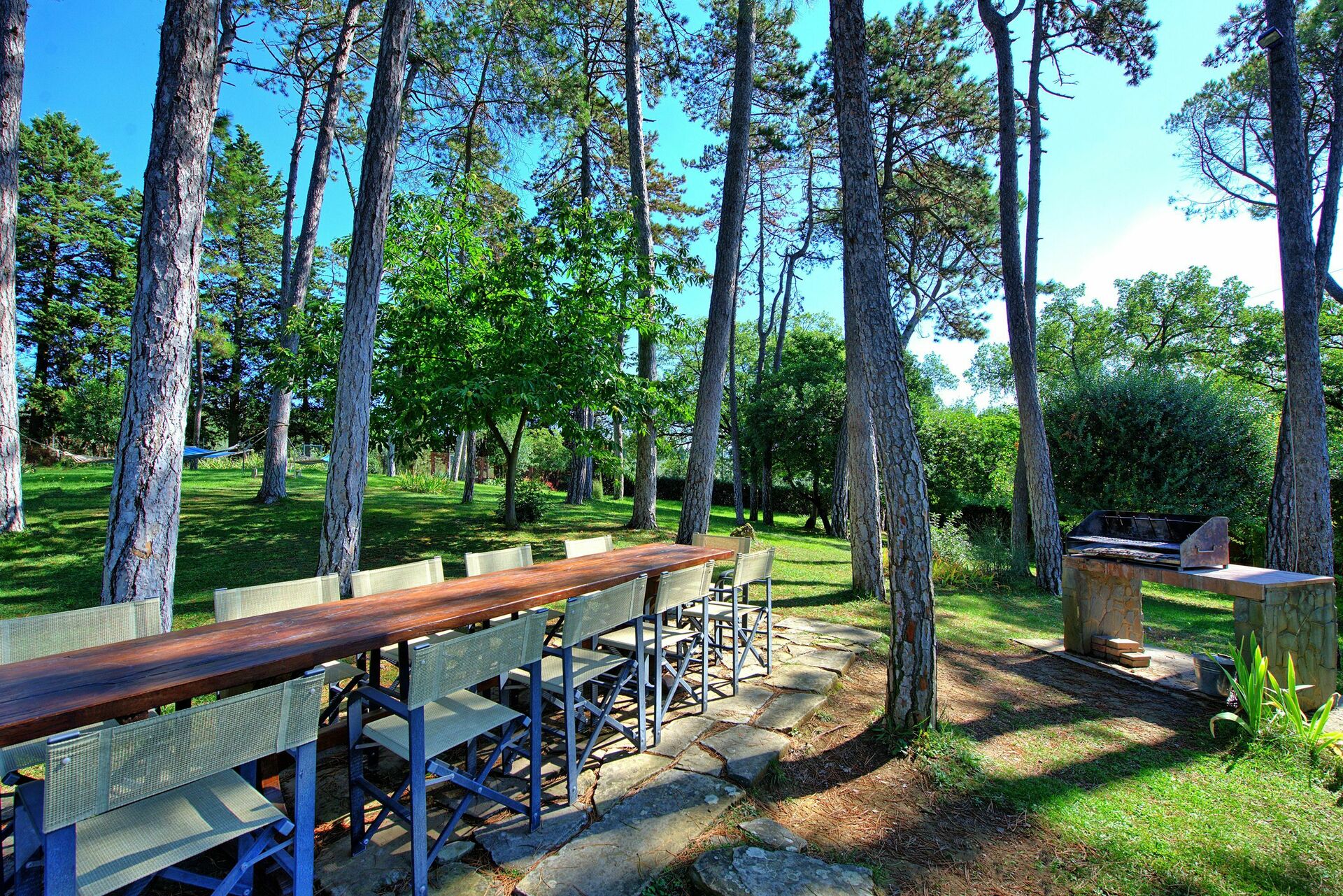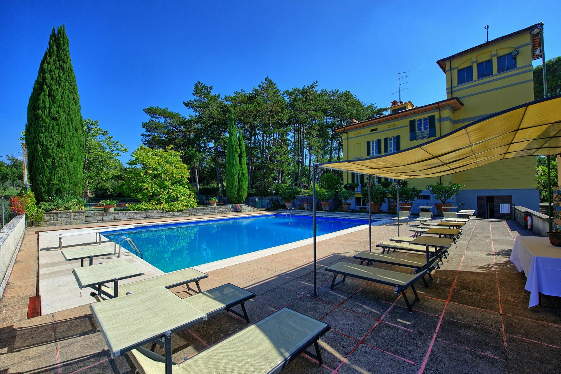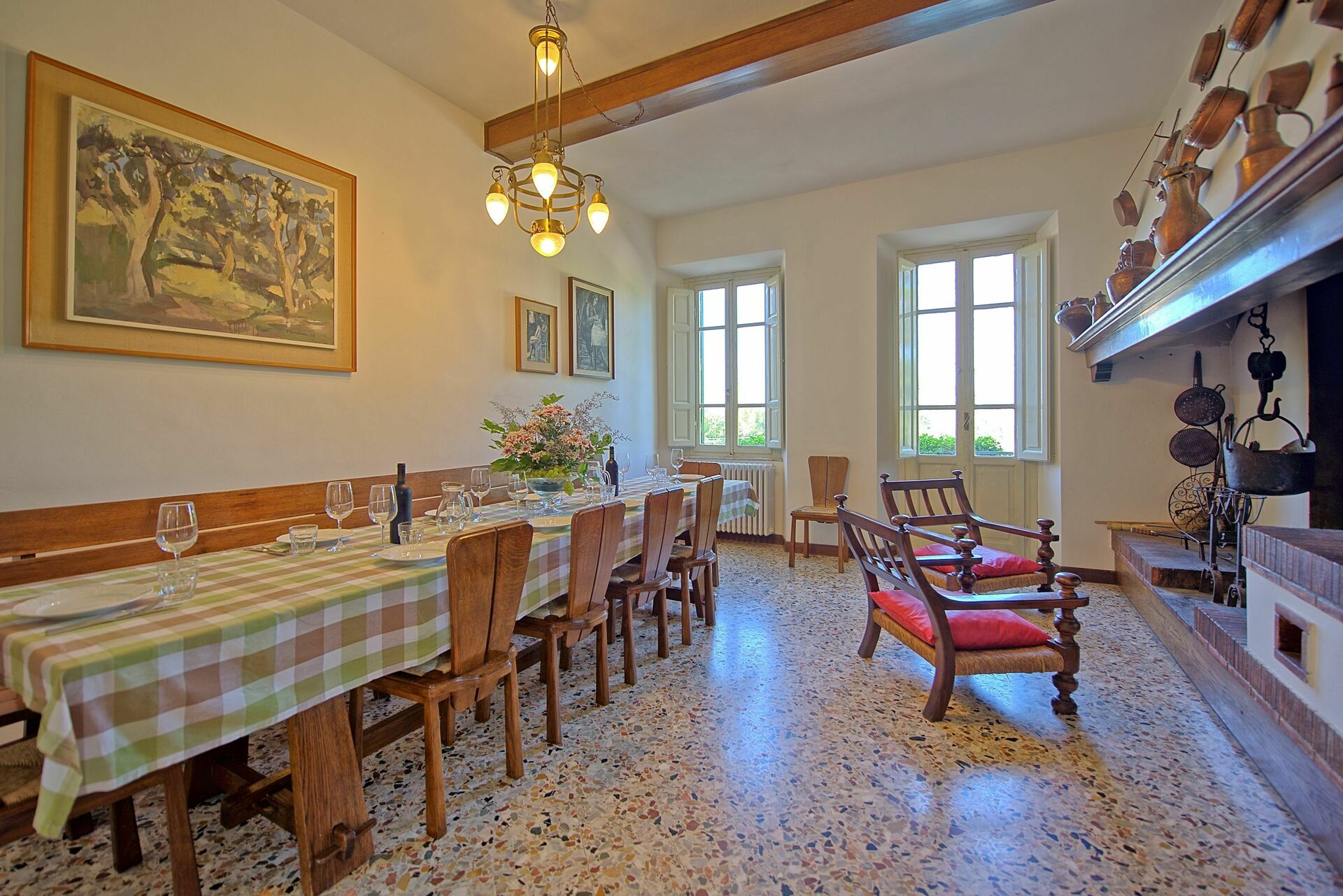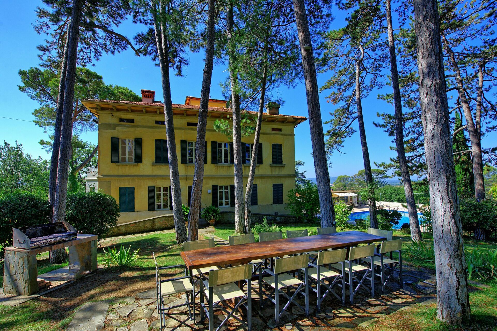 Huset har en privat pool i Toscana som erbjuder stora områden både inomhus och utomhus. Fastigheten är ett perfekt läge för en avkopplande semester: en stor park med tennisbana och en panoramapool garanterar integritet och njutning för alla gästerna.