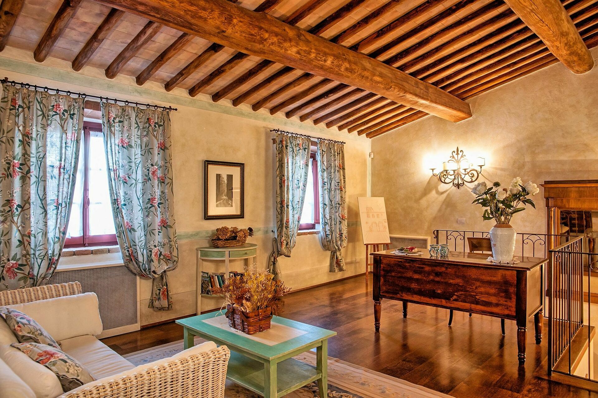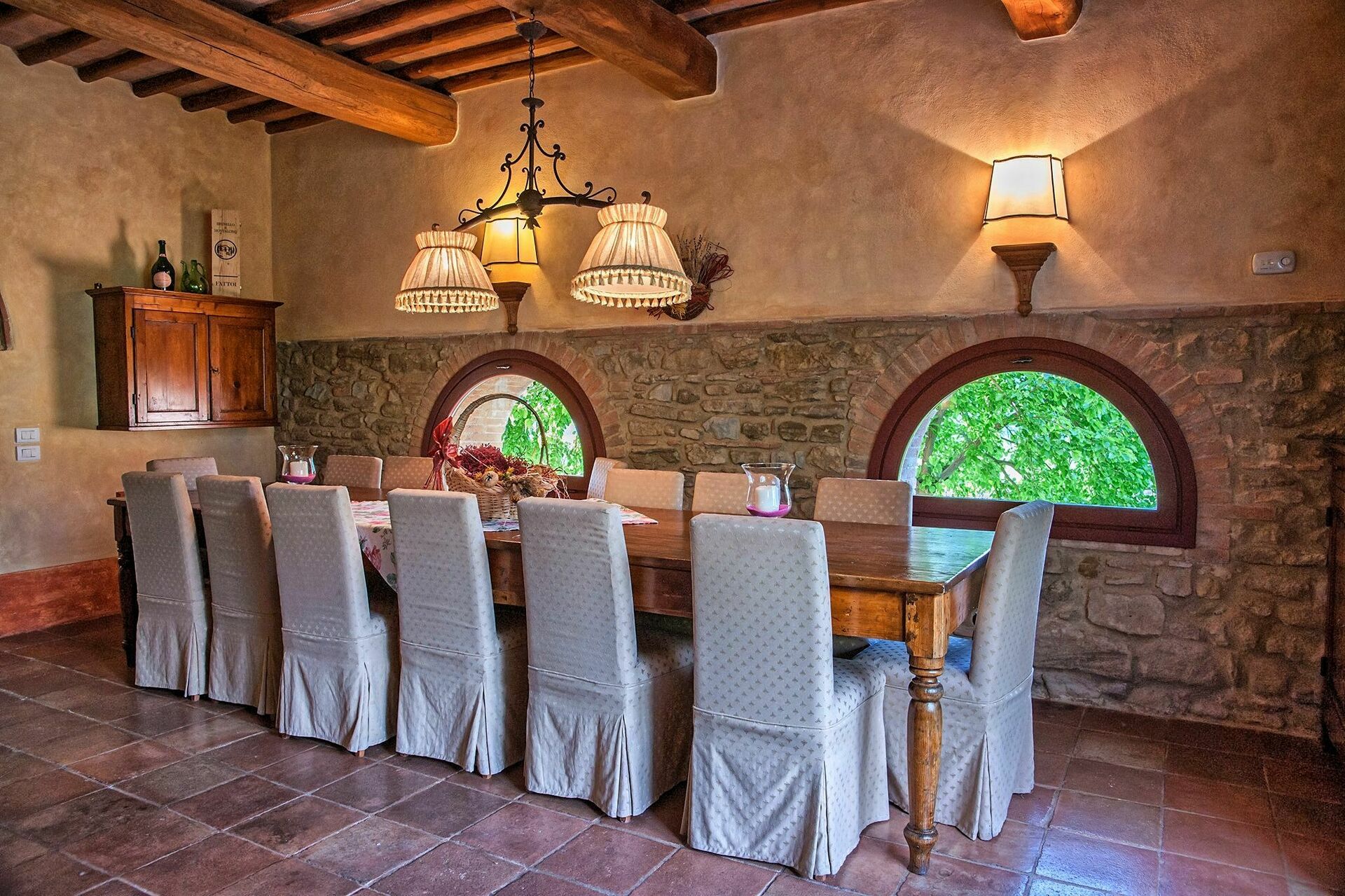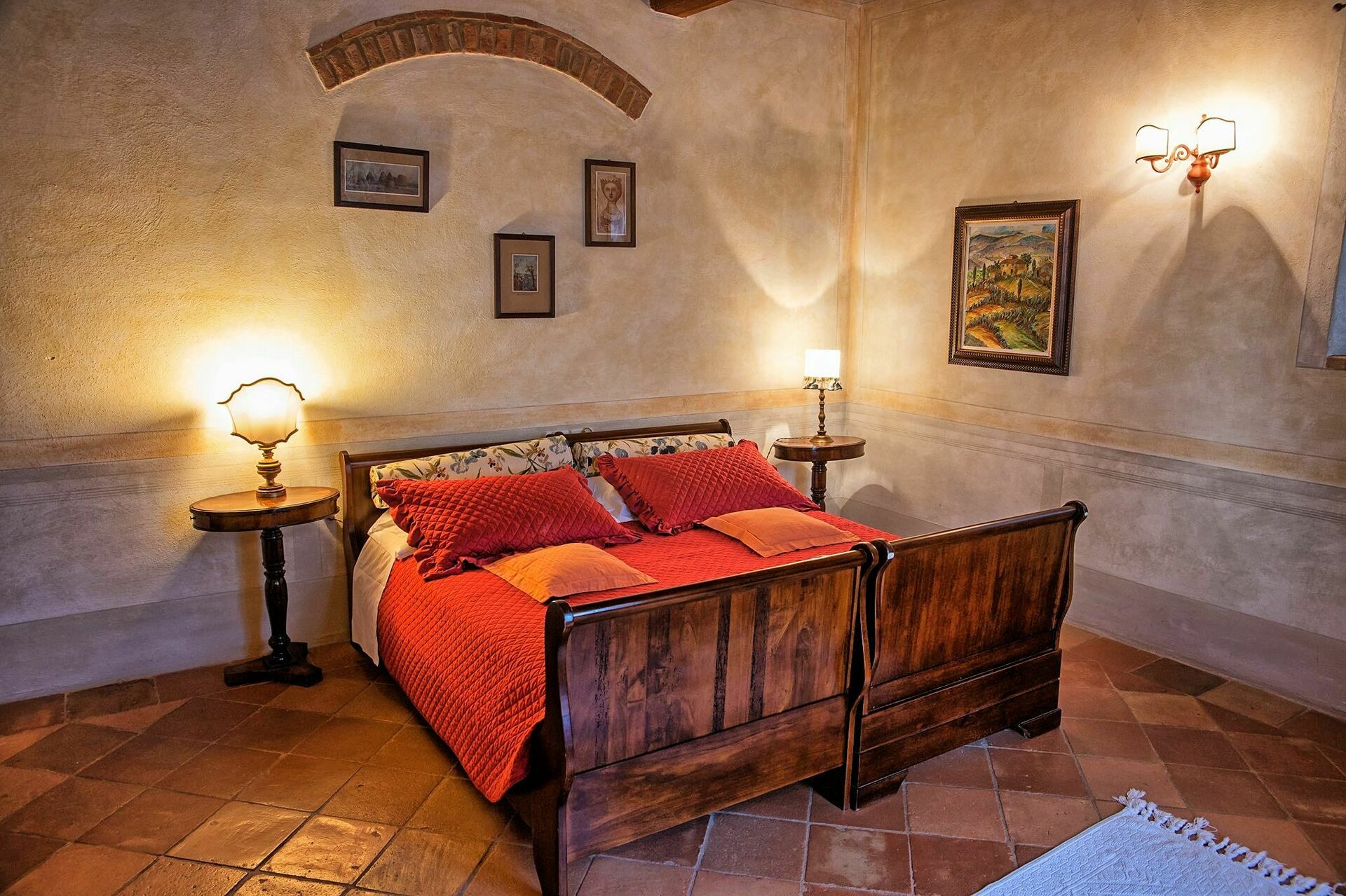 Vacker privat villa med pool som ligger i ett vackert läge på kullarna nära Barberino Val d'Elsa mellan Florens och Siena i Toscana. Fastigheten har nyligen restaurerats och bevarad sina ursprungliga arkitektoniska detaljer. och har förvandlats till en elegant villa plats oc bäddar upp till 16 personer och ett angränsande uthus för 8 personer (uthyrningsbar endast på begäran tillsammans med de hovudvillan) och ett totalt antal på 24 gäster . Både villan och uthuset är smakfullt inredda och erbjuder rymliga och mycket bekväma interiörer.